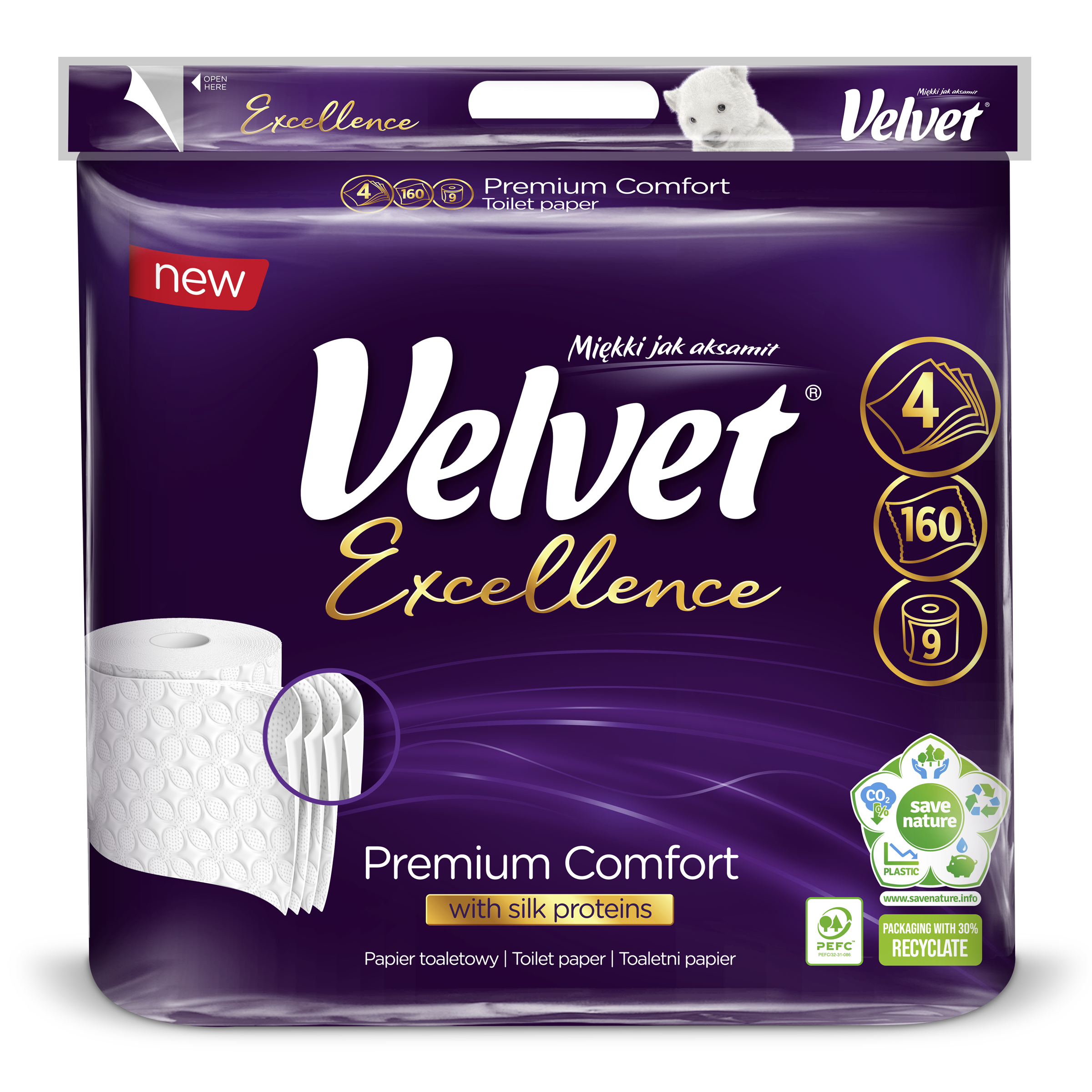 Prémiový čtyřvrstvý toaletní papír s bavlněnými vlákny.