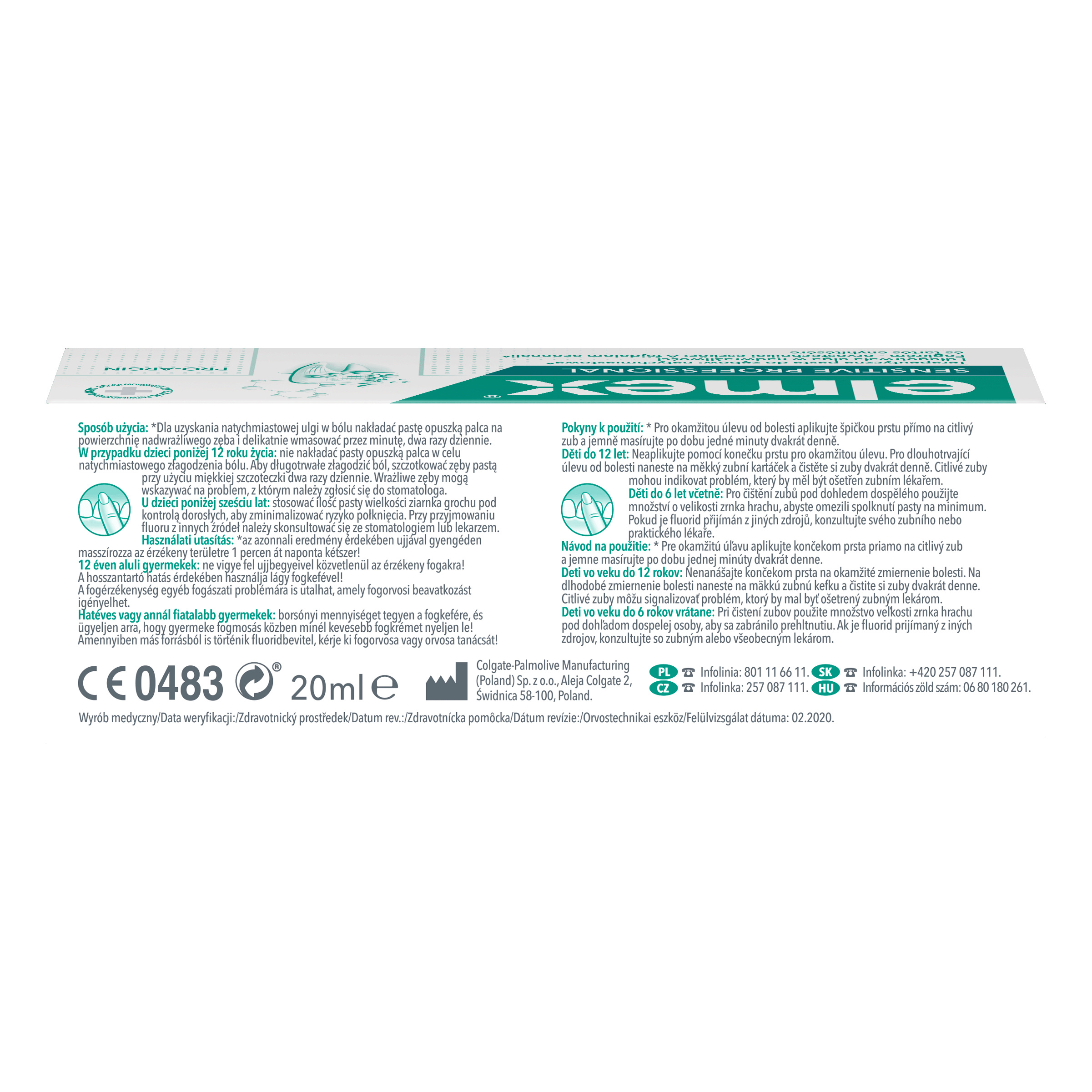 Pro okamžitou úlevu od bolesti aplikujte špičkou prstu přímo na citlivý zub a jemně masírujte po dobu jedné minuty dvakrát denně. Pro dlouhotrvající úlevu od bolesti naneste na měkký zubní kartáček a čistěte si zuby dvakrát denně. Důkladně vyčistěte všechny citlivé oblasti. Po použití tubu uzavřete, aby se zachovala kvalita výrobku. Děti do 6 let včetně: Pro čištění zubů pod dohledem dospělého použijte množství o velikosti zrnka hrachu, abyste omezili spolknutí pasty na minimum. Pokud je fluorid přijímán z jiných zdrojů, konzultujte svého zubního nebo praktického lékaře. Děti do 12 let: Neaplikujte pomocí konečku prstu pro okamžitou úlevu. Pro dlouhotrvající úlevu od bolesti naneste na měkký zubní kartáček a čistěte si zuby dvakrát denně. Citlivé zuby mohou indikovat problém, který by měl být ošetřen zubním lékařem.