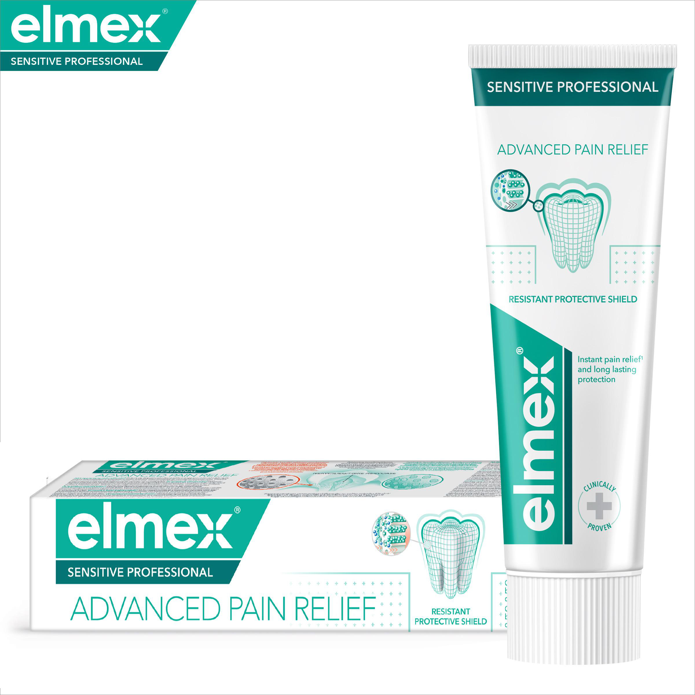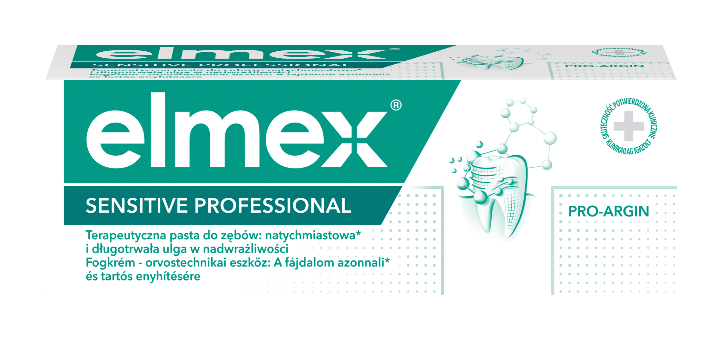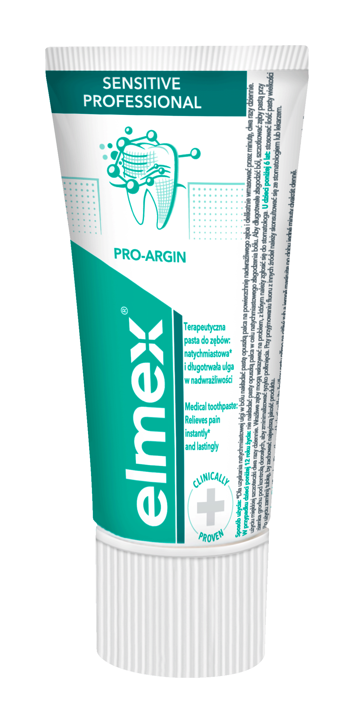 Zubní pasta elmex® SENSITIVE PROFESSIONAL uzavírá malé kanálky vedoucí k zubnímu nervu, a tím okamžitě* a dlouhodobě zabraňuje vzniku bolesti citlivých zubů. Při pravidelné aplikaci se vytvoří dlouhotrvající ochranná vrstva, která chrání před citlivostí zubů. *Pro okamžitou úlevu od bolesti aplikujte špičkou prstu přímo na citlivý zub a jemně masírujte po dobu jedné minuty dvakrát denně. Co způsobuje citlivost zubů? Ustupující dásně a poškozená zubní sklovina mohou způsobit obnažení tisíců mikroskopických kanálků v krčku zubu, které vedou k zubnímu nervu. Pokud se vaše zuby dostanou do kontaktu s něčím horkým, studeným nebo sladkým, tyto vjemy se prostřednictvím těchto kanálků přenesou přímo do zubního nervu, což způsobuje bolest. Obnažené zubní krčky mohou být také náchylné k zabarvení. Pro optimální pravidelnou ústní péči nejprve použijte produkty pro čištění mezizubních prostor, pak zubní pastu elmex® Sensitive Professional spolu se zubním kartáčkem elmex® Sensitive a nakonec ústní vodu elmex® Sensitive Professional. Zubní pasta elmex® SENSITIVE PROFESSIONAL a ústní voda elmex® SENSITIVE PROFESSIONAL jsou zdravotnické prostředky používané k ošetření dutiny ústní. Před použitím se seznamte s pokyny k použití prostředku.