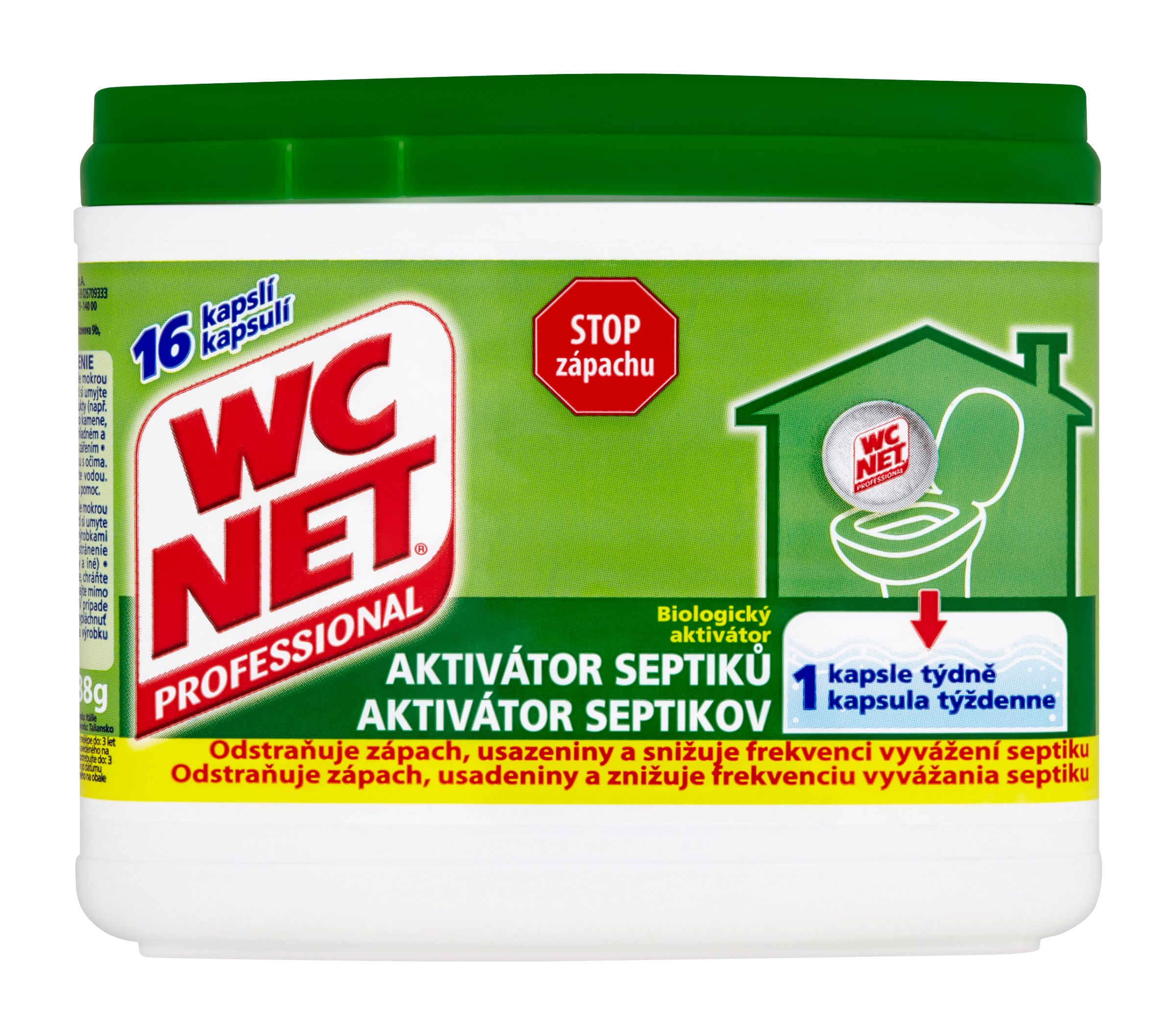 Jednoduché a ekonomické řešení v boji proti zápachu a usazeninám. WC NET Aktivátor septiků díky svému novému koncentrovanému složení zvyšuje účinnost enzymů, které ještě lépe rozpouští tuhé složky odpadu, čímž zabraňuje tvorbě usazenin. Při použití jednou týdně odstraňuje zápach a snižuje náklady spojené s vyvážením septiku. 16 jednorázových kapslí rozpustných ve vodě = 4 měsíční kůra.