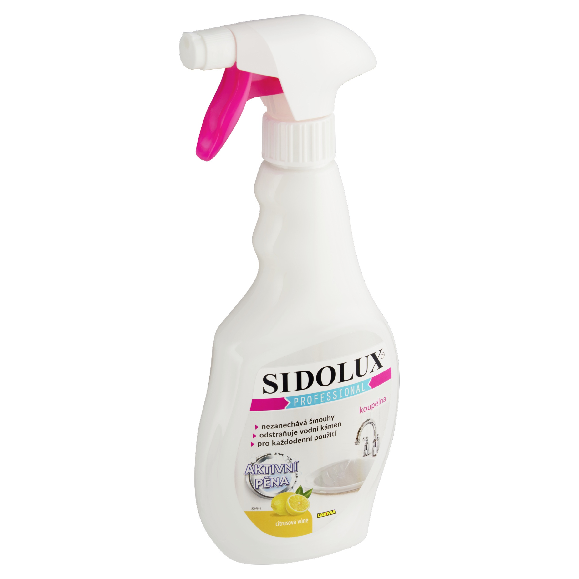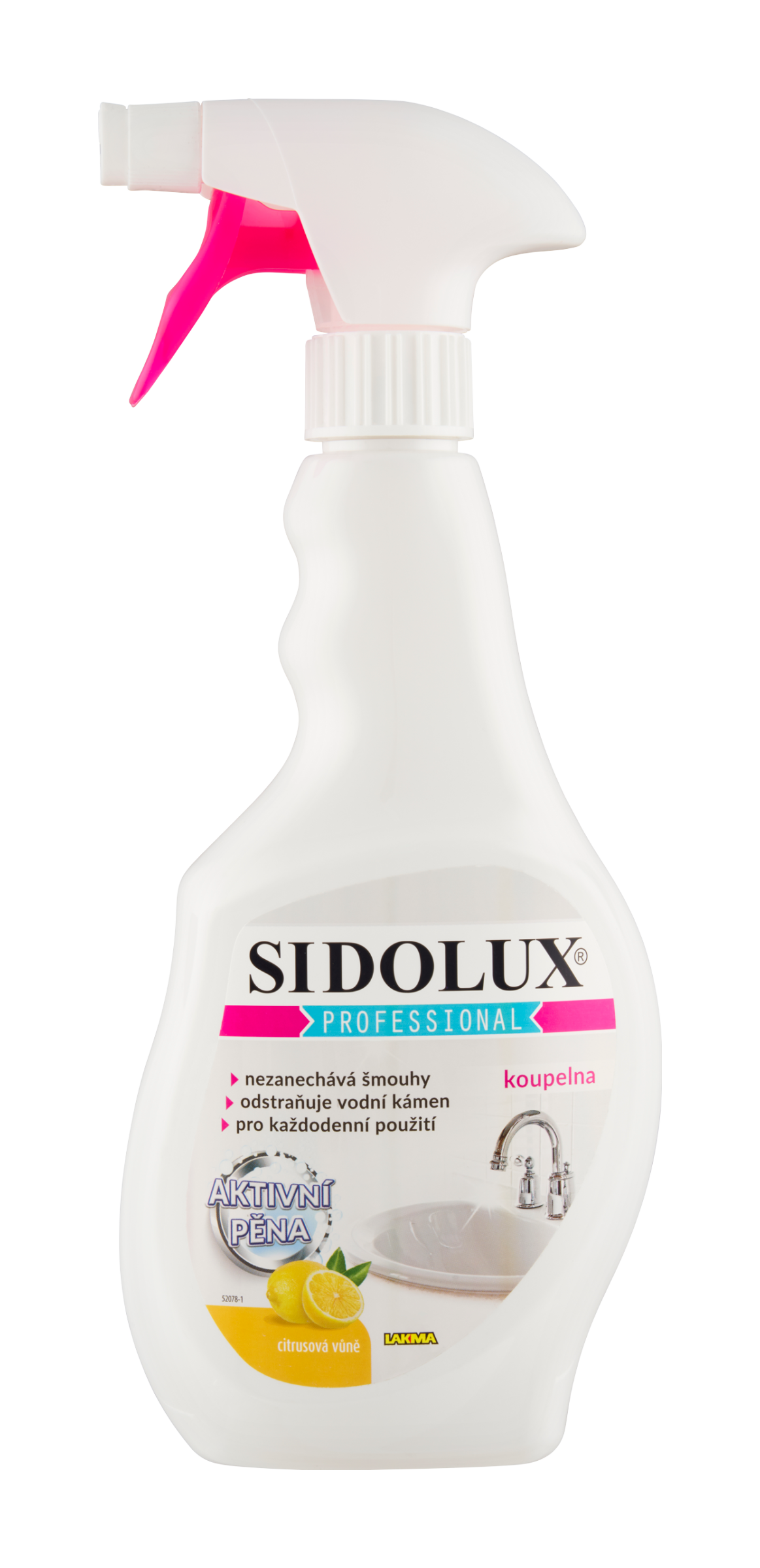 Sidolux Professional koupelna - je určený k udržení hygienické čistoty v koupelnách. Díky speciální receptuře snadno a účinně odstraňuje vodní kámen, zbytky mýdla a jiné nečistoty z vodovodních baterií, sprchových zástěn, umyvadel, van. Prostředek vytváří aktivní pěnu, která delší čas působí na čištěný povrch. Zanechává příjemnou, svěží ovocnou vůni.