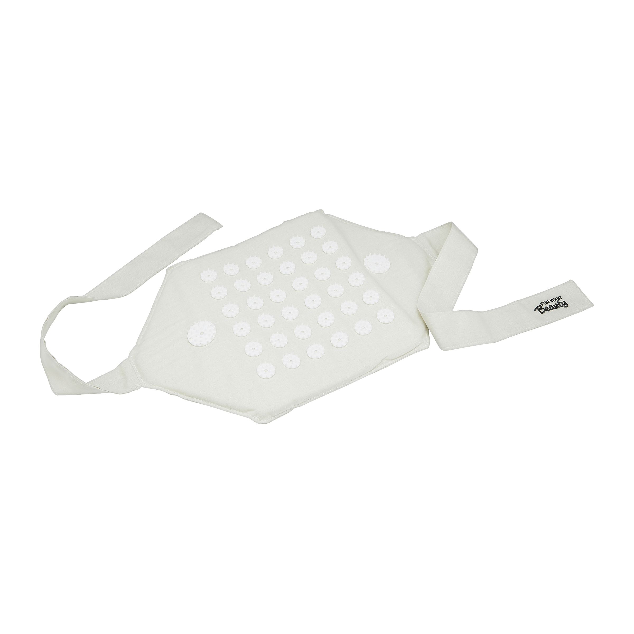 Akupresurní podložka for your Beauty nabízí všechny výhody akupresury, i když jste na cestách. Na základě poznatků tradiční čínské medicíny je navržen tak, aby pomáhal a zmírňoval bolesti krku a ramen a také napětí v dolní části zad. Podložka je poseta malými kulatými kolečky s plastovými hroty, které podporují krevní oběh. Popruh lze snadno uvázat kolem zad nebo použít jako polštář. Nejlepšího účinku se dosáhne při použití na holou pokožku. K dosažení požadovaného účinku stačí 12 až 20 minut aplikace.