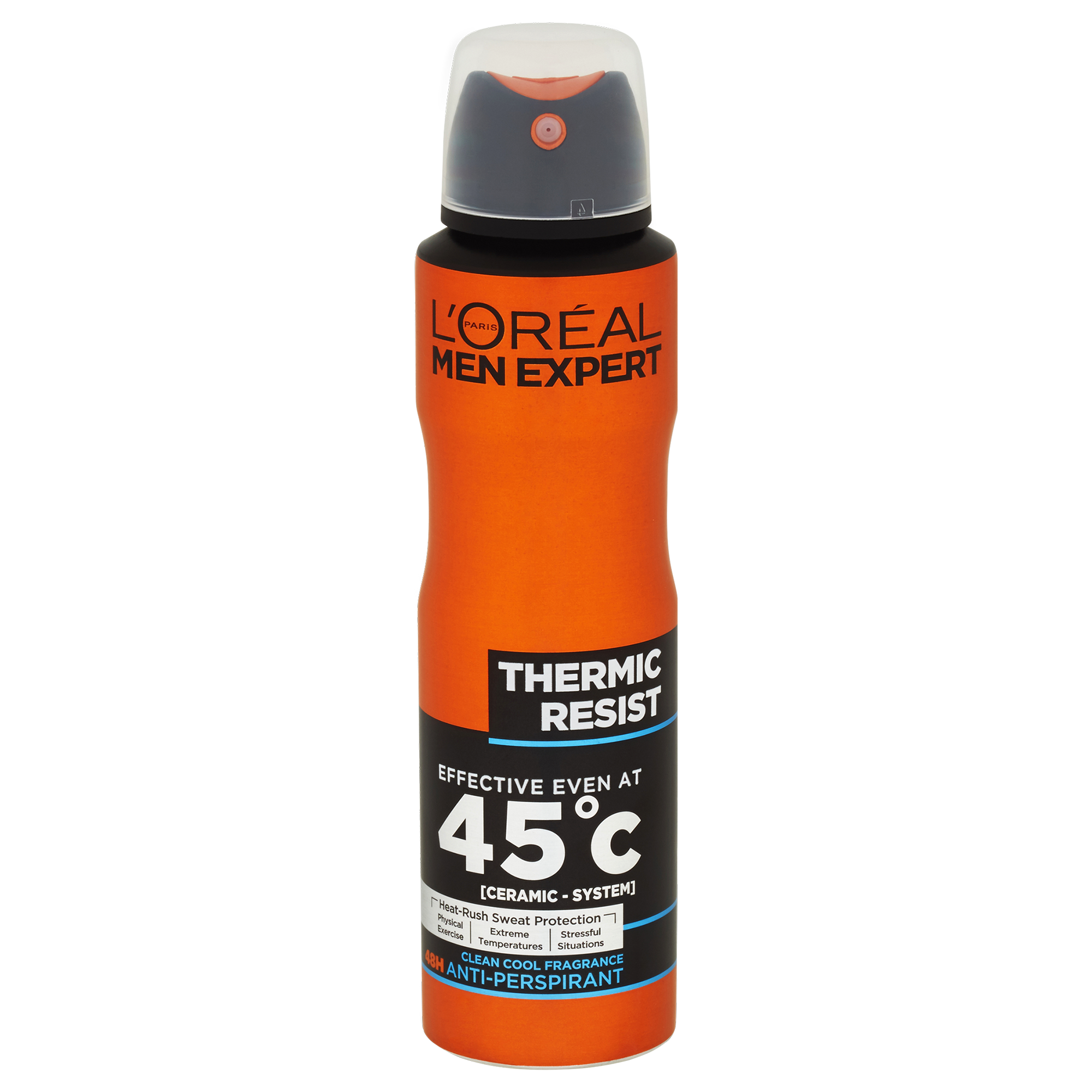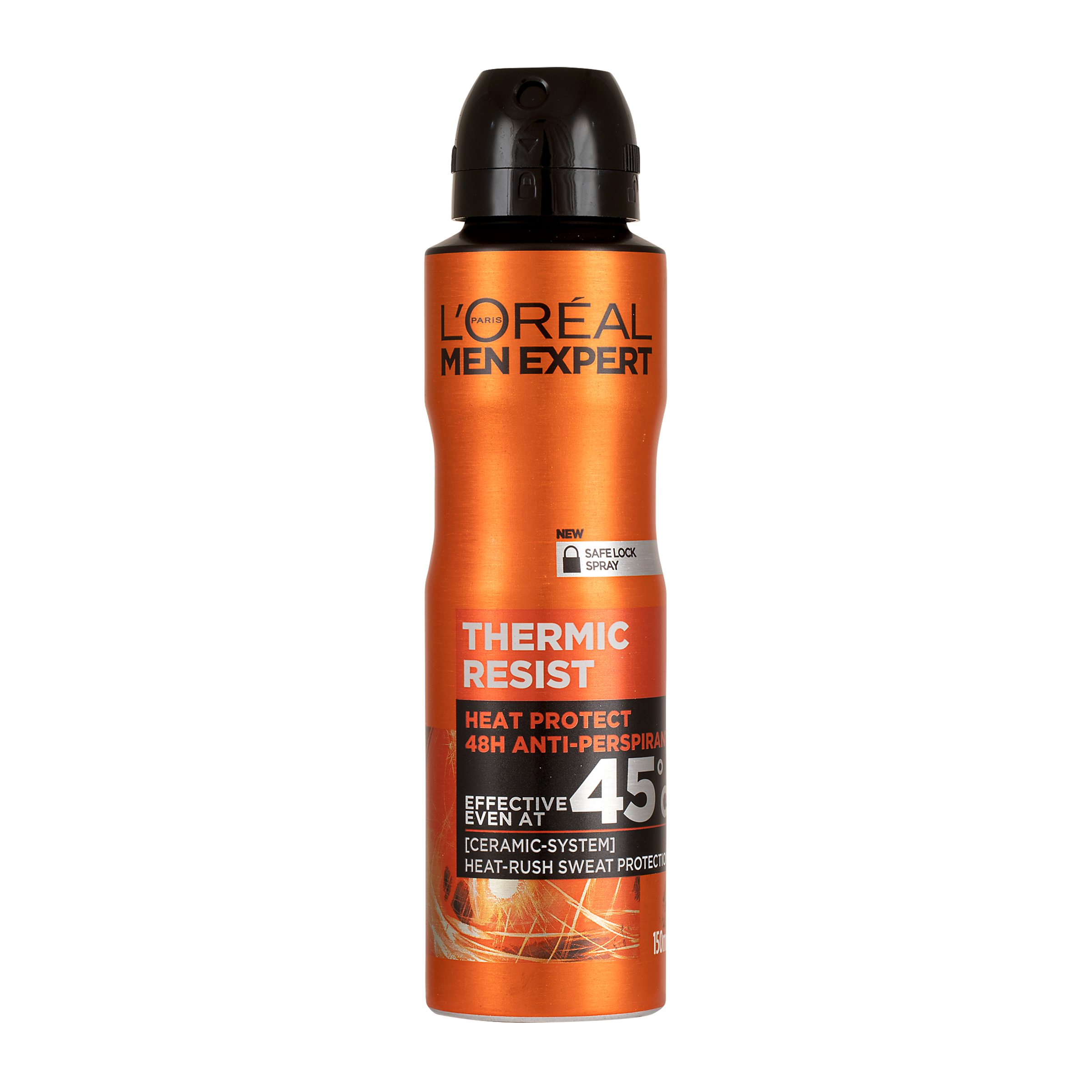 L'Oréal Men Expert antiperspirant sprej Thermic Resist díky vysokoúčinným keramickým složkám je účinný i v extrémních teplotách až do 45 °C. Pomáhá bojovat s nepříjemným zápachem, účinně reguluje pocení a zanechává dlouhotrvající svěží vůni po dobu 48 hodin.