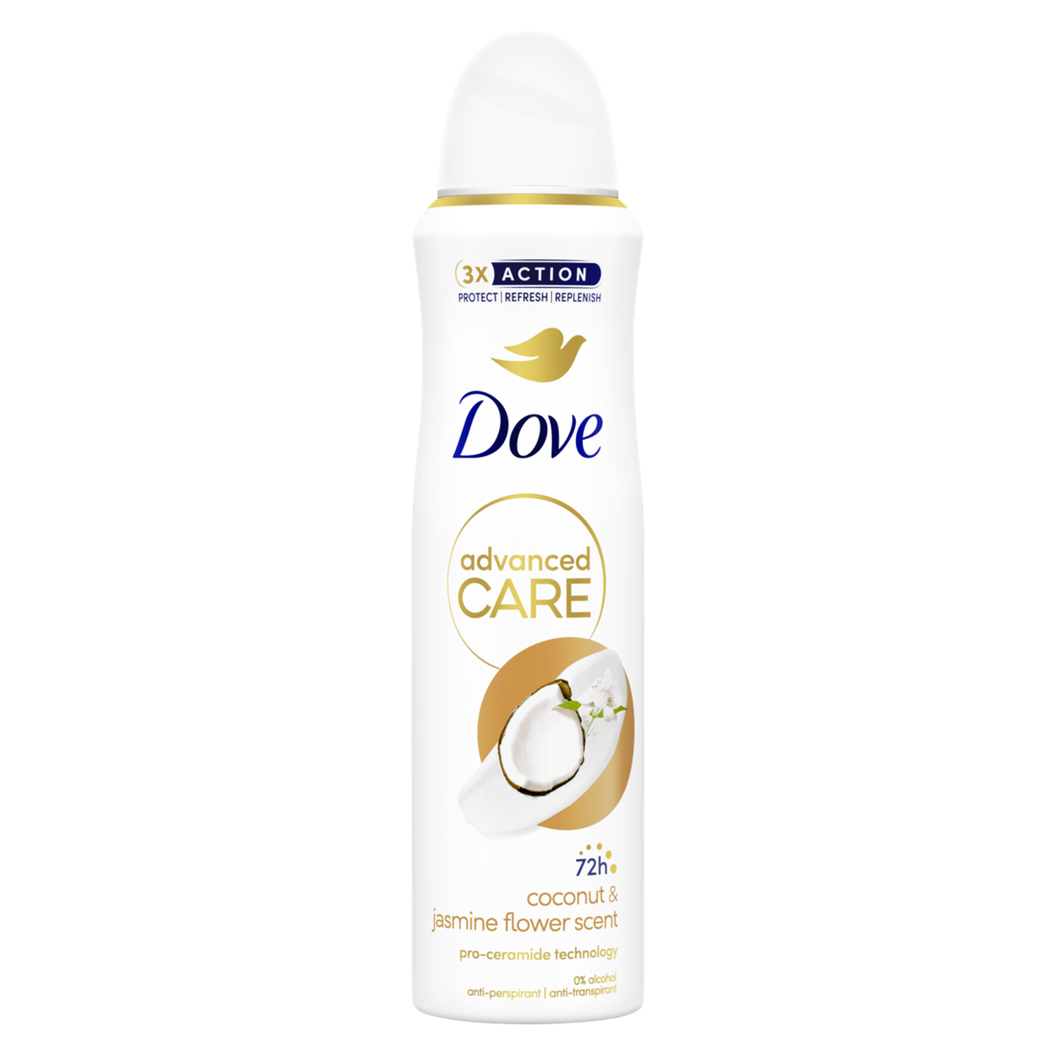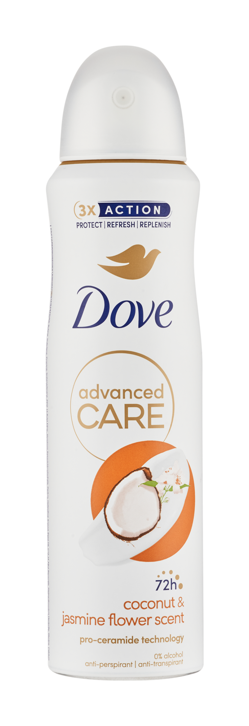 Objevte Dove Advanced Care Kokos&Jasmín antiperspirant ve spreji pro 72hodinovou ochranu a svěží podpaží. Exotická vůně kokosu s příjemnou vůni jasmínu v novém antiperspirantu Kokos&Jasmín z řady Dove Advanced Care. Nechte Dove Advanced Care Kokos&Jasmín antiperspirant sprej být vaší každodenní součástí. Poskytne vám 72hodinovou ochranu před potem a zápachem, stejně jako hladké a hydratované podpaží. Připravte se na to, abyste se mohla cítit sebejistě. Tento deodorant je plný prémiových pečujících složek naší receptury Advanced Care. Technologie Triple Moisturizing, která vyniká třemi různými hydratačními prvky. Poskytuje prémiové hydratační benefity porovnatelné s profesionální péčí o pleť. Funguje tak, že posiluje bariéru vlhkosti vaší pokožky, pomáhá jí udržet vlhkost hluboko v pokožce, nasává vlhkost z prostředí a zabraňují jejímu odpařování tím, že uzamkne vnější bariéru vaší pokožky. Poskytuje vaší pokožce maximální péči, zklidňuje podráždění v podpaží způsobené holením při každém použití a zanechává vám pokožku jemnější, hladší. Připravte se dopřát si tento svěží deodorant s krásnou exotickou vůní kokosu a jasmínu - perfektní výběr pro každou příležitost. Naším posláním je pomoci ženám zvýšit jejich sebevědomí - protože věříme, že krása by měla být zdrojem sebevědomí, ne úzkosti. Deodoranty Dove poskytují účinnou ochranu a obsahují prémiové složky, takže se můžete cítit krásně sebejistě.
