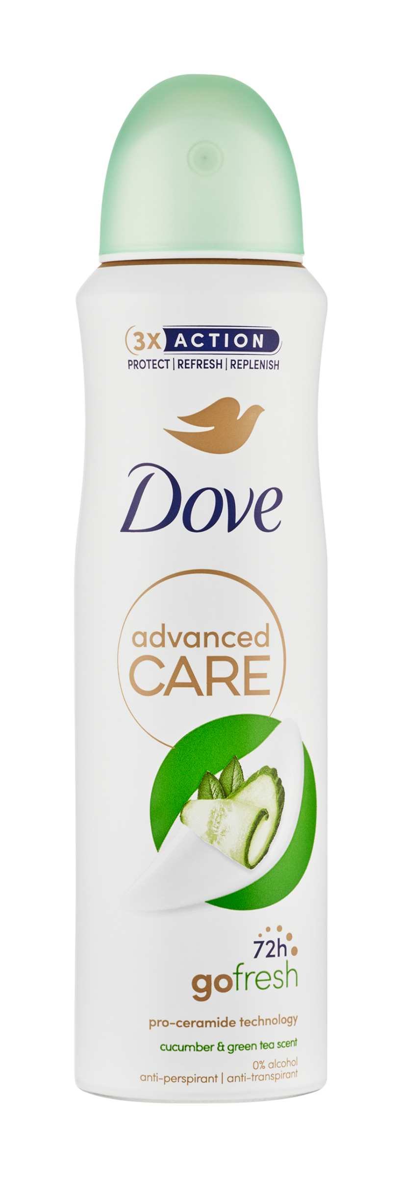Objevte Dove Advanced Care Okurka & Zelený čaj antiperspirant ve spreji pro 72hodinovou ochranu a svěží podpaží. Svěží vůně okurky s nádechem zeleného čaje v novém antiperspirantu Okurka & Zelený čaj z řady Dove Advanced Care. Nechte Dove Advanced Care Okurka & Zelený čaj antiperspirant sprej být vaší každodenní součástí. Poskytne vám 72hodinovou ochranu před potem a zápachem, stejně jako hladké a hydratované podpaží. Připravte se na to, abyste se mohla cítit sebejistě. Tento deodorant je plný prémiových pečujících složek naší receptury Advanced Care. Technologie Triple Moisturizing, která vyniká třemi různými hydratačními prvky. Poskytuje prémiové hydratační benefity porovnatelné s profesionální péčí o pleť. Funguje tak, že posiluje bariéru vlhkosti vaší pokožky, pomáhá jí udržet vlhkost hluboko v pokožce, nasává vlhkost z prostředí a zabraňují jejímu odpařování tím, že uzamkne vnější bariéru vaší pokožky. Poskytuje vaší pokožce maximální péči, zklidňuje podráždění v podpaží způsobené holením při každém použití a zanechává vám pokožku jemnější, hladší. Připravte se dopřát si tento svěží deodorant s krásnou exotickou vůní marakuji a citronové trávy- perfektní výběr pro každou příležitost. Naším posláním je pomoci ženám zvýšit jejich sebevědomí - protože věříme, že krása by měla být zdrojem sebevědomí, ne úzkosti. Deodoranty Dove poskytují účinnou ochranu a obsahují prémiové složky, takže se můžete cítit krásně sebejistě.