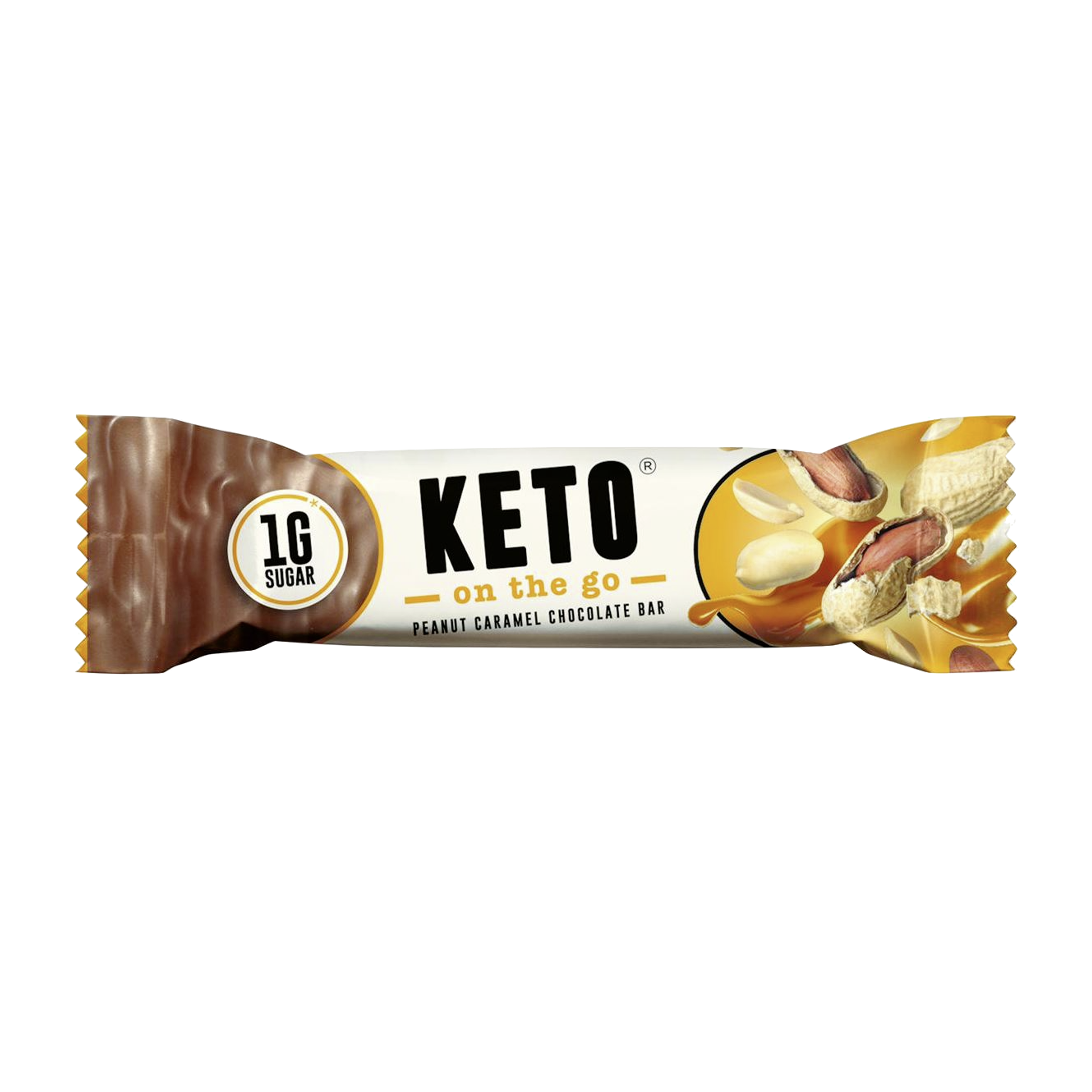 pražené ARAŠÍDY(27 %), kakaová poleva 20 % (kakaové máslo, rostlinná vláknina (kukuřice, brambory), hydrolyzovaná ovesná mouka, kakaová hmota, emulgátor: slunečnicový lecitin), plnidlo: polydextróza, náplň s karamelovou příchutí (15 %) (zvlhčovadlo: (sorbitol; dextrin (PŠENICE), kokosový olej, voda, zvlhčovadlo: glycerin; hrachový proteinový izolát, regulátor kyselosti: citrát sodný; kuchyňská sůl), kokosové vločky, kakaová dřeň, zvlhčovadlo: glycerin, ARAŠÍDOVÉ MÁSLO, nízkotučný kakaový prášek, sůl, sladidlo: sukralóza.