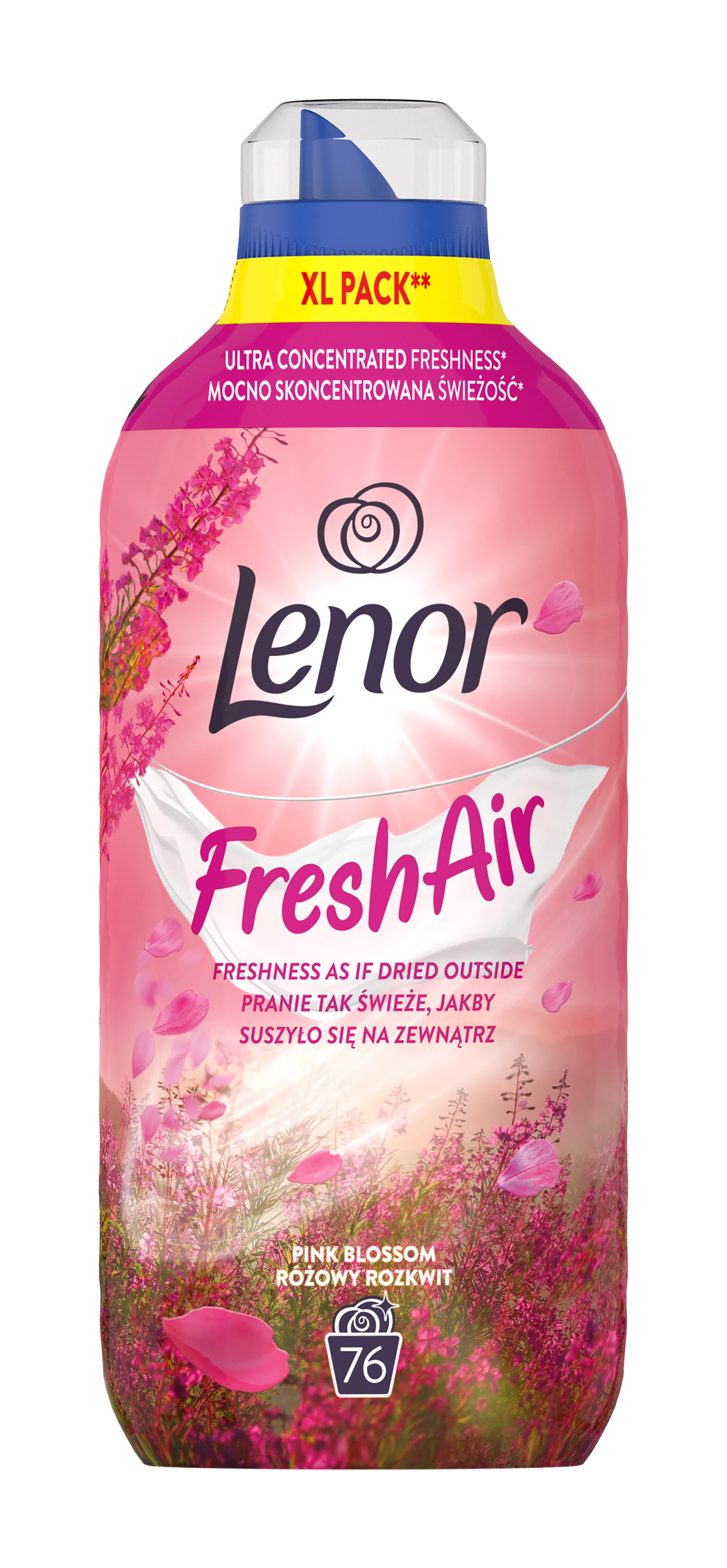 Užijte si svěží vůni, jako by prádlo schlo na čerstvém vzduchu, i když se suší uvnitř. Ultrakoncentrované svěží složení aviváže Lenor Fresh Air je koncentrovanější než složení ostatních aviváží Lenor. Malá lahev tak vydrží na 76 praní. Díky inovativní technologii stačí jen malá dávka, aby prádlo po usušení vonělo stejně, jako by schlo na čerstvém vzduchu, a to bez ohledu na počasí. V kombinaci s ochranou proti zatuchlému zápachu vám aviváž Lenor Fresh Air Pink Blossom poskytne dlouhotrvající svěží vůni. Nadechněte se této svěží květinové vůně. Tato směs sladkých a uklidňujících tónů v kombinaci s ochranou proti zatuchlému zápachu vám poskytne potěšení z dlouhotrvající svěží vůně. Láhev z recyklovaného plastu kromě víčka, nálevky a obalu na láhvi. Aviváž Lenor Fresh Air byla vyvinuta ve spolupráci se spotřebiteli s cílem dosáhnout takové svěžesti, jako by se prádlo sušilo na čerstvém vzduchu. Prádlo uvolňuje svěží vůni ihned po usušení, uložené v šatníku, a dokonce i když se hýbete.