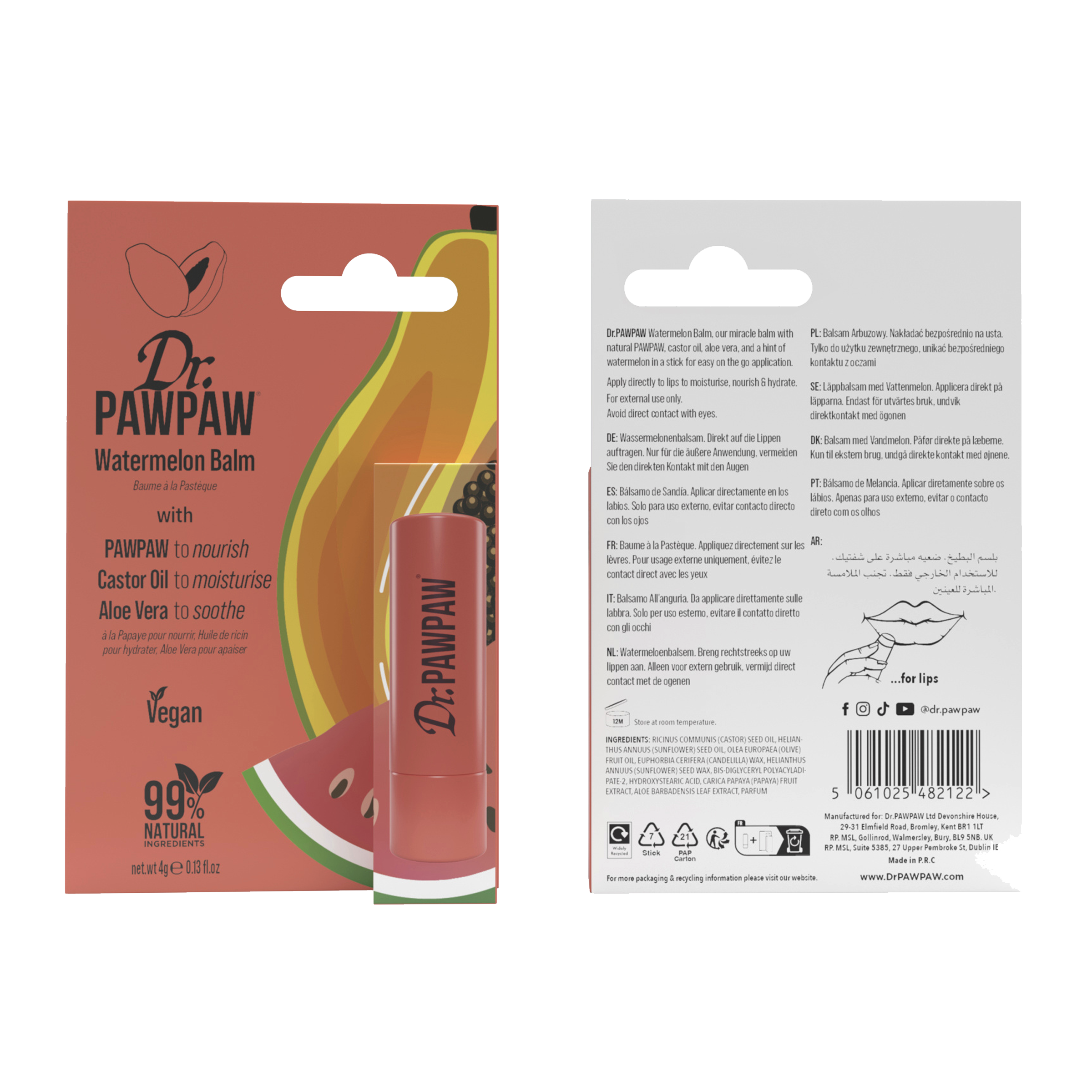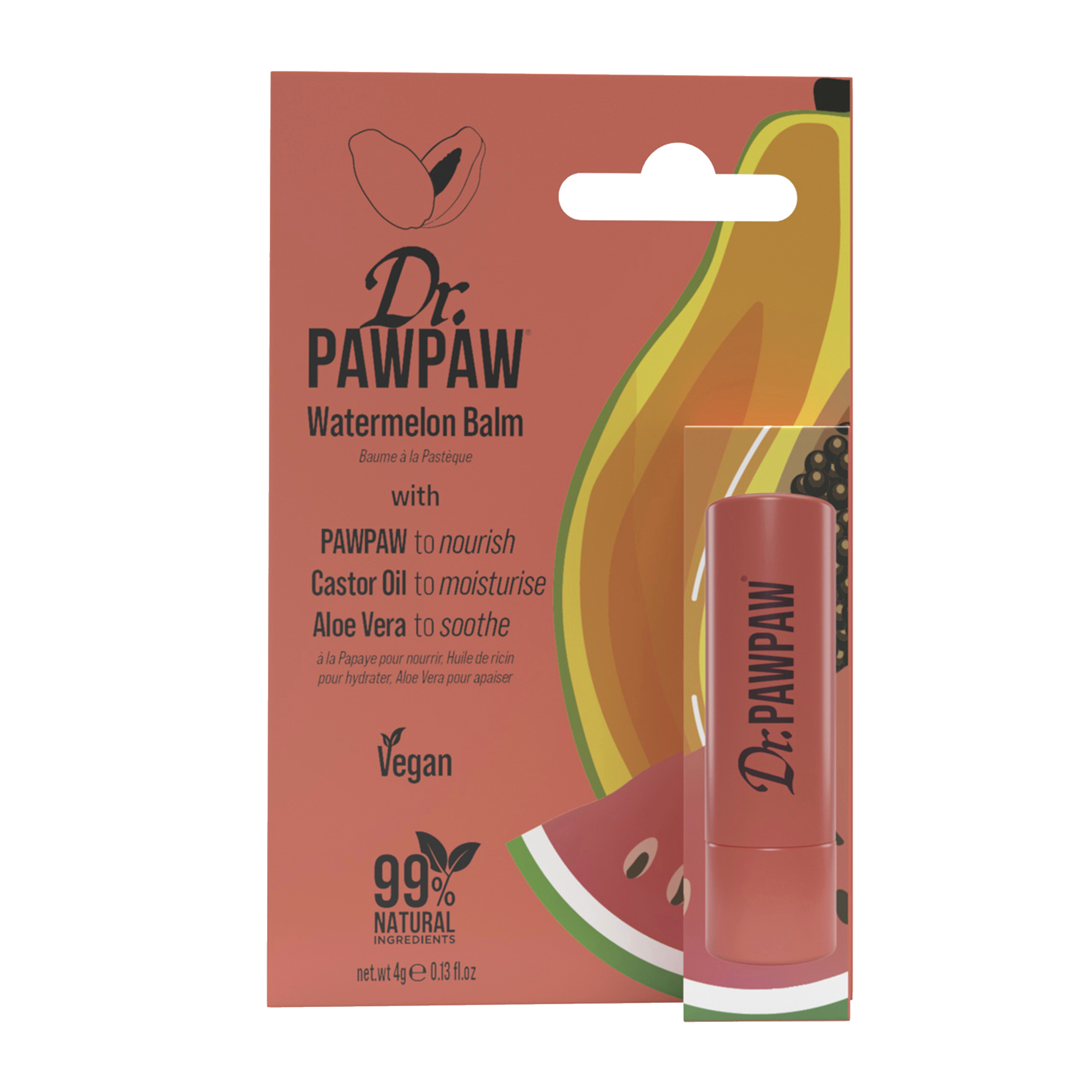 Balzám na rty s příchutí vodního melounu Dr. Pawpaw přináší osvěžující dotek tropů přímo na vaše rty. Jeho jemné, průhledné složení s ovocnou vůní melounu rozmazluje rty, zatímco klíčová složka – extrakt z papáji – zajišťuje intenzivní hydrataci, výživu a hebkost.