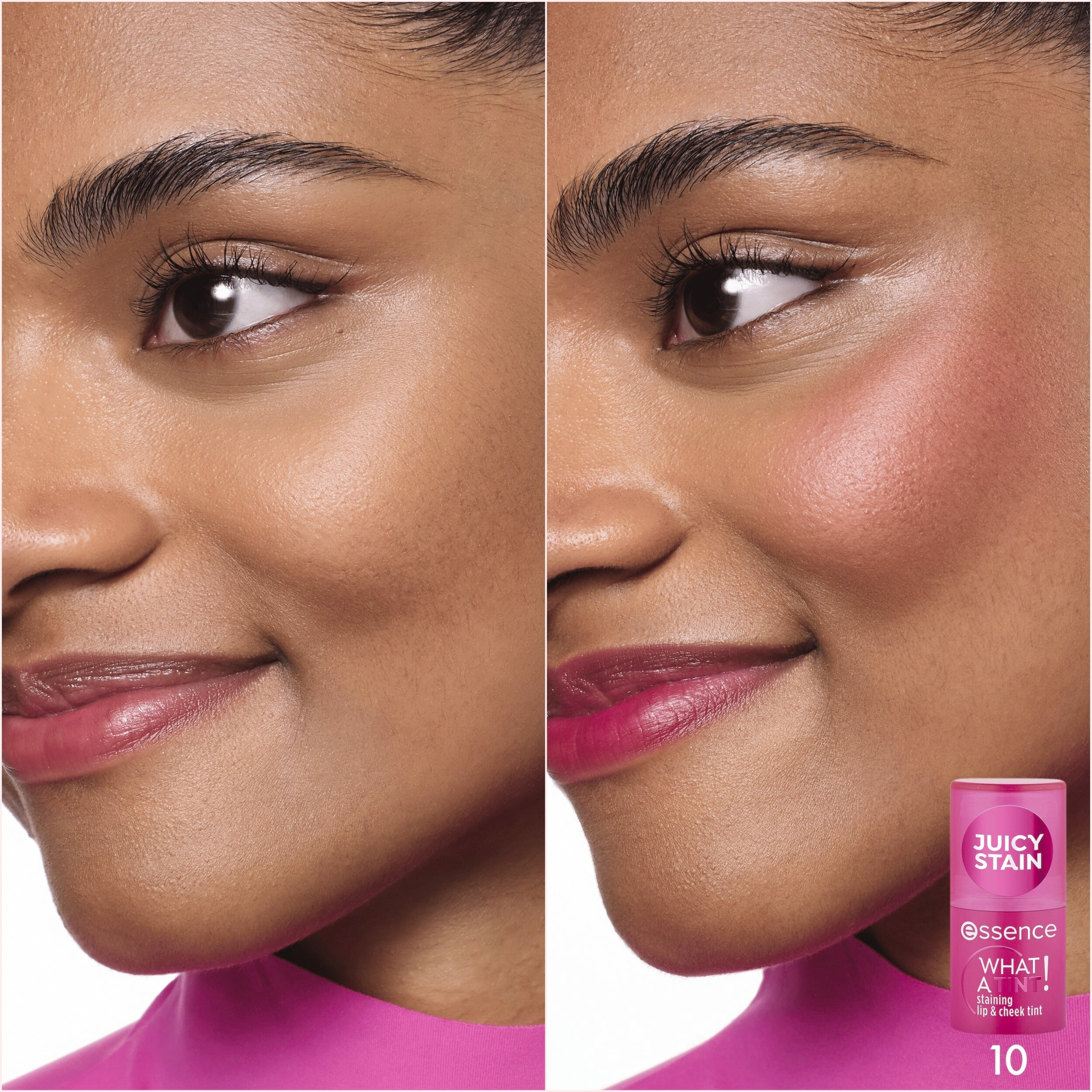 Dodejte svému vzhledu šťavnatý barevný nádech s essence tyčinkou na rty a tváře WHAT A TINT! 10 Raspberry Vibes v ovocně růžovém odstínu s přirozeným efektem. Textura balzámu se vstřebává do pokožky a zanechává zářivý nádech rtů a tváří bez námahy a na pleti není vůbec cítit. Díky lahodné ovocné vůni a osvěžujícímu pocitu při aplikaci je potěšením pro všechny smysly. Díky praktickému tyčinkovému formátu je ideální pro rychlé úpravy, dodává svěží a přirozeně zářivý vzhled se zabarvujícím efektem během několika sekund.