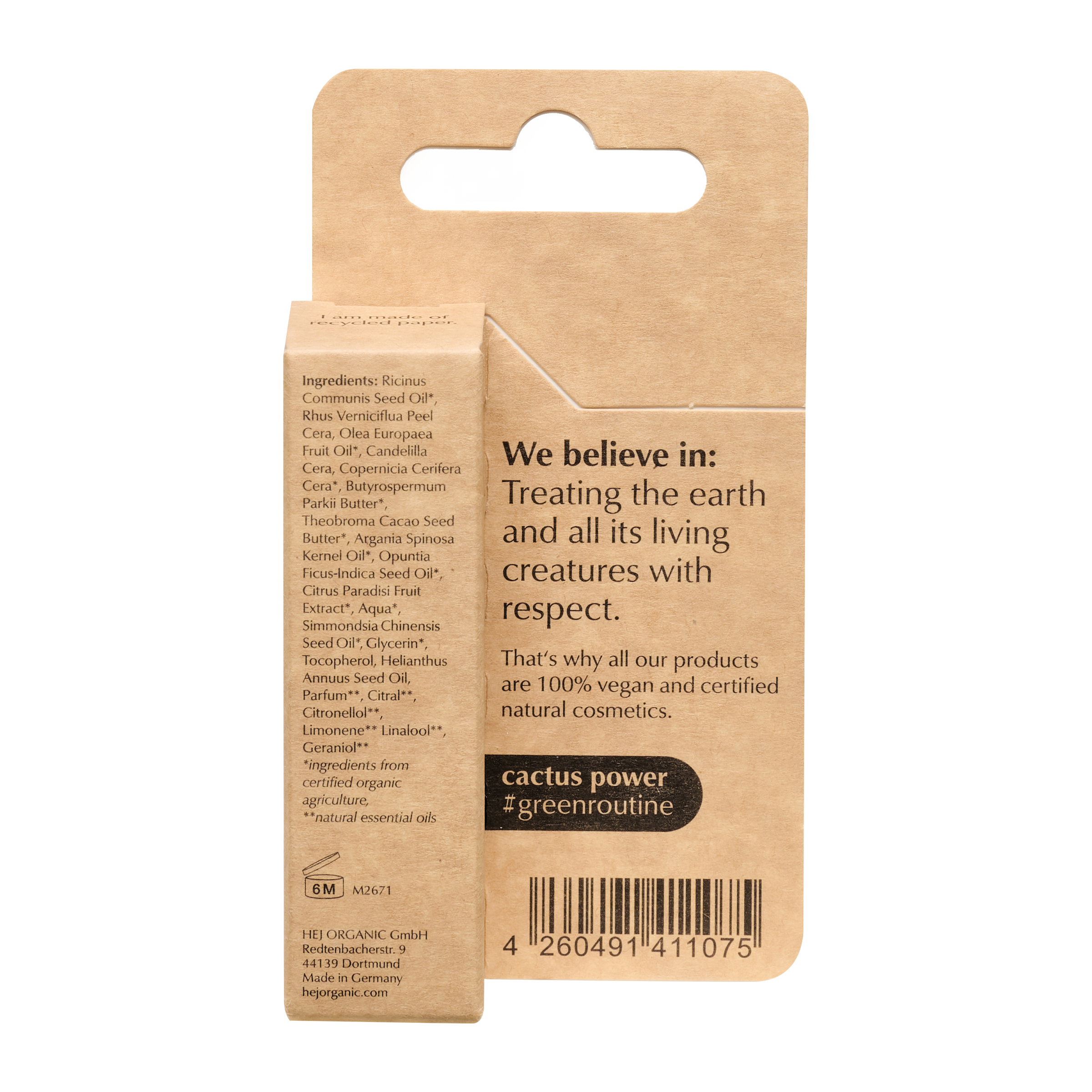 Balzám na rty s kaktusem od Hej Organic přináší intenzivní péči a dlouhotrvající hydrataci díky kombinaci přírodních olejů a rostlinných vosků. Obsahuje vzácný kaktusový olej z opuncie, který hloubkově hydratuje, pomáhá udržovat optimální vlhkost, zvyšuje pružnost rtů a působí proti předčasnému stárnutí. Jemné složení s ricinovým, arganovým a jojobovým olejem doplňuje vosk ze stromu škumpy fermežové a karnaubský vosk pro ochranu a regeneraci. Rty zanechává hebké, vyživené a přirozeně zdravě vypadající.
