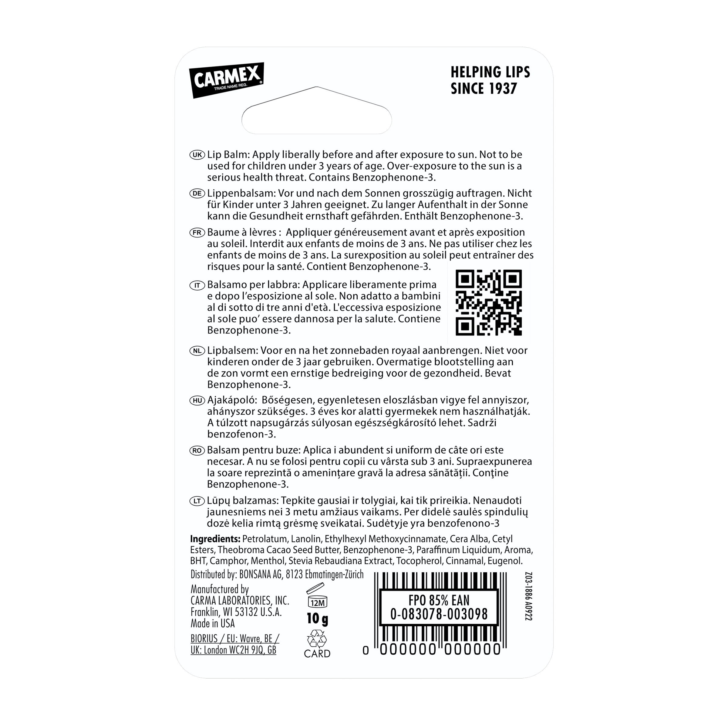 Petrolatum Lanolin, Ethylhexyl Medhoxycinnamate,Cera Alba, Cetyl Esters, Thobroma Cacao Seed Butter, Benzophenone-3, Aroma,Camphor, Menthol, Stevia Rebaudiana Extract,Cinnamal,Eugenol vanilin hydroxycitronelal, limonene, linalool, geraniol,citronello