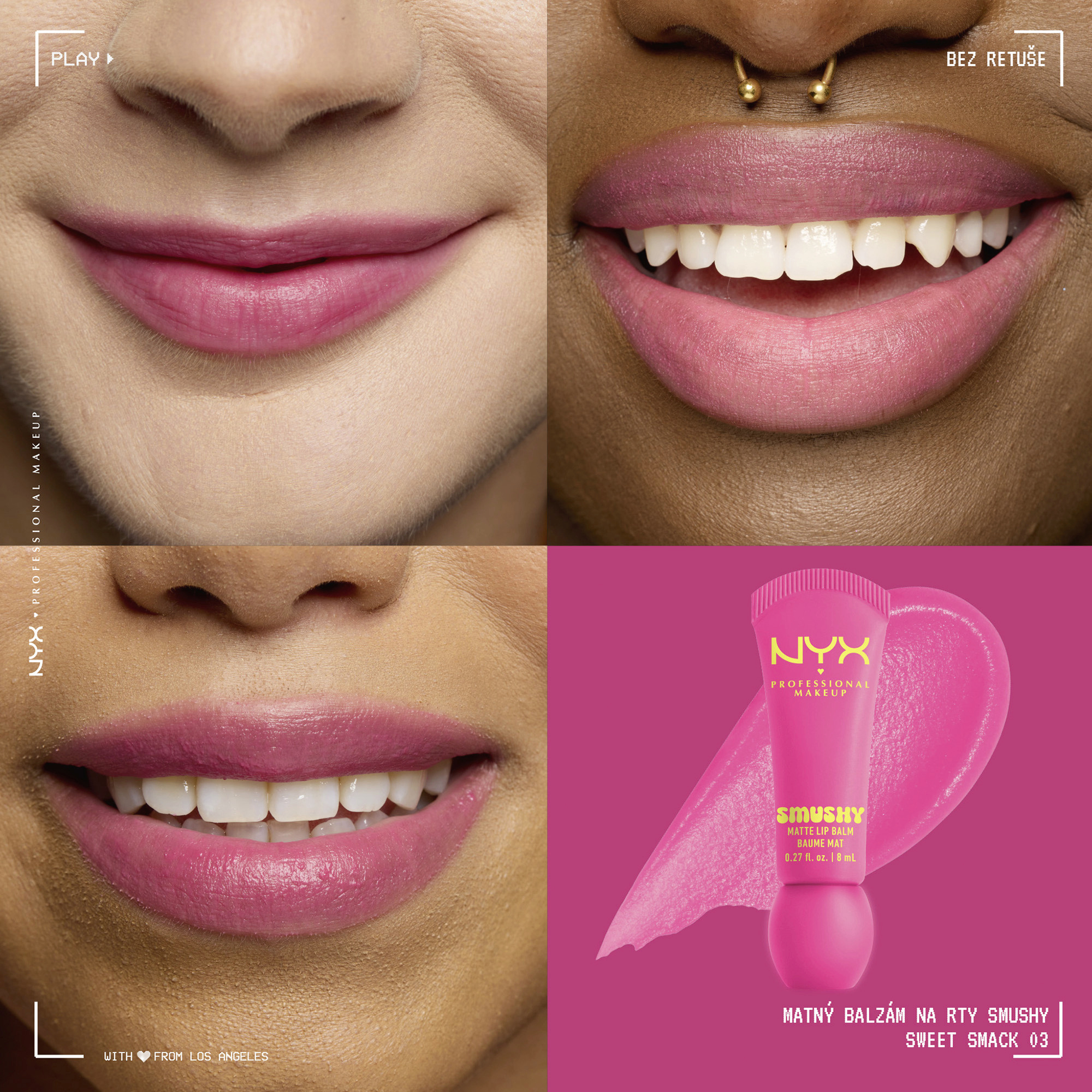Mlask! Pusa! Seznamte se s NOVÝM matným balzámem na rty Smushy Matte Lip Balm! Tato veganská receptura na rty je vaší vstupenkou k obláčkově hebkým rtům s jemným matným finišem. Lehká receptura s rýžovým práškem mochi a cukrovými ceramidy zjemní vaše rty rozostřenou barvou. Hebká textura se nanáší jako balzám na rty a poskytuje celodenní komfort, který je stejně příjemný, jako krásný. Stačí ho jen rozetřít a nanést pro perfektní vrstvu barvy, kterou můžete vrstvit. Ať už toužíte po lehkém efektu, výraznějším nebo zářivém odstínu, Smushy Matte Lip Balm vám se svými 12 univerzálními odstíny, které se hodí pro každou příležitost a náladu, vyhoví. Měkká, hebká textura se díky super měkkému silikonovému aplikátoru snadno nanáší na rty a s každým tahem je zahalí do jemné barvy. Všech 12 nadýchaných odstínů má jedinečnou sladkou vůni pro lahodný multisenzorický zážitek, který pomůže každému mlsounovi najít perfektní shodu. S novým matným balzámem na rty Smushy Matte Lip Balm budou vaše rty každý den cítit pečující, hebké objetí. Je to péče o rty – nově definovaná – veganská a tak uspokojivá. Tak hebký, až to mlaskne!