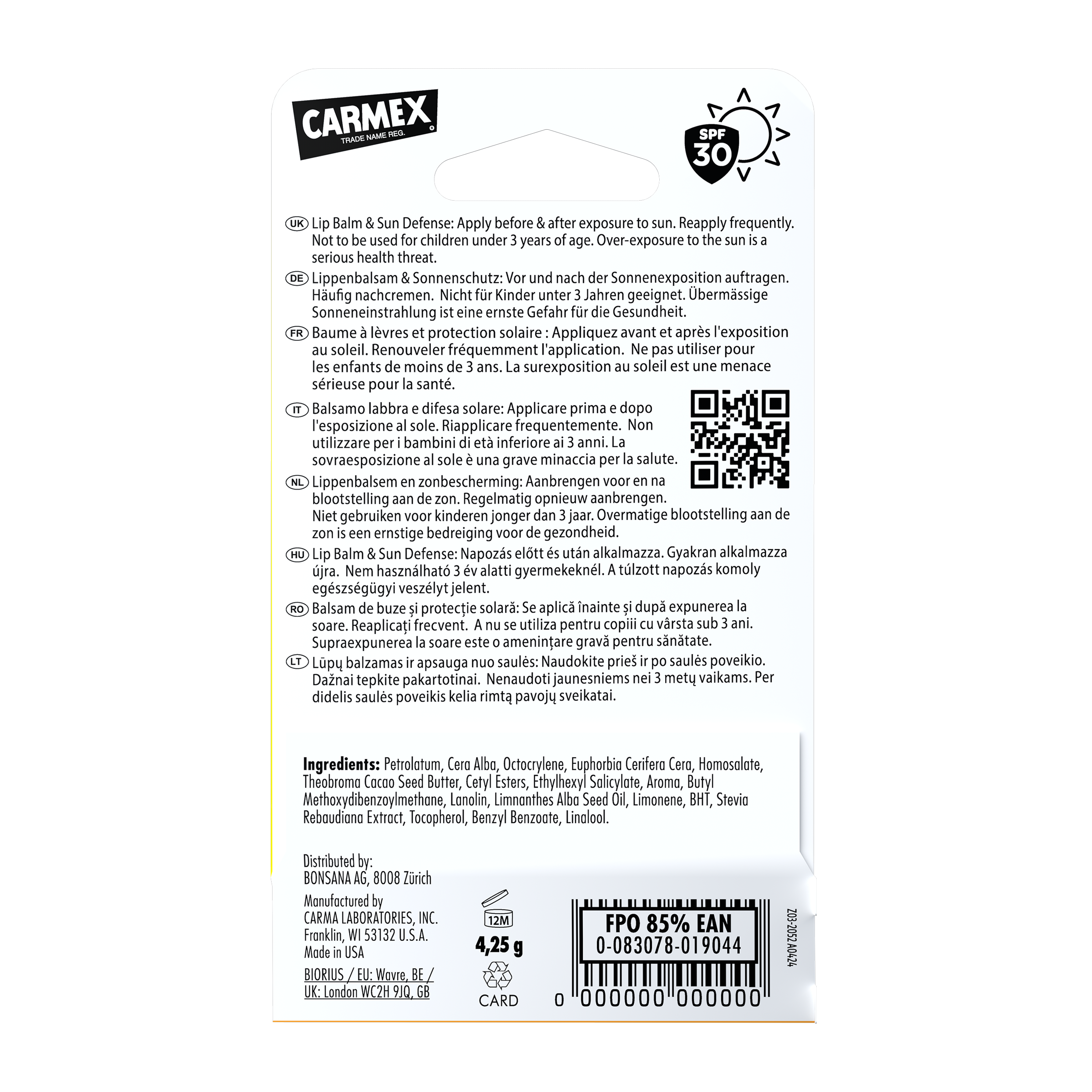 Petrolatum, Lanolin, Homosalate, Octocrylene, Cera Alba, Aroma, Euphorbia Cerifera Cera, Cetyl Esters, Theobroma Cacao Seed Butter, Ethylhexyl Salicylate, Butyl Methoxydibenzoylmethane, Limonene, Limnanthes Alba Seed Oil, BHT, Camphor, Menthol, Salicylic
