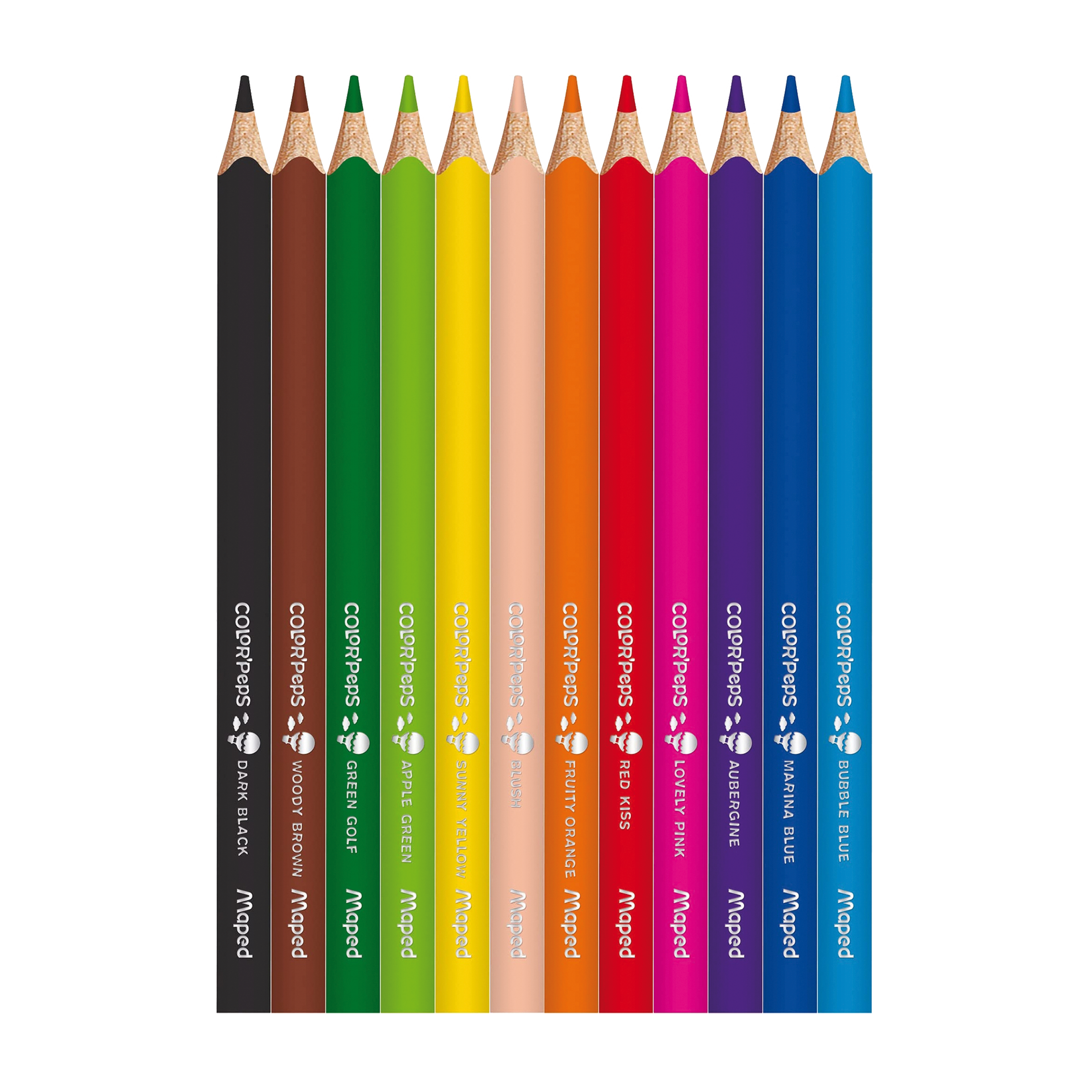 Sada 12 kusů silných pastelek o délce cca 17 cm. Pastelky Maped Jumbo mají ergonomické trojhranné tělo, měkkou odolnou tuhu o tloušťce 4,7 mm, jasné barvy. Určeno pro děti 2+.