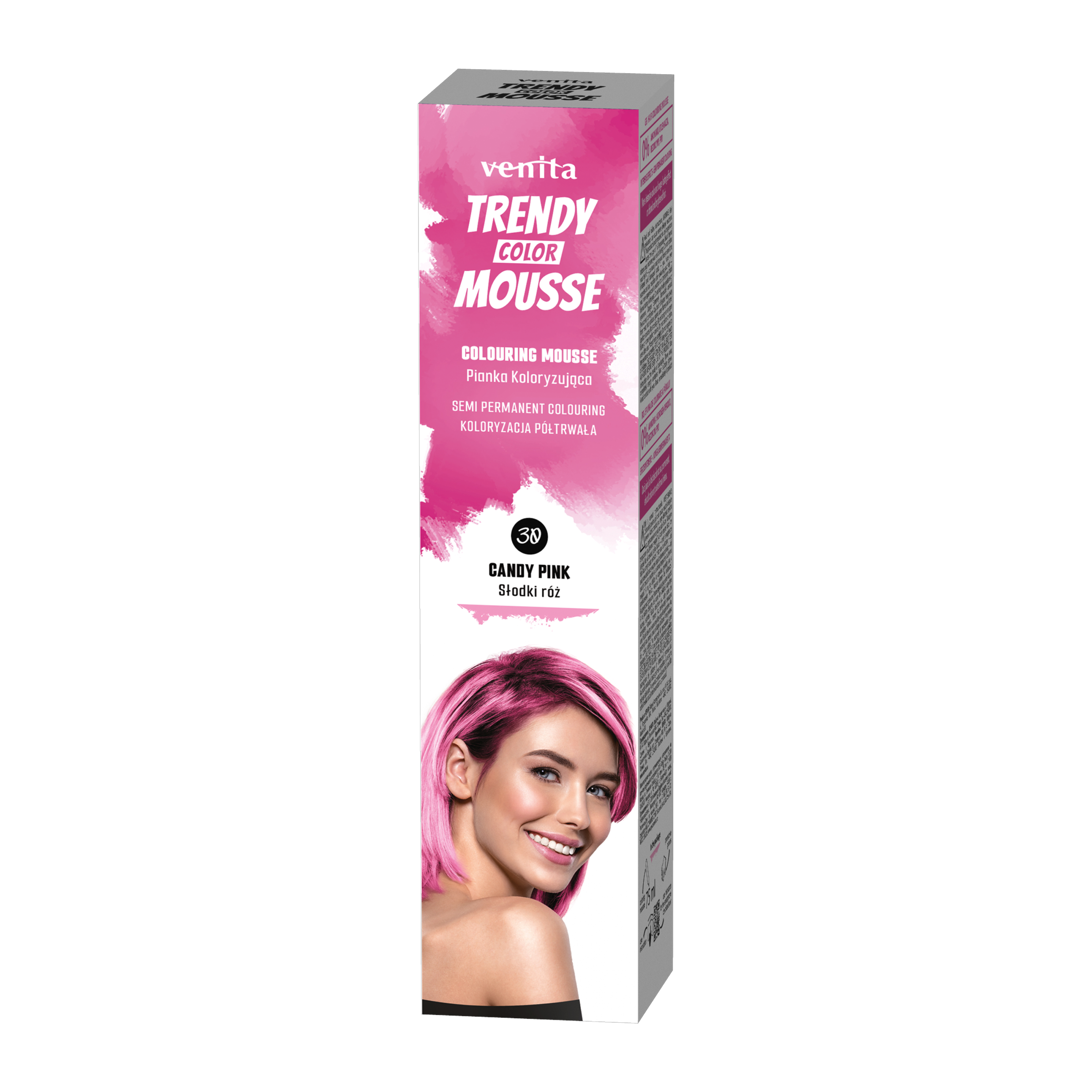 Barevné pěnové tužidlo Venita Trendy Color Mousse Candy Pink nabízí snadný a rychlý způsob, jak dočasně změnit barvu vlasů. Tato semi-permanentní barva neobsahuje amoniak ani oxidanty, což z ní činí ideální volbu pro všechny, kteří chtějí experimentovat s výraznými odstíny. Díky jednoduché aplikaci můžete snadno vyzkoušet nový vzhled, přičemž barva postupně vymývá. K dispozici je sedm různých odstínů a součástí balení jsou také ochranné rukavice.