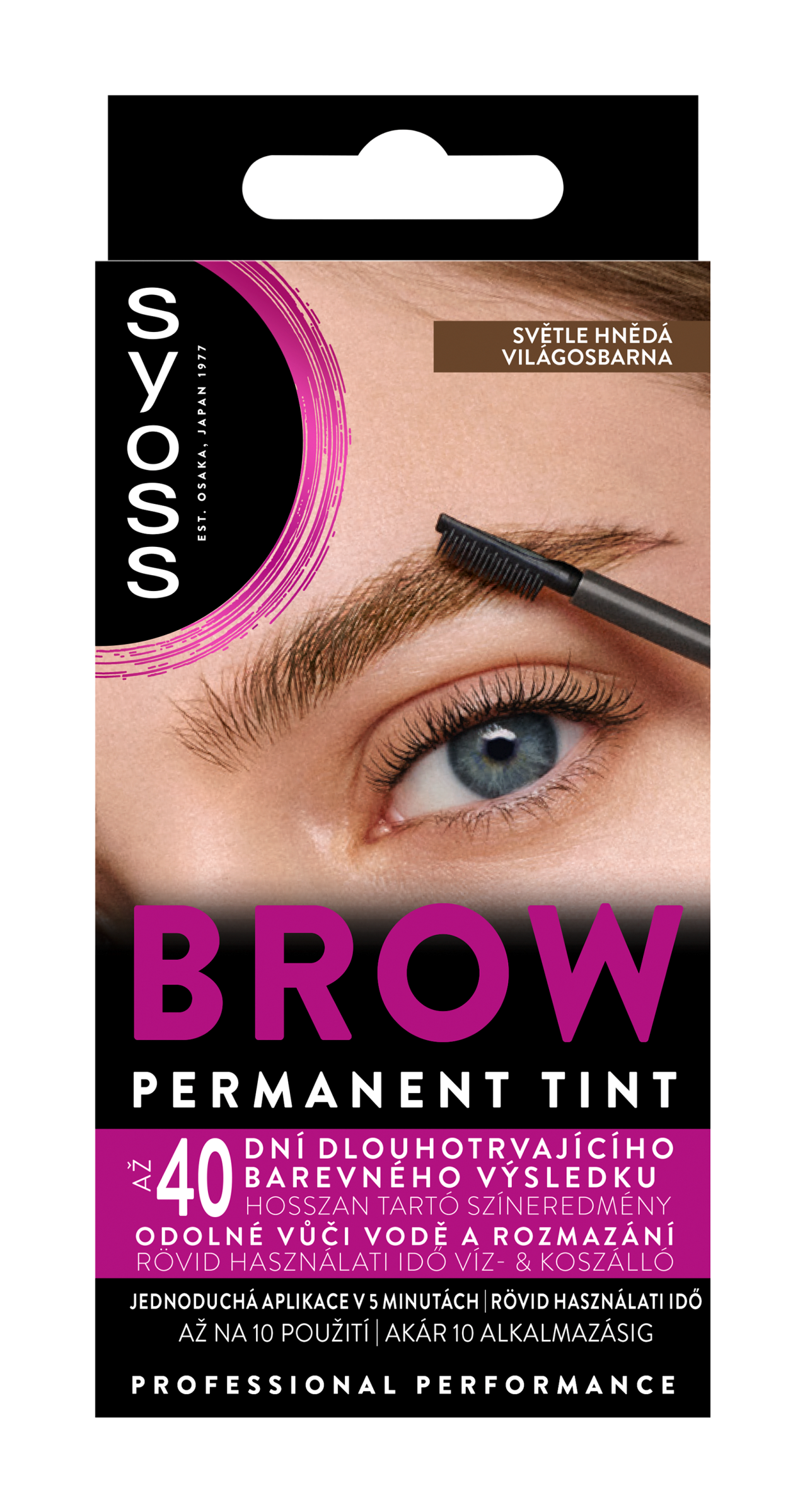 Syoss Brow Tint Světle hnědý - Permanentní barvení obočí! Získejte výraznější obočí z pohodlí domova za pouhých 5 minut. Tato receptura na obočí je odolná vůči vodě a rozmazání, což zaručuje perfektně zbarvené obočí. Díky kompaktnímu kartáčku s precizním nanášením je aplikace rychlá a jednoduchá, a dosáhnete trvalého barevného výsledku. Syoss Brow Permanent Tint je navržený pro profesionální barevné výsledky, které vydrží až 40 dní. Pro intenzivnější obočí. TIP: Vyberte si barvu, která odpovídá barvě vašich vlasů nebo je o něco tmavší, abyste se vyhnuli nepřirozeným výsledkům.