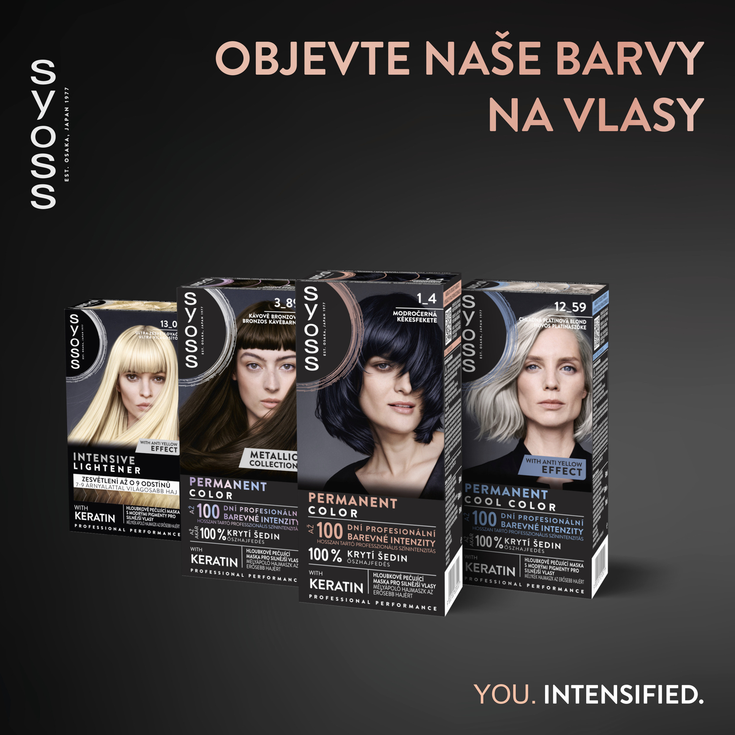 Objevte nejširší nabídku permanentních barev na vlasy Syoss s trendy odstíny přímo od kadeřníků. Pro dlouhotrvající, zářivou barvu, profesionální krytí šedin a silnější vlasy zevnitř i zvenčí.