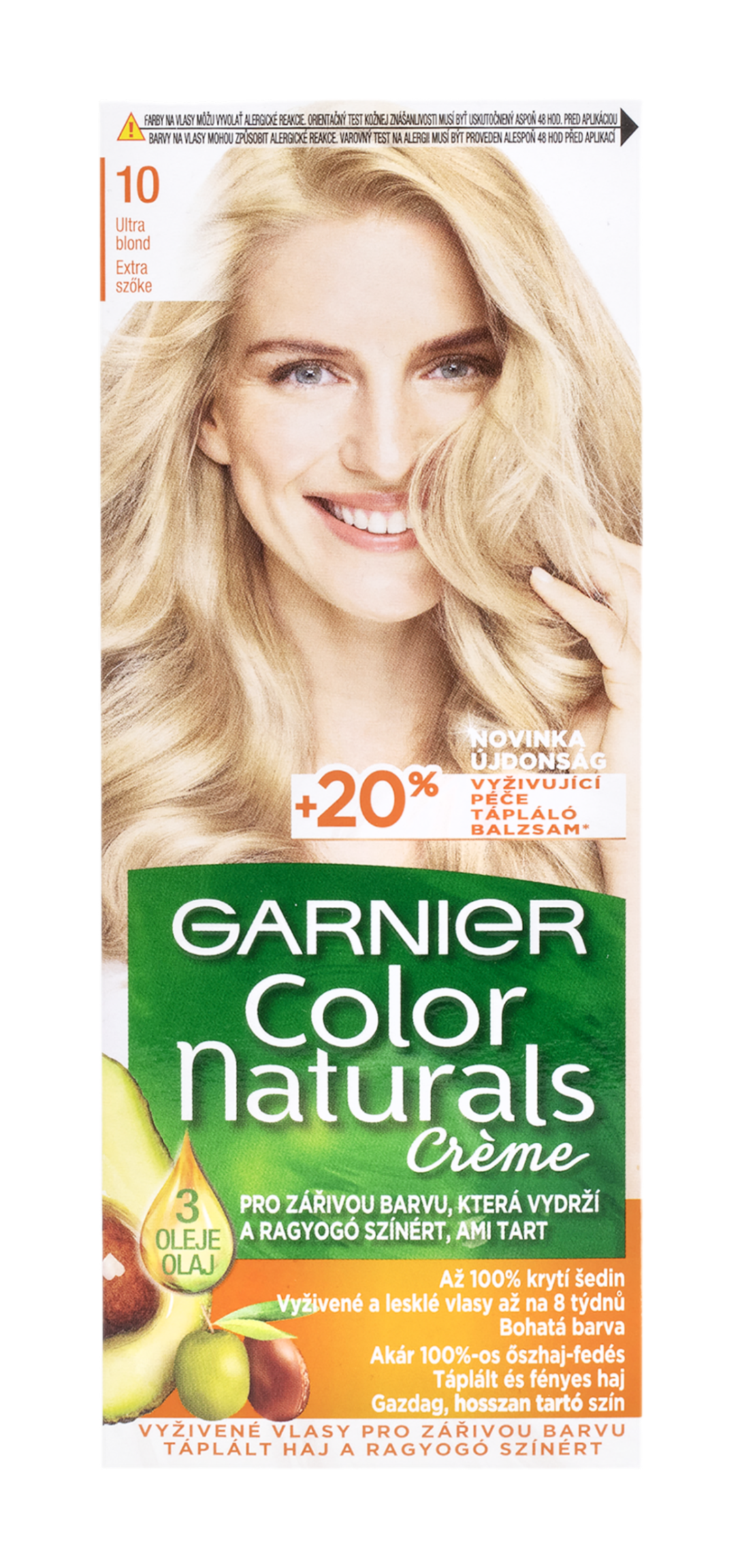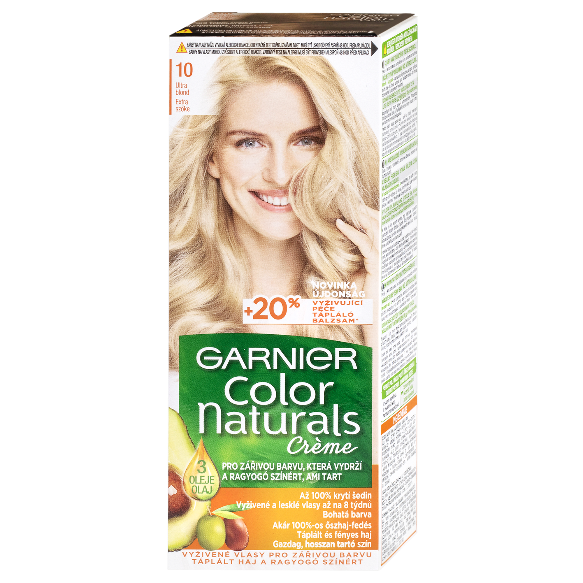 Barva na vlasy Garnier Color Naturals je vyživující permanentní barvou od Garnier. Díky složení vyživující péče obohacené o 5 olejů – olivy, avokádo, karité, kokos a argan budou vaše vlase lesklejší a hebčí. Péče intenzivně vyživuje vlasy, uhlazuje povrch vlasového vlákna a vytváří ochrannou vrstvu. Technologie „Color boost“ pro sytější a déle trvající barvu proniká do vlasových vláken a vyplňuje je sytou bohatou barvou. Díky závěrečné péči s 5 oleji je barva bohatá a dlouhotrvající. Výsledkem jsou 5x silnější vlasy, 100% krytí šedin a ochrana vlasů před vysušováním až na 8 týdnů, (*Instrumentální test). Zesvětlující barvy dokáží přirozeně odbarvit vlasy až o 4 odstíny. Studené pigmenty obsažené ve vybraných studených odstínech eliminují nežádoucí oranžové a žluté odlesky.
