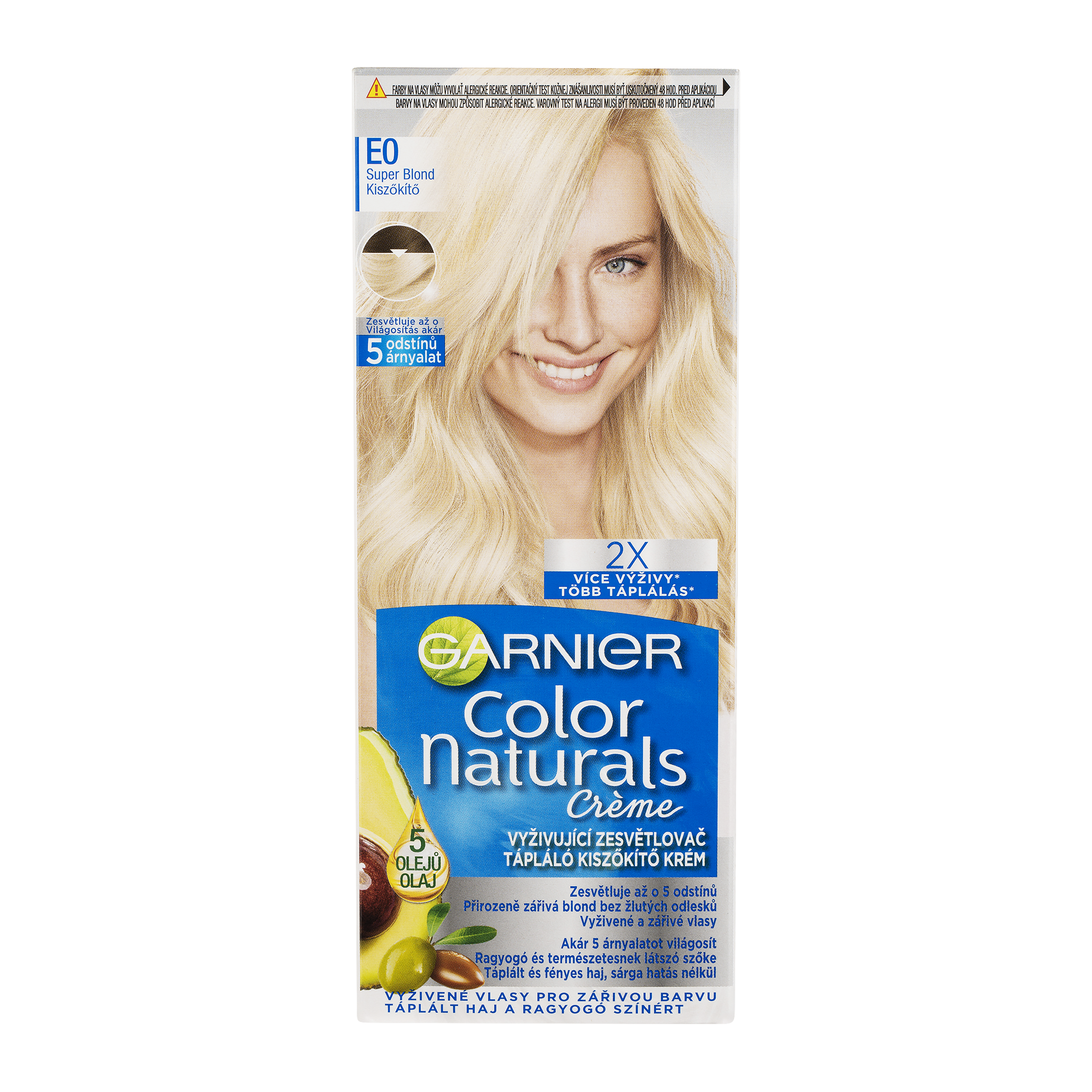 Barva na vlasy Garnier Color Naturals je vyživující permanentní barvou od Garnier. Díky složení vyživující péče obohacené o 5 olejů – olivy, avokádo, karité, kokos a argan budou vaše vlase lesklejší a hebčí. Péče intenzivně vyživuje vlasy, uhlazuje povrch vlasového vlákna a vytváří ochrannou vrstvu. Technologie „Color boost“ pro sytější a déle trvající barvu proniká do vlasových vláken a vyplňuje je sytou bohatou barvou. Díky závěrečné péči s 5 oleji je barva bohatá a dlouhotrvající. Výsledkem jsou 5x silnější vlasy, 100% krytí šedin a ochrana vlasů před vysušováním až na 8 týdnů, (*Instrumentální test). Zesvětlující barvy dokáží přirozeně odbarvit vlasy až o 4 odstíny. Studené pigmenty obsažené ve vybraných studených odstínech eliminují nežádoucí oranžové a žluté odlesky.