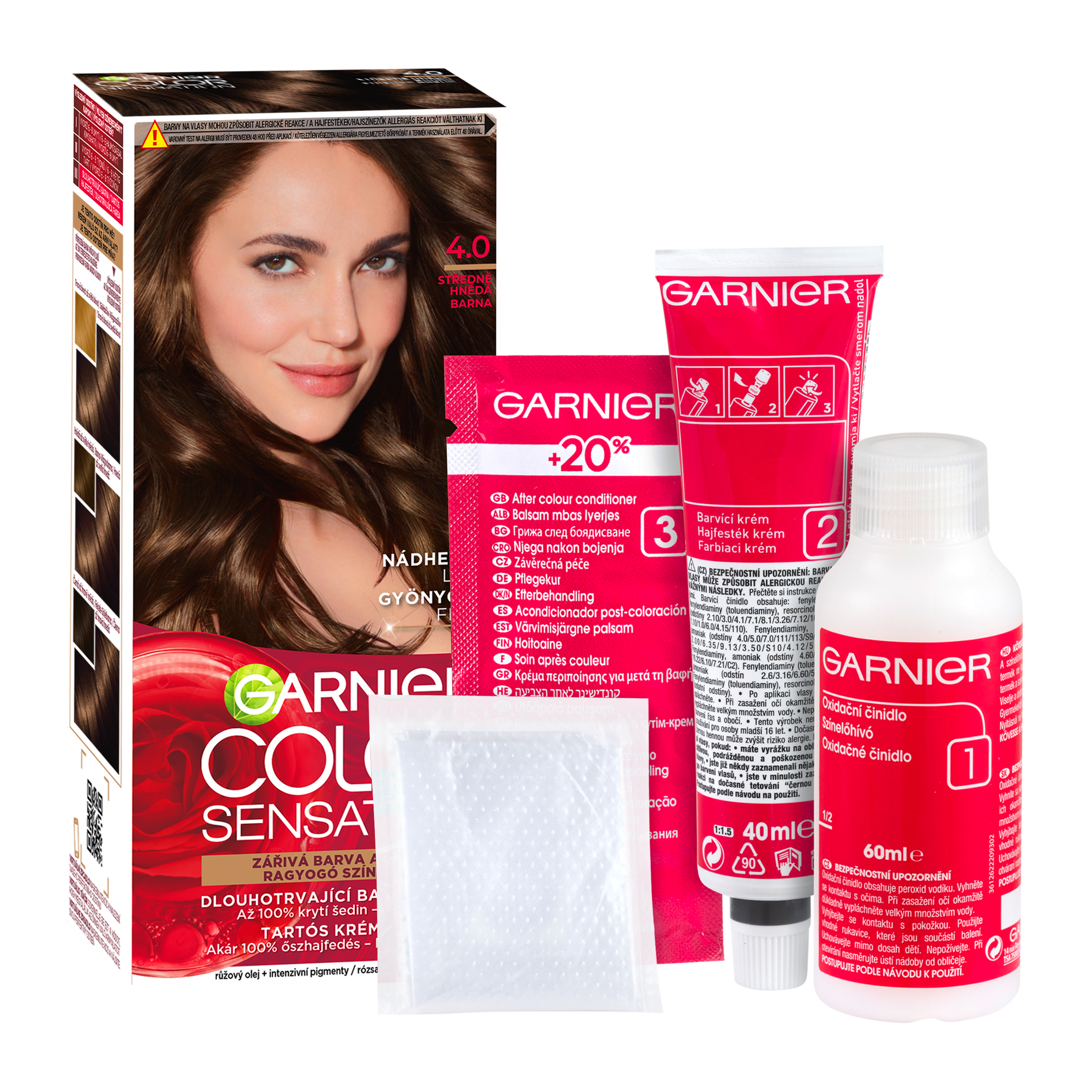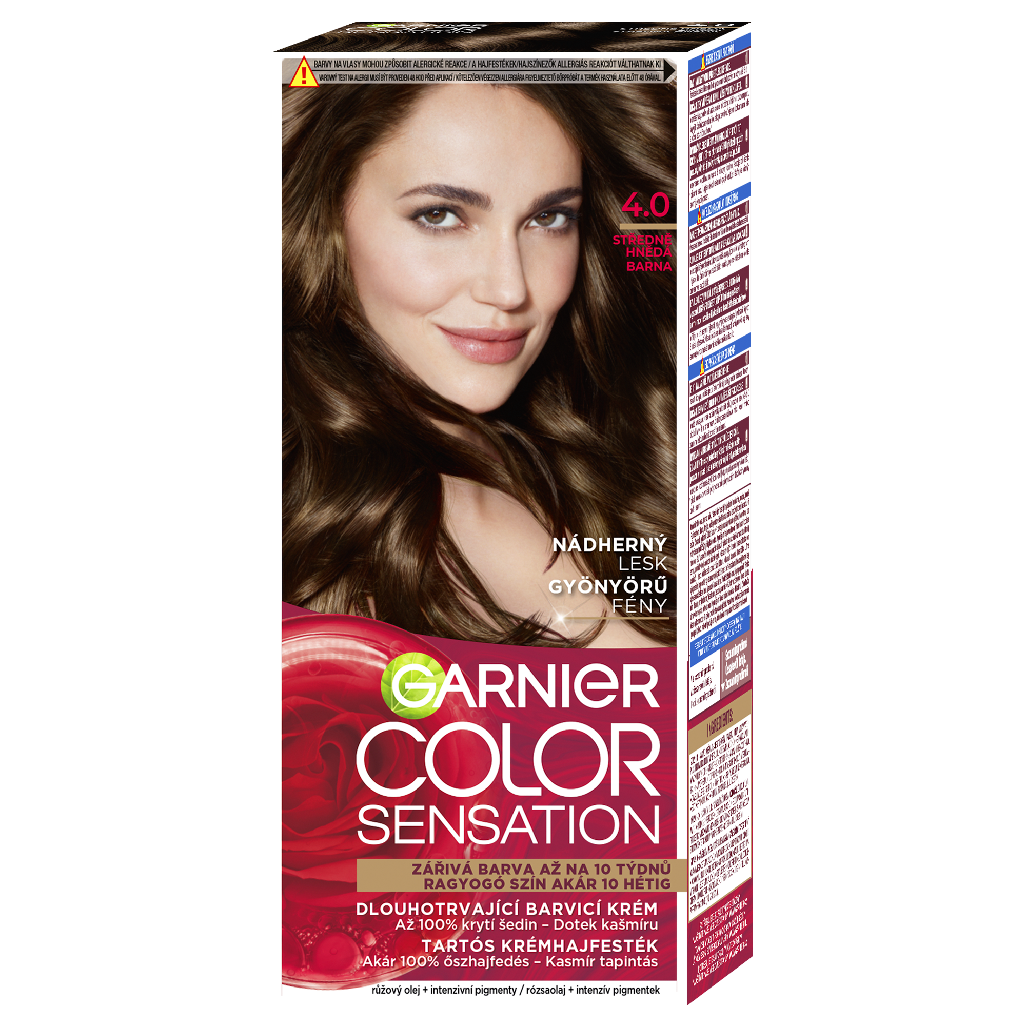 Nová řada Garnier Color Sensation přináší PERMANENTNÍ barvy na vlasy s dosud nejvyšším obsahem účinných pigmentů od Garnier. Přiložená vyživující péče je navíc obohacená o výtažek z divoké růže. Barvy mají dlouhotrvající účinek (po dobu 6 až 8 týdnů), vysokou intenzitu a dokonale kryjí (až 100% kryjí šediny). Vybraný barevný odstín zůstává dlouho živý a zářivý. Díky obsažené perleti odráží světlo a vlasy jsou krásně lesklé a hedvábné na dotek.