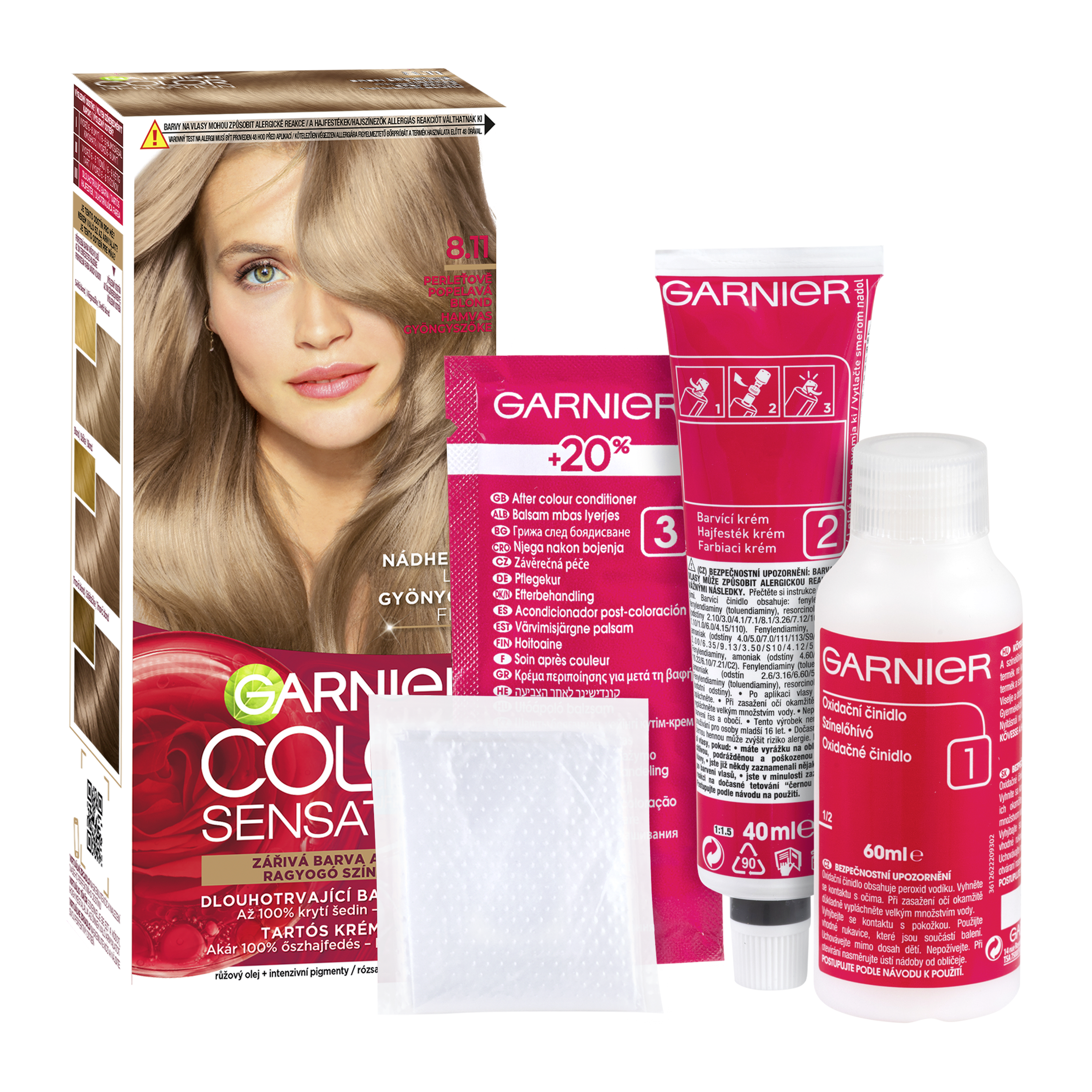 Nová řada Garnier Color Sensation přináší PERMANENTNÍ barvy na vlasy s dosud nejvyšším obsahem účinných pigmentů od Garnier. Přiložená vyživující péče je navíc obohacená o výtažek z divoké růže. Barvy mají dlouhotrvající účinek, vysokou intenzitu a dokonale kryjí (až 100% kryjí šediny). Vybraný barevný odstín zůstává dlouho živý a zářivý. Díky obsažené perleti odráží světlo a vlasy jsou krásně lesklé a hedvábné na dotek.