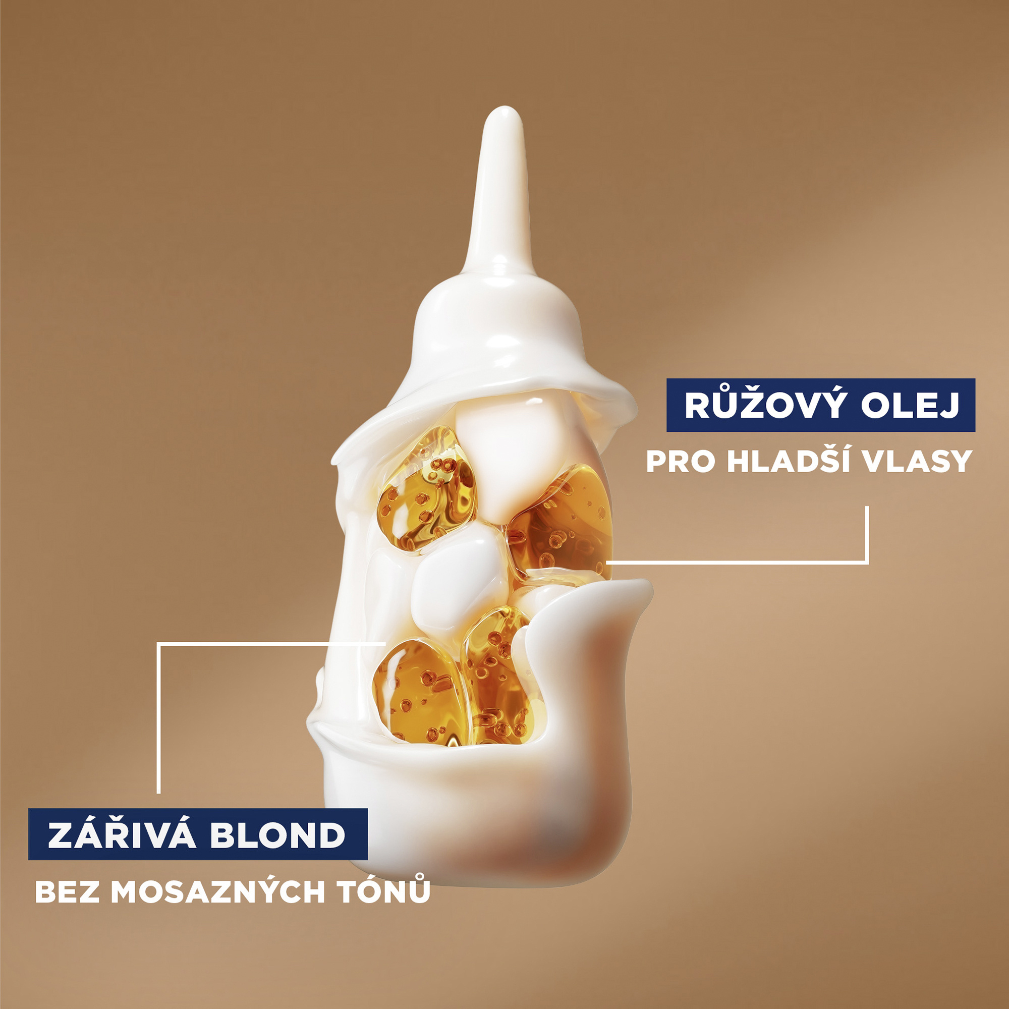 4 úrovně zesvětlení* Navrženo pro nejtmavší hnědé vlasy a všechny textury vlasů. Zesvětlí až o 4 tóny* pro perfektní rovnováhu mezi zesvětlováním a tónováním. Zářivá blond bez nutnosti odbarvování.** Nestékající barvící krém se perfektně přizpůsobí všem texturám vlasů.