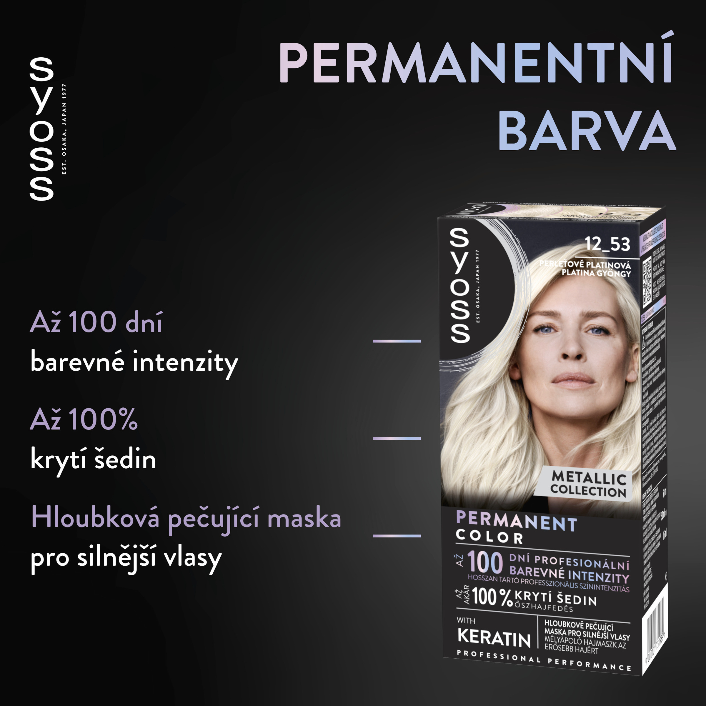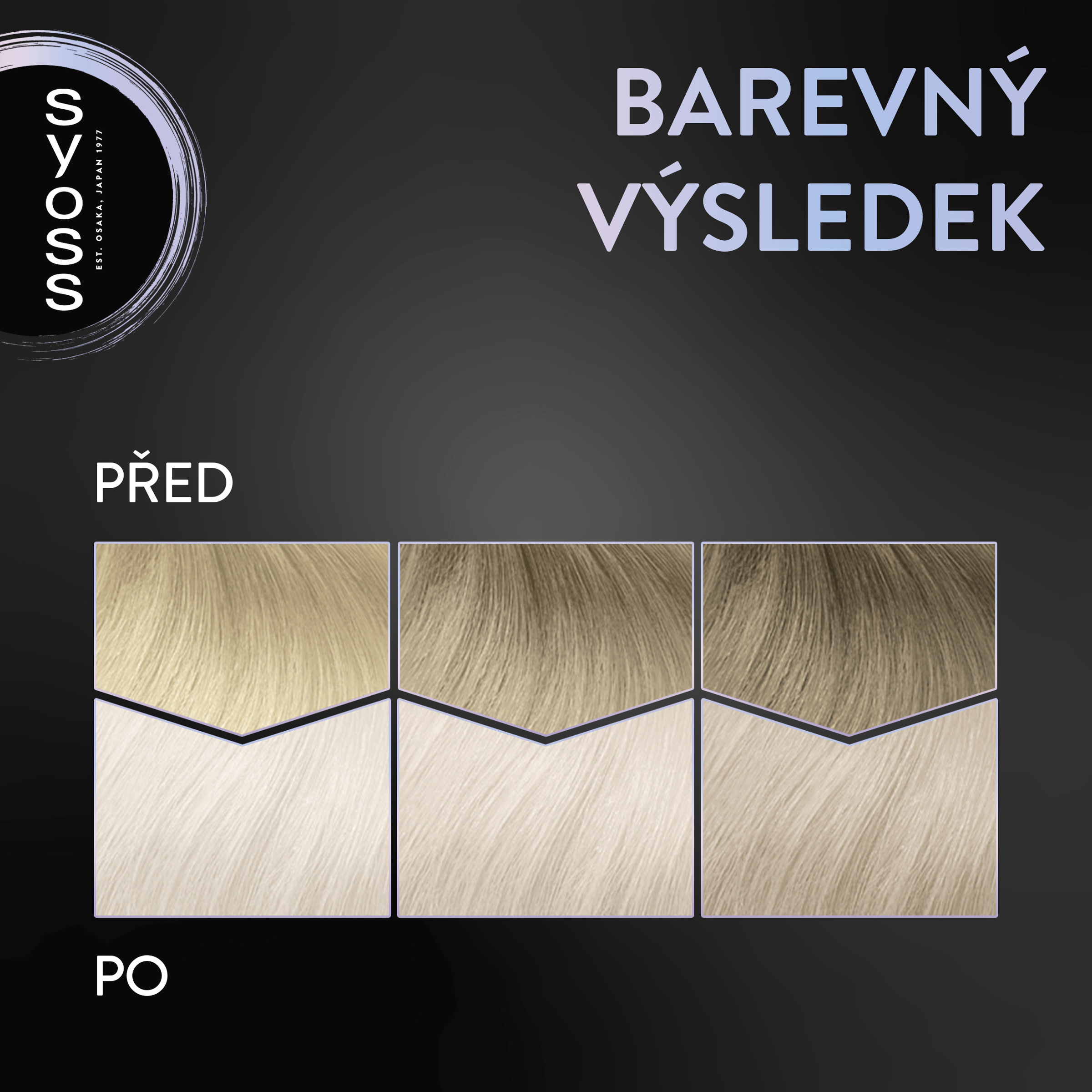Permanentní barva na vlasy s efektem proti žlutým tónům a s až 100% krytím šedin. Permanentní barvy na vlasy Syoss, s více než 45letou historií, jsou navrženy pro profesionální výkon. Díky této chladné barvě na vlasy budou vaše vlasy dlouhodobě působit plné života díky neutralizační síle barevných pigmentů. Barvicí krém s chladnými barevnými odlesky a keratinem proniká hluboko do vlasového vlákna, neutralizuje nežádoucí žluté tóny a odhaluje chladné odstíny s až 100 dny profesionální barevné intenzity a až 100% krytím šedin. Součástí balení je také hloubkově pečující modrá maska obohacená o keratin, která hloubkově posiluje vlasy zevnitř, zatímco její modré pigmenty odstraňují teplé tóny pro ledové odlesky. Tato arktická blond barva na vlasy se doporučuje pro světle blond až středně blond vlasy.