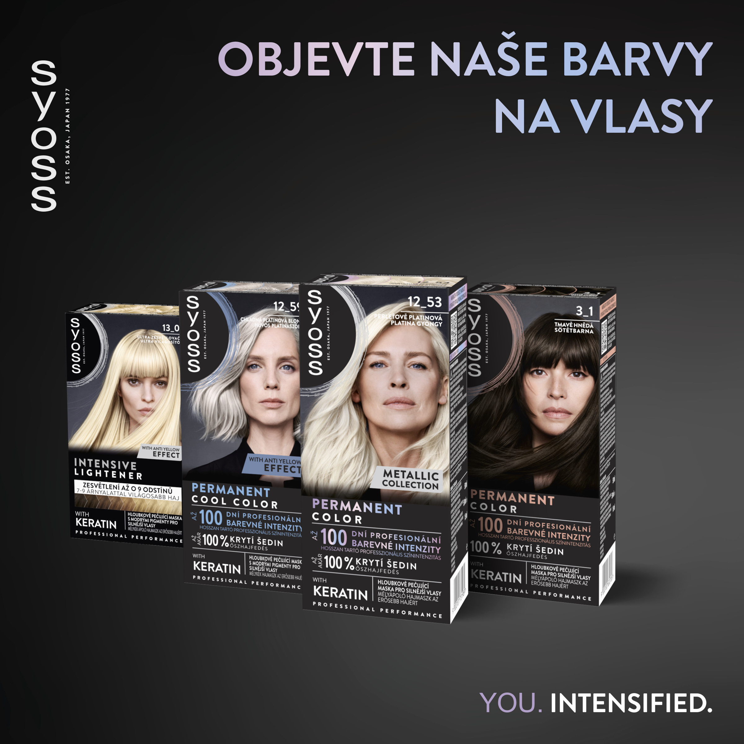 Objevte nejširší nabídku permanentních barev na vlasy Syoss s trendy odstíny přímo od kadeřníků. Pro dlouhotrvající, zářivou barvu, profesionální krytí šedin a silnější vlasy zevnitř i zvenčí. Pro optimální péči doporučujeme Syoss Color šampon a intenzivní balzám.