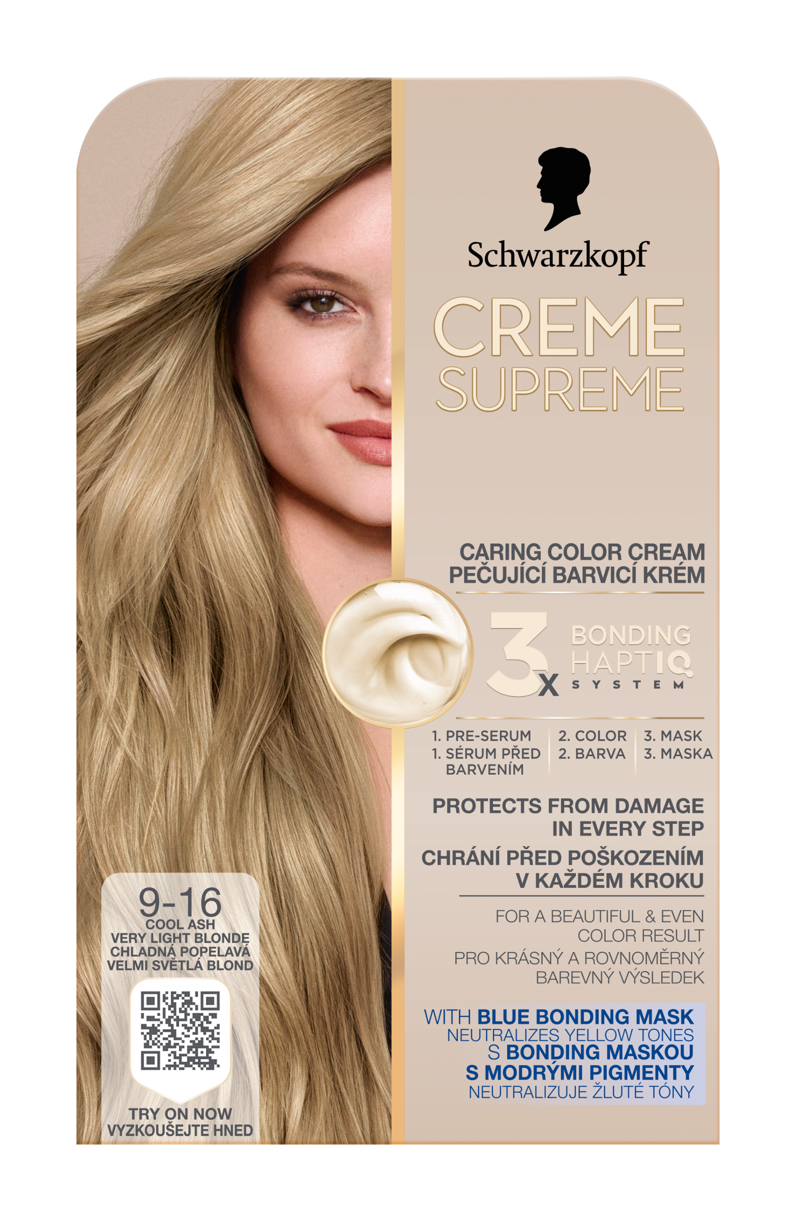 Vysněná barva na vlasy s péčí, kterou si zasloužíte. Tato pečující barva na vlasy od Schwarzkopf s technologií 3x Bonding HaptIQ System poskytuje intenzivní ochranu a péči, díky čemuž zajišťuje krásný a jednotný barevný výsledek. Jak to celé funguje? Bonding sérum před barvením: Toto intenzivně pečující sérum vlasy dokonale připraví na celý proces barvení. Díky inovativní technologii vytváří mikrovazby a posiluje vlasy pro jejich rovnoměrné obarvení. Bonding barvicí krém: Poskytuje vlasům ochranu, aby nedošlo k jejich poškození během barvení. Bonding maska: Obaluje vlasy ochrannou vrstvou a vytváří nové mikrovazby pro hloubkovou péči, zatímco neutralizuje nežádoucí žluté tóny. Certifikace PETA*. *Globální politika netestování na zvířatech.
