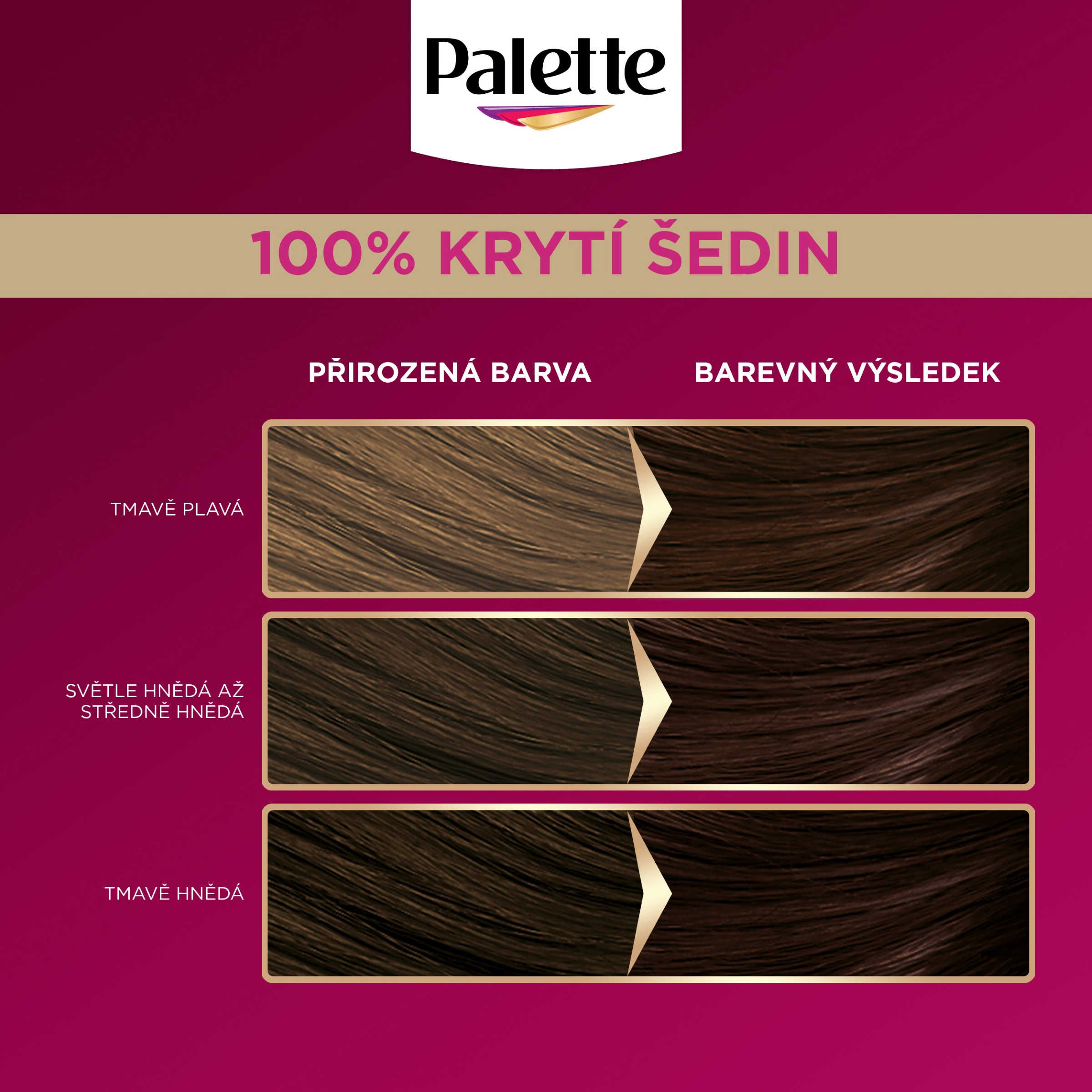 Palette je expertem na barvení vlasů, kterému důvěřují miliony lidí. V průběhu let jsme vyvinuli jedinečné a účinné receptury, které hrdě plní vaše přání v oblasti barvení a stylingu vlasů. Ať už chcete změnit barvu vlasů natrvalo, spolehlivě zakrýt šediny nebo jen vyzkoušet nový vzhled, Palette vám nabízí kompletní řadu barev na vlasy, které vám pomohou splnit vaše osobní přání.