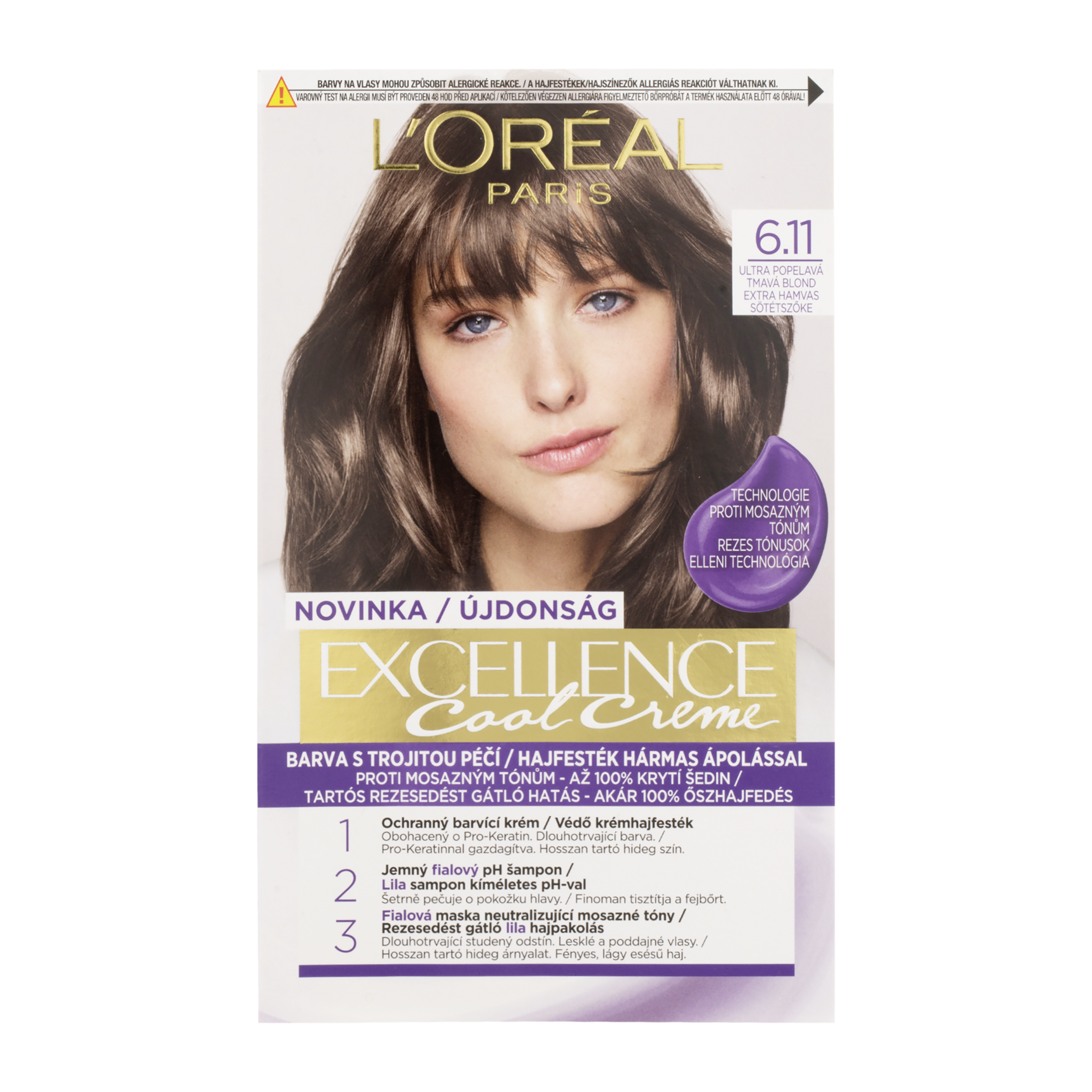 Permanentní barva obohacená o ochranné složky. L'Oréal Paris Excellence přináší rituál barvení s trojí ochranou obohacený o kyselinu hyaluronovou, který se stará o vaši barvu, pokožku hlavy i o vaše vlasy. S novým jemným ošetřujícím pH šamponem po barvení budou vaše vlasy hladké a plné lesku s přirozeně vypadající barvou. Kryje 100 % šedin. Kyselina hyaluronová je silná molekula přitahující hydrataci, přirozeně přítomná v těle, se schopností udržet 1000násobek své hmotnosti ve vodě.