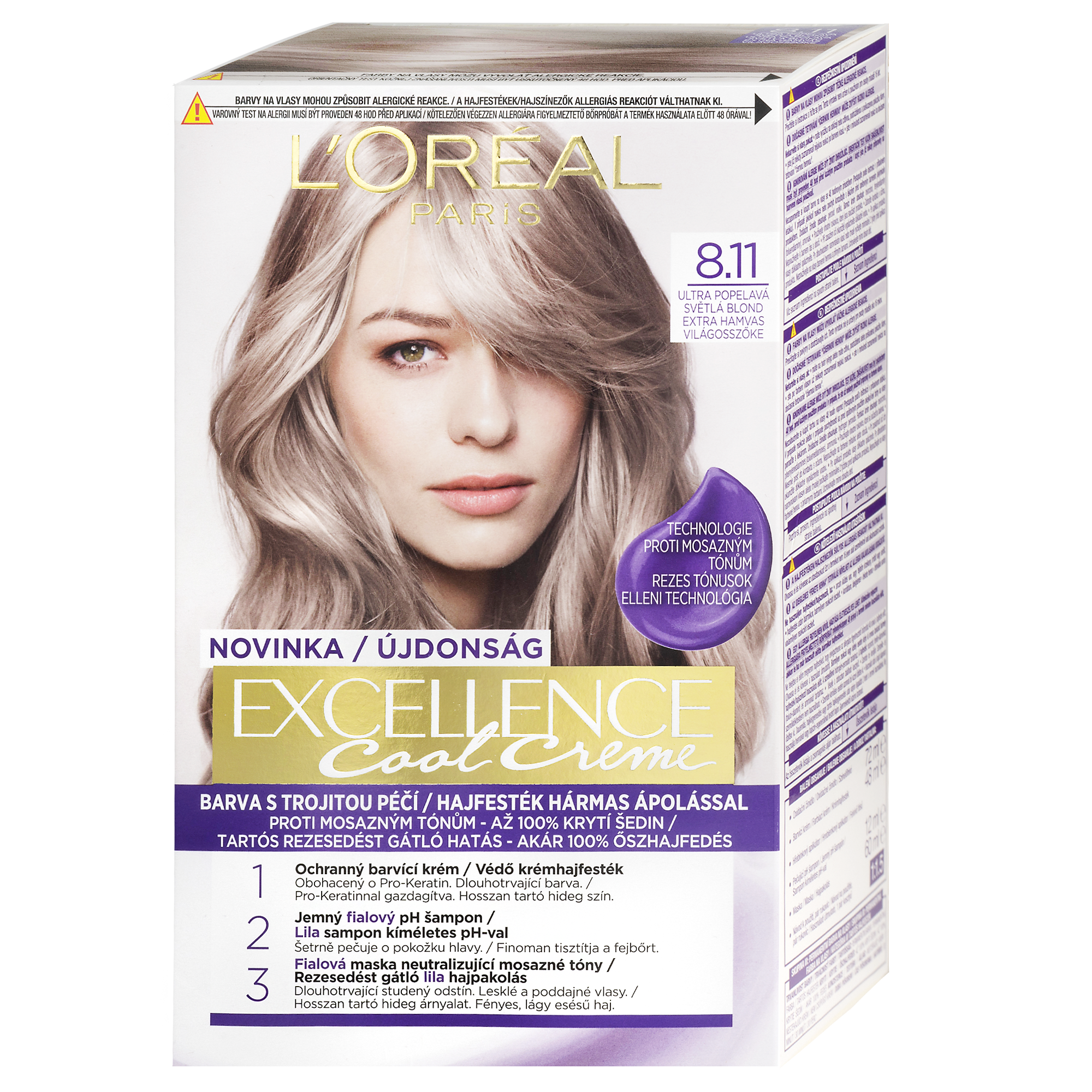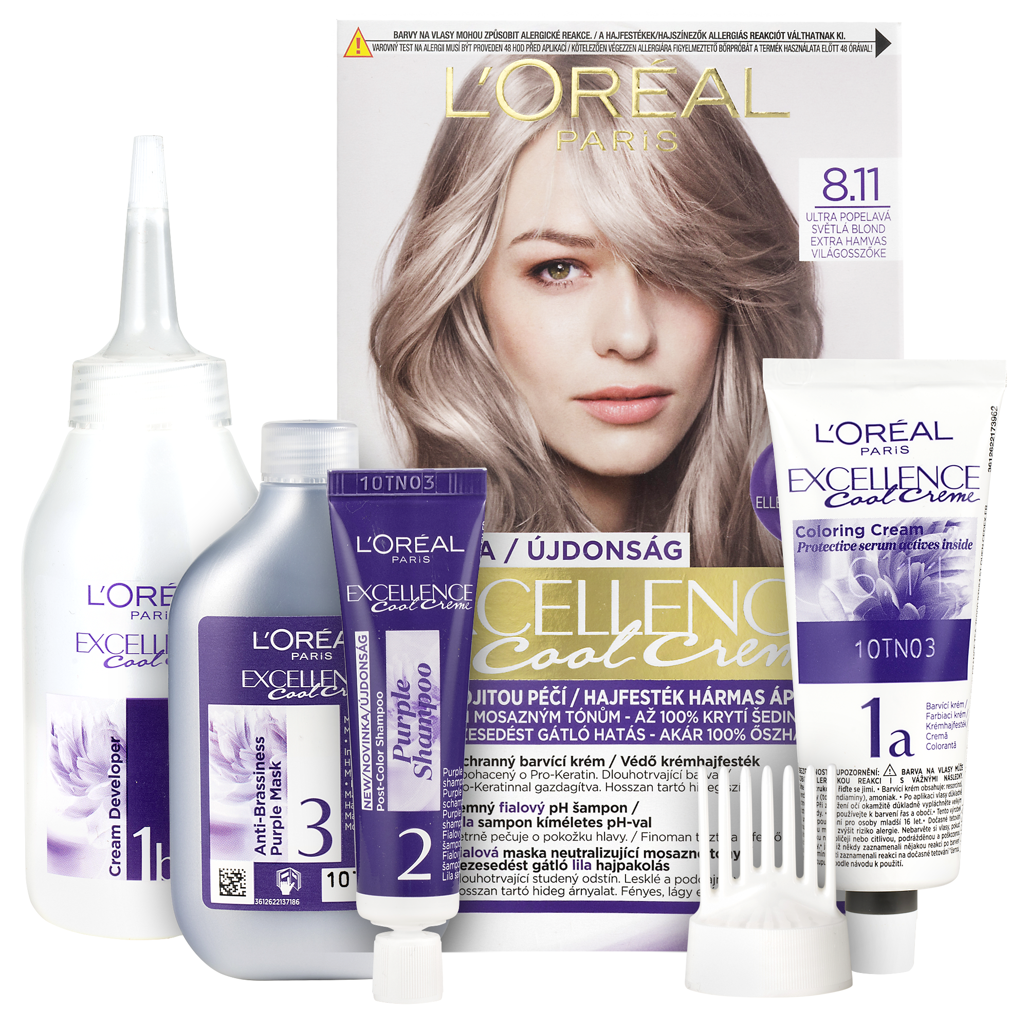Jak funguje v barvách na vlasy? 1. V ochranném barvicím krému dodává vlasům hloubkovou hydrataci a až 2x bohatší barevný výsledek*. 2. Ve vyživující masce přináší až 5x větší hydrataci** pro dlouhodobou zářící barvu. Excellence Cool Creme má také šampon s jemným pH a masku proti mosazným tónům obohacenou o Purple technologii, pro studený barevný výsledek.