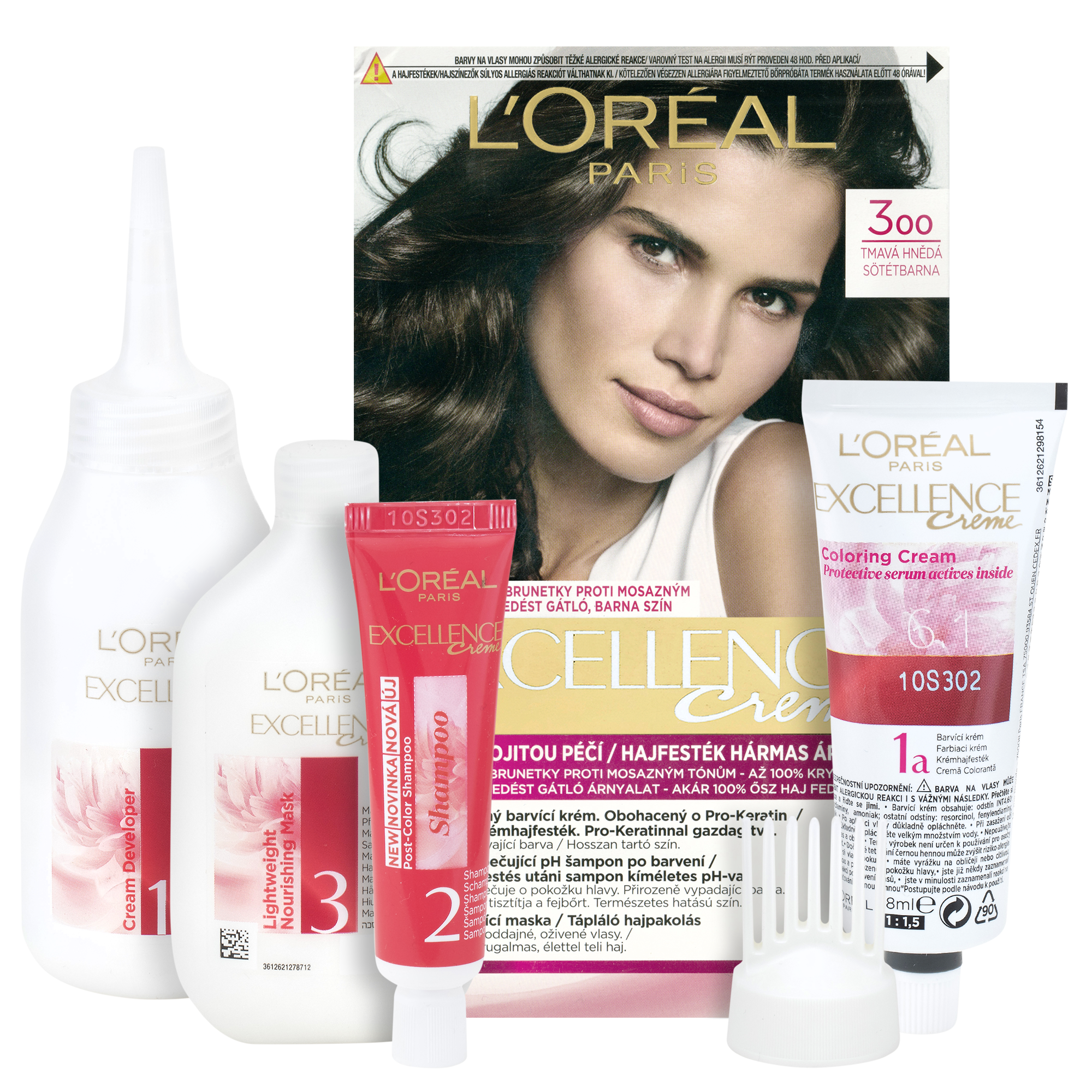 Permanentní barva obohacená o ochranné složky. L'Oréal Paris Excellence přináší rituál barvení s trojí ochranou obohacený o kyselinu hyaluronovou, který se stará o vaši barvu, pokožku hlavy i o vaše vlasy. S novým jemným ošetřujícím pH šamponem po barvení budou vaše vlasy hladké a plné lesku s přirozeně vypadající barvou. Kryje 100 % šedin. Kyselina hyaluronová je silná molekula přitahující hydrataci, přirozeně přítomná v těle, se schopností udržet 1000násobek své hmotnosti ve vodě.