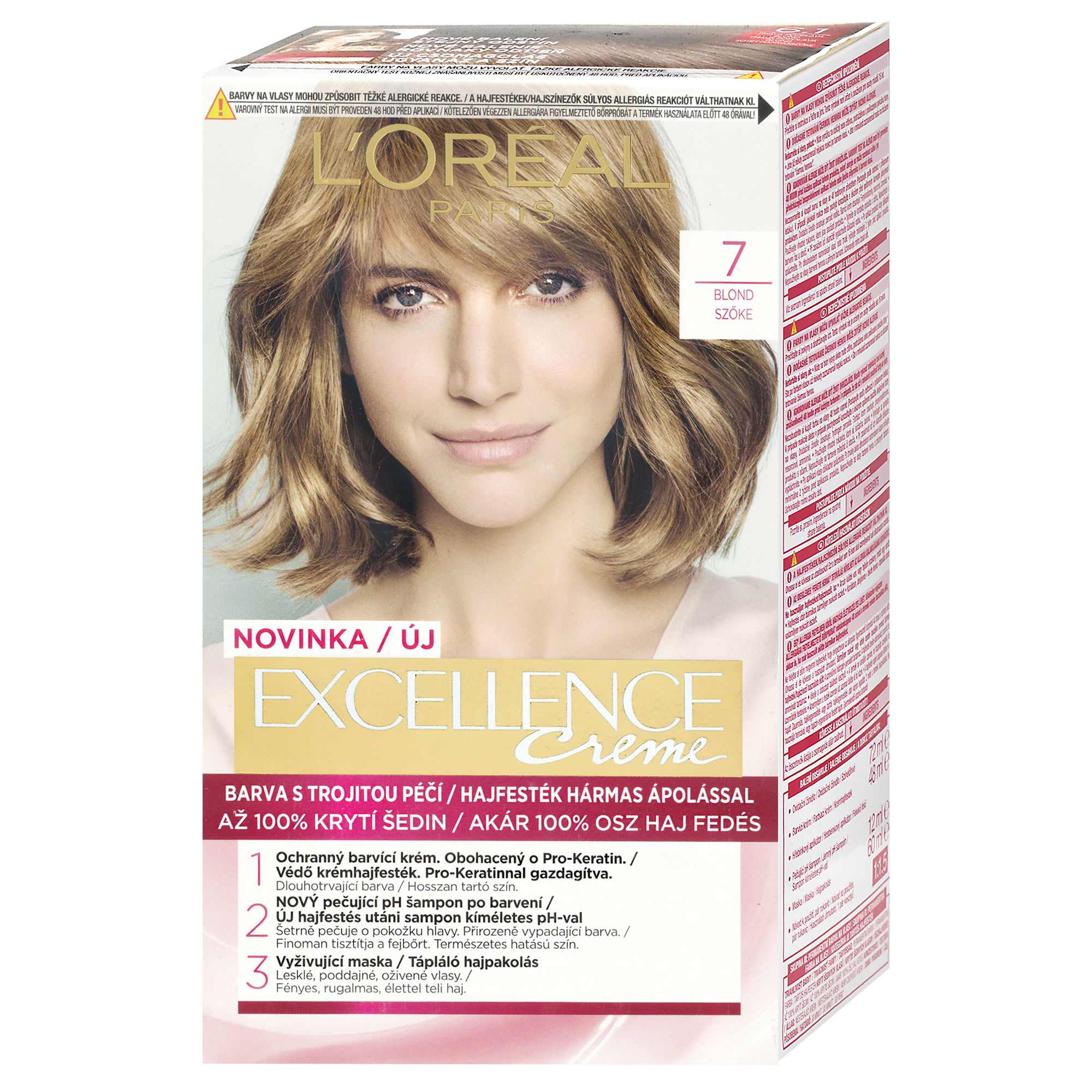 Permanentní barva obohacená o ochranné složky. L'Oréal Paris Excellence přináší rituál barvení s trojí ochranou obohacený o kyselinu hyaluronovou, který se stará o vaši barvu, pokožku hlavy i o vaše vlasy. S novým jemným ošetřujícím pH šamponem po barvení budou vaše vlasy hladké a plné lesku s přirozeně vypadající barvou. Kryje 100 % šedin. Kyselina hyaluronová je silná molekula přitahující hydrataci, přirozeně přítomná v těle, se schopností udržet 1000násobek své hmotnosti ve vodě.