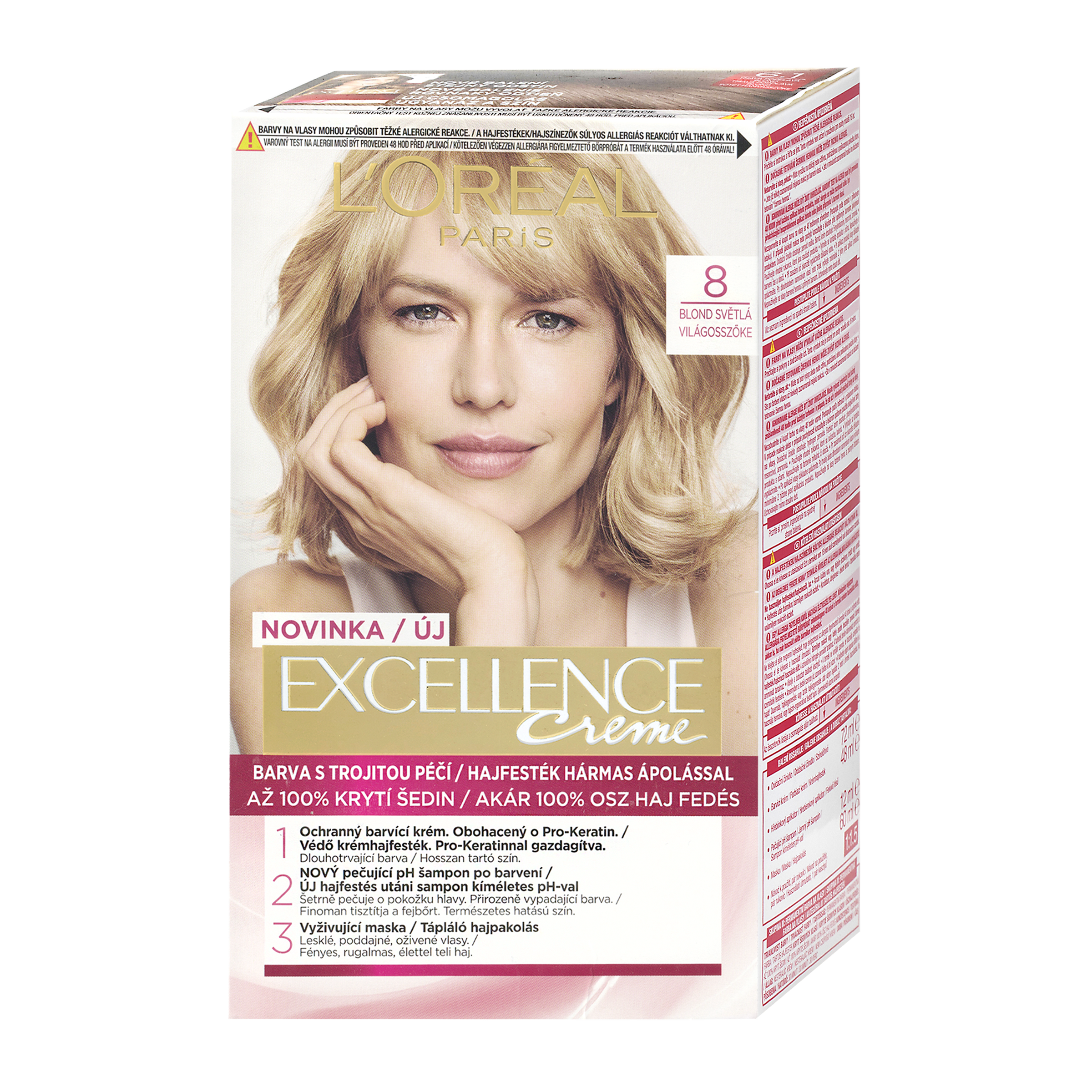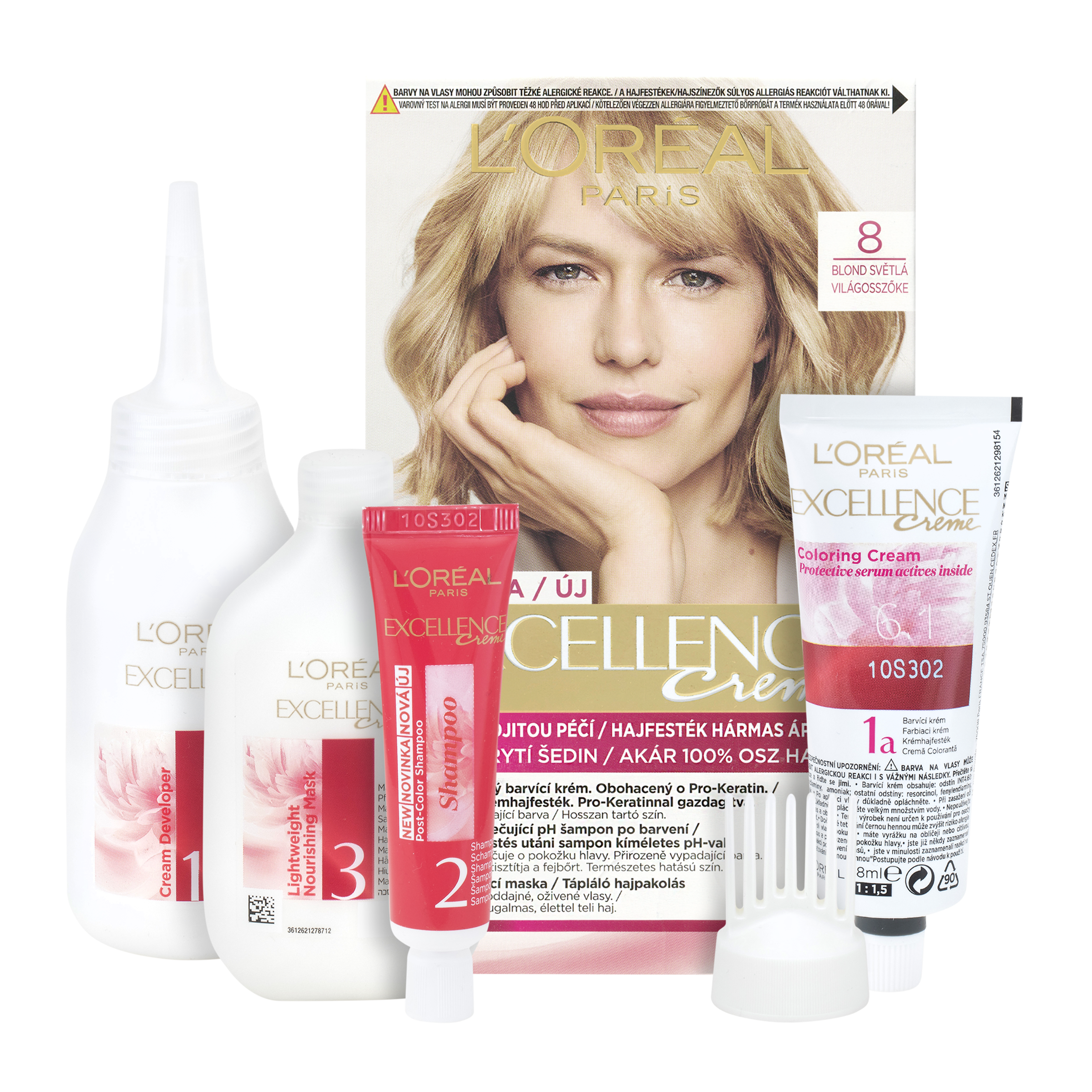 Permanentní barva obohacená o ochranné složky. L'Oréal Paris Excellence přináší rituál barvení s trojí ochranou obohacený o kyselinu hyaluronovou, který se stará o vaši barvu, pokožku hlavy i o vaše vlasy. S novým jemným ošetřujícím pH šamponem po barvení budou vaše vlasy hladké a plné lesku s přirozeně vypadající barvou. Kryje 100 % šedin. Kyselina hyaluronová je silná molekula přitahující hydrataci, přirozeně přítomná v těle, se schopností udržet 1000násobek své hmotnosti ve vodě.