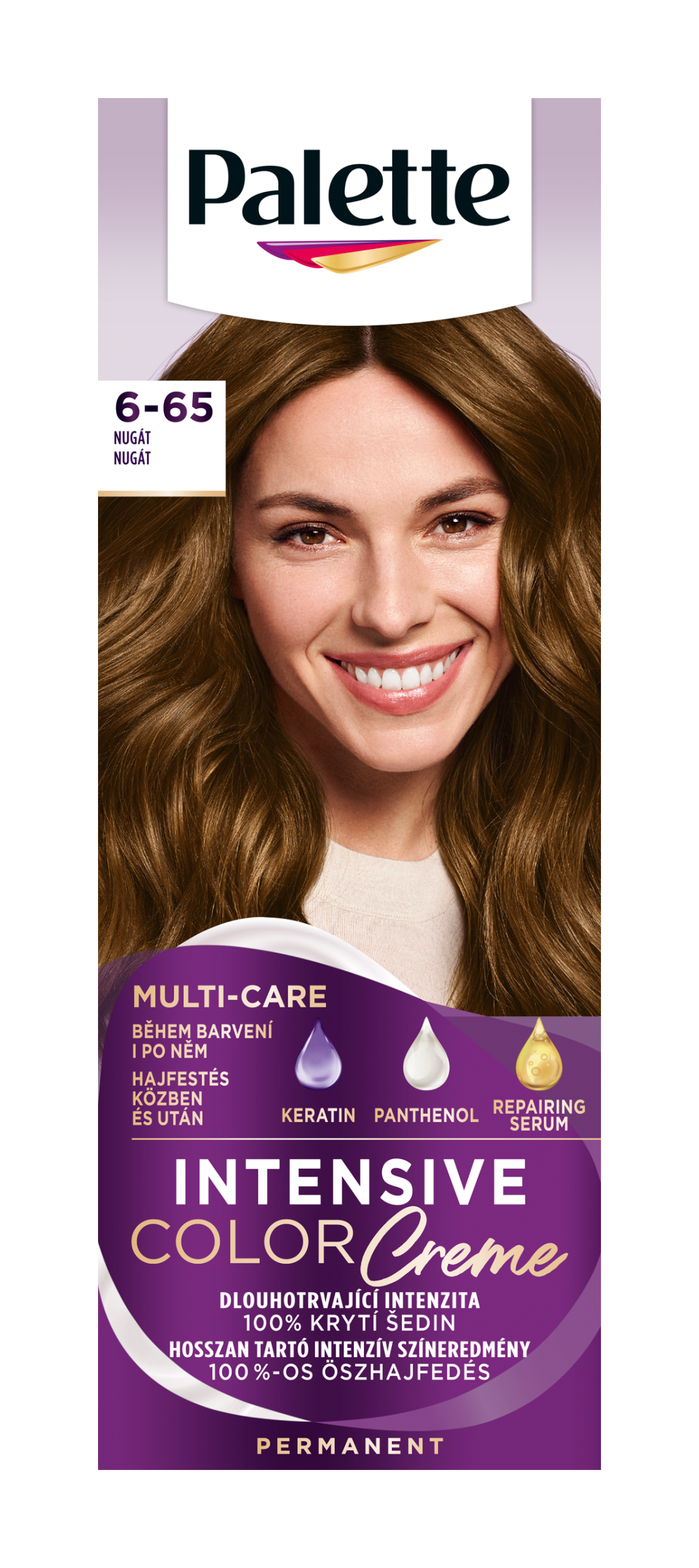 Objevte Palette Intensive Color Creme s MULTI-CARE recepturou pro dlouhotrvající a intenzivní barevný výsledek. Složení s vysoce intenzivními pigmenty proniká hluboko do vlasů a ukotvuje v nich barvu pro ochranu proti vyblednutí. Výsledkem je tak dlouhotrvající intenzita barvy po několik týdnů a 100% krytí šedin. Nová MULTI-CARE receptura díky keratinu, panthenolu a regeneračnímu séru navíc chrání vaše vlasy a poskytuje jim komplexní péči během barvení a po něm. Keratin slouží jako ochranný štít, který vlasy chrání během barvení i po něm. Panthenol vlasy intenzivně vyživuje a viditelně zlepšuje jejich kvalitu. Regenerační sérum je navrženo k obnovení a zjemnění vlasového vlákna. Tento odstín je vhodný pro světle plavé až světle hnědé vlasy. Vhodné i na úplně šedivé vlasy.