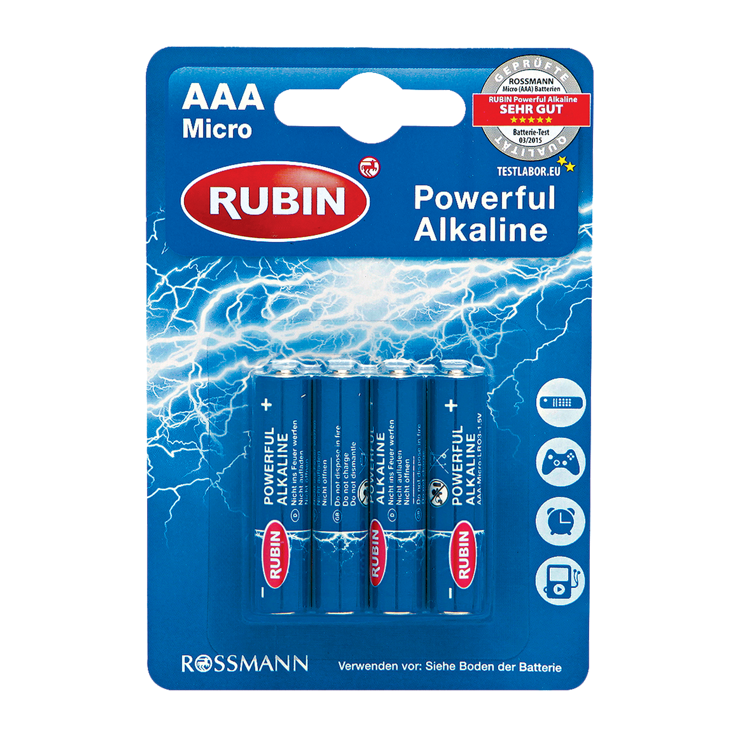 Při správném používání vám RUBIN baterie nabízí výkonný zdroj energie s dlouhou životností. Jsou odolné proti úniku a zaručeně bez kadmia a rtuti. Doporučují se pro běžná standardní zařízení používaná v každodenním životě, jako jsou digitální fotoaparáty, dálková ovládání, rádia a další hudební přehrávače, jako jsou přehrávače MP3 atd.