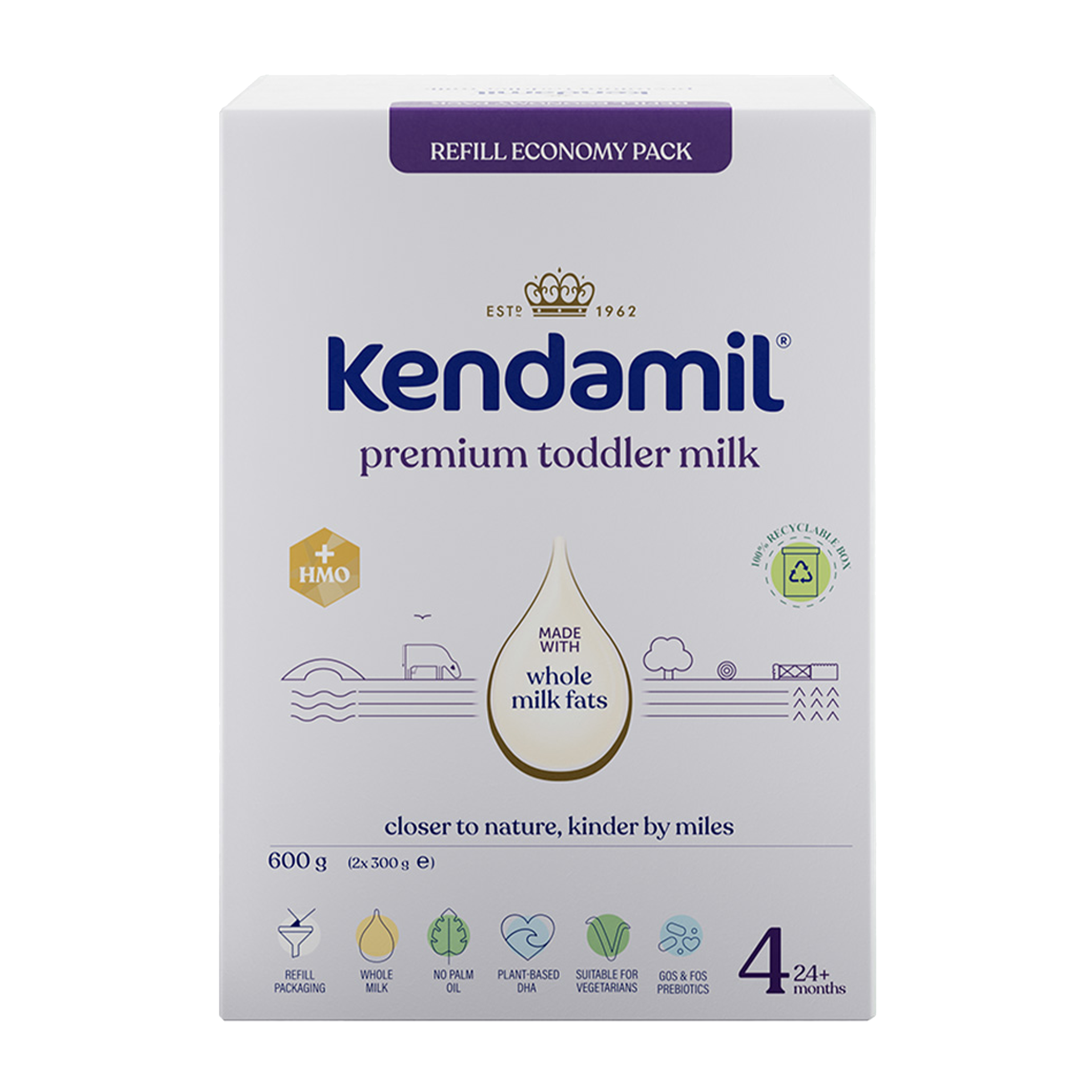 Mléčná výživa v prášku. Potravina pro zvláštní výživu od ukončeného 24. měsíce. Nová vylepšená receptura s oligosacharidem mateřského mléka HMO (3´GL) a prebiotiky (GOS a FOS) vznikla na základě 60letého výzkumu a vývoje. Kojenecké mléko Kendamil Premium je inspirováno tím nejlepším z přírody. Jeho základ tvoří především plnotučné kravské mléko s přirozeným obsahem mléčného tuku po vzoru mateřského mléka. Určeno pro děti od dvou let. Obal je plně recyklovatelný.