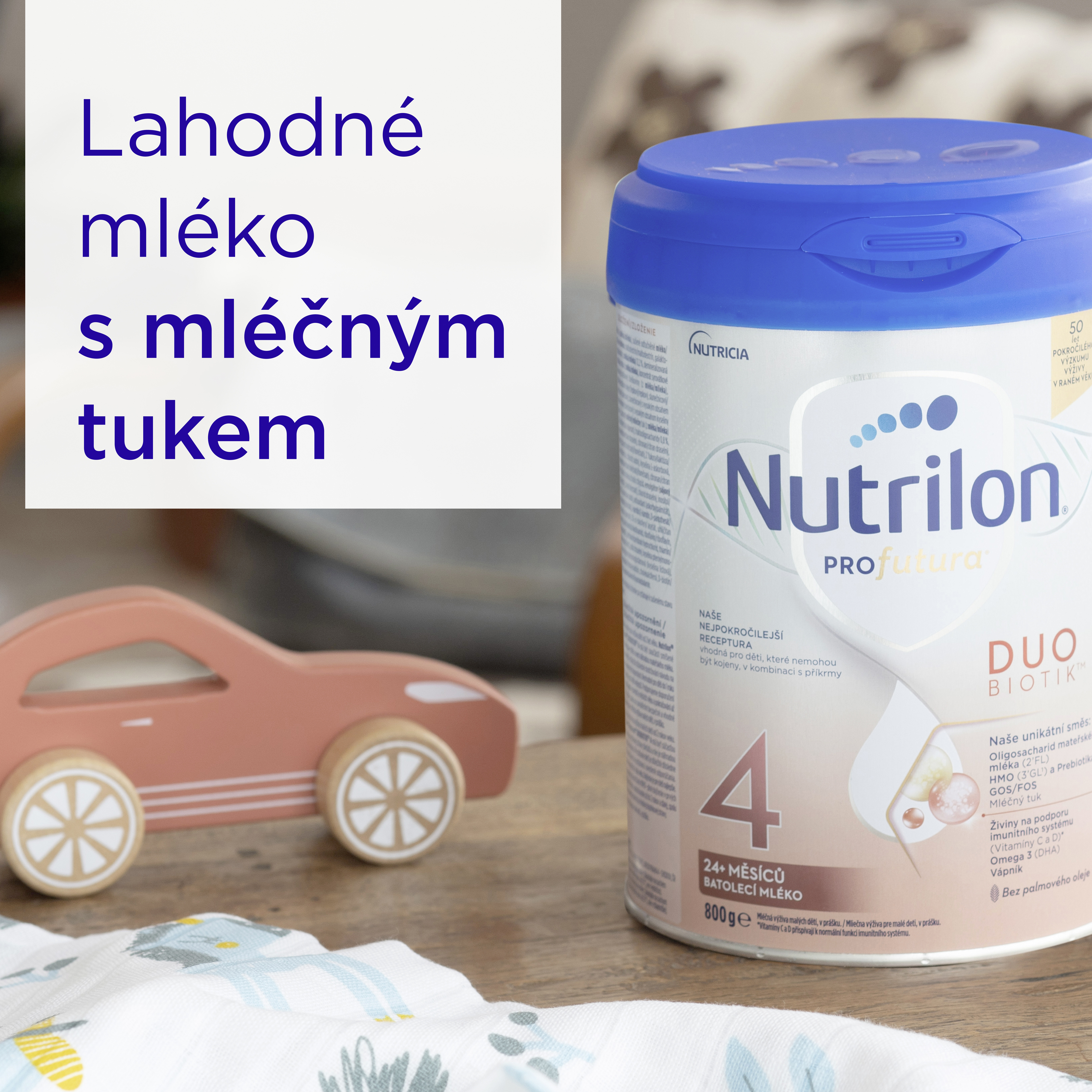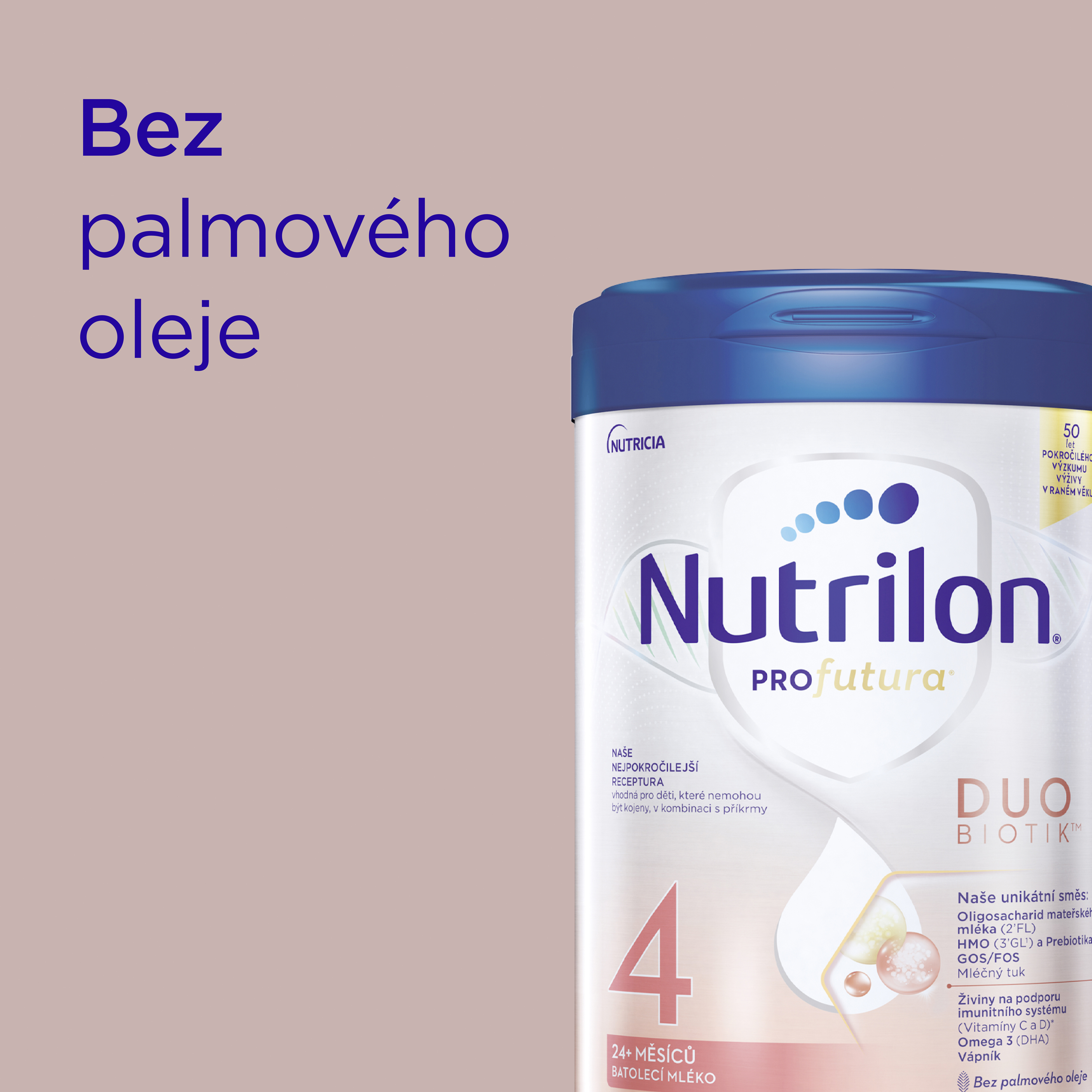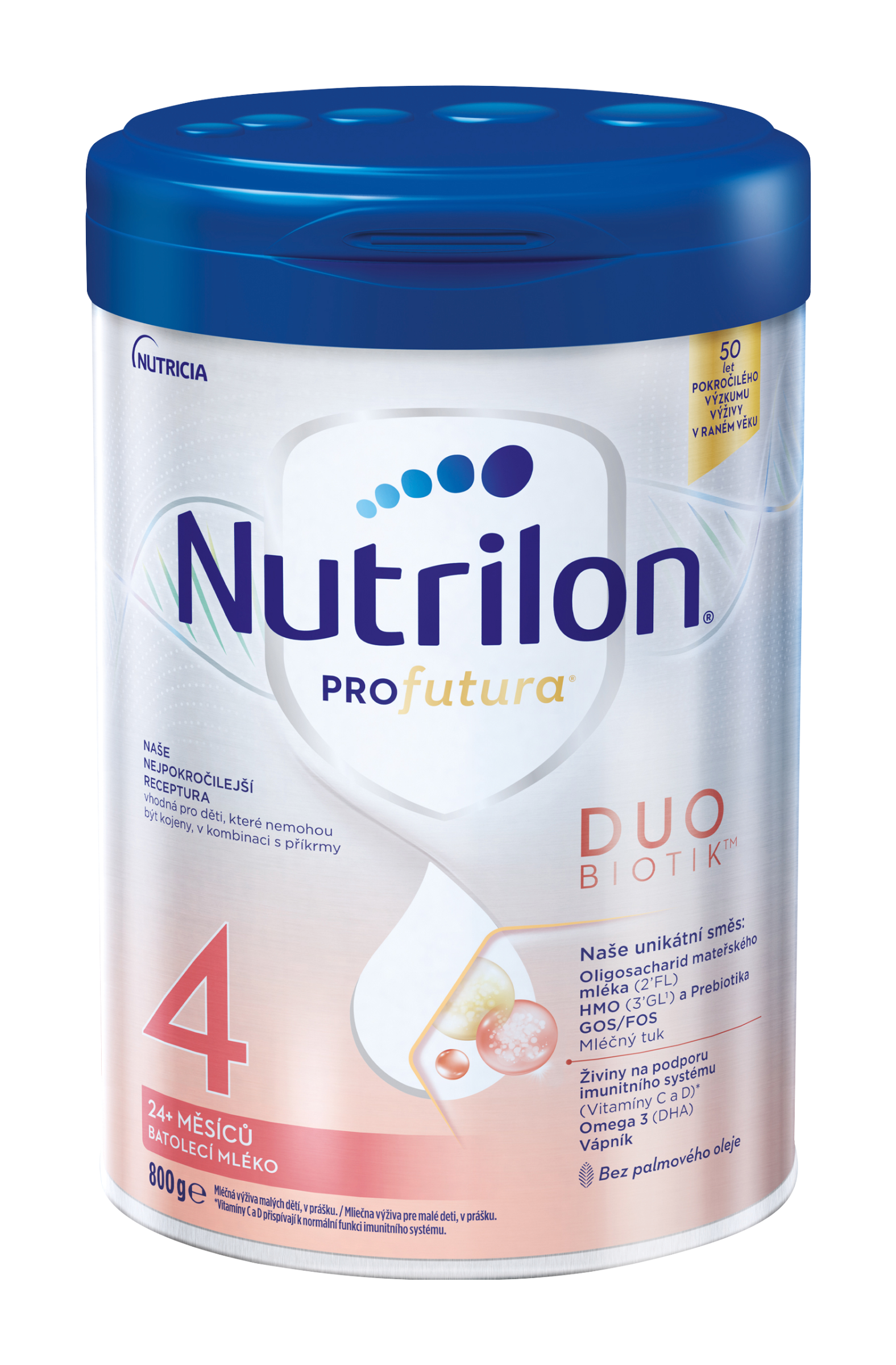Výrobek je určen pro výživu dětí od 2 let věku. Nutrilon® Profutura® DUOBIOTIKT™ 4 má být součástí smíšené a vyvážené stravy dítěte a není náhradou mateřského mléka. Pro zdraví dětí je důležité důsledné dodržování návodu na přípravu i uvedených doporučení. Nevhodné pro děti do 1 roku věku. Kojení je pro děti nejlepší. Podporujeme doporučení WHO - plné kojení v prvních 6 měsících věku a pokračování až do 2 let a dále, spolu se zaváděním bezpečné a vhodné doplňkové stravy. Mléčná výživa malých dětí, v prášku. DŮLEŽITÉ RADY A UCHOVÁVÁNÍ - Připravenou stravu spotřebujte do dvou hodin, poté zlikvidujte. - Neohřívejte stravu v mikrovlnné troubě, abyste předešli opaření dítěte v důsledku nerovnoměrného ohřátí. - Vyvarujte se dlouhému kontaktu mléčné výživy se zoubky - zvyšuje riziko výskytu zubního kazu. Pečujte pravidelně o zoubky dítěte, zejména před spaním. Požádejte o radu zubního lékaře.