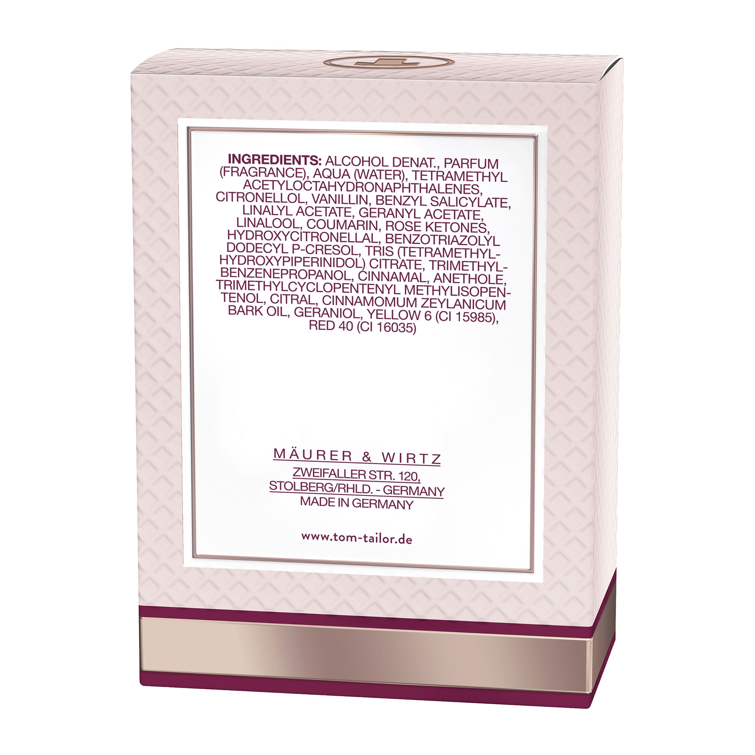 Pokud toaletní vodu skladujete na chladném, suchém a tmavém místě, vůně vydrží nejméně dva roky. Snášenlivost s pokožkou je dermatologicky testována.