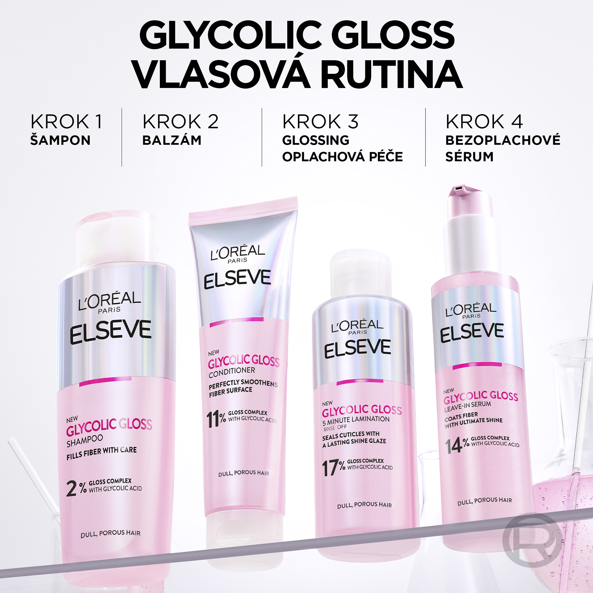 Naše první domácí Glossing bezoplachové sérum na vlasy, jehož složení je obohacené o kyselinu glykolovou, která pomáhá obnovovat vlasové vlákno zevnitř, kde intenzivně napomáhá zlepšit kvalitu vlasů a uzavírat vlasové kutikuly pro zářivý lesk.