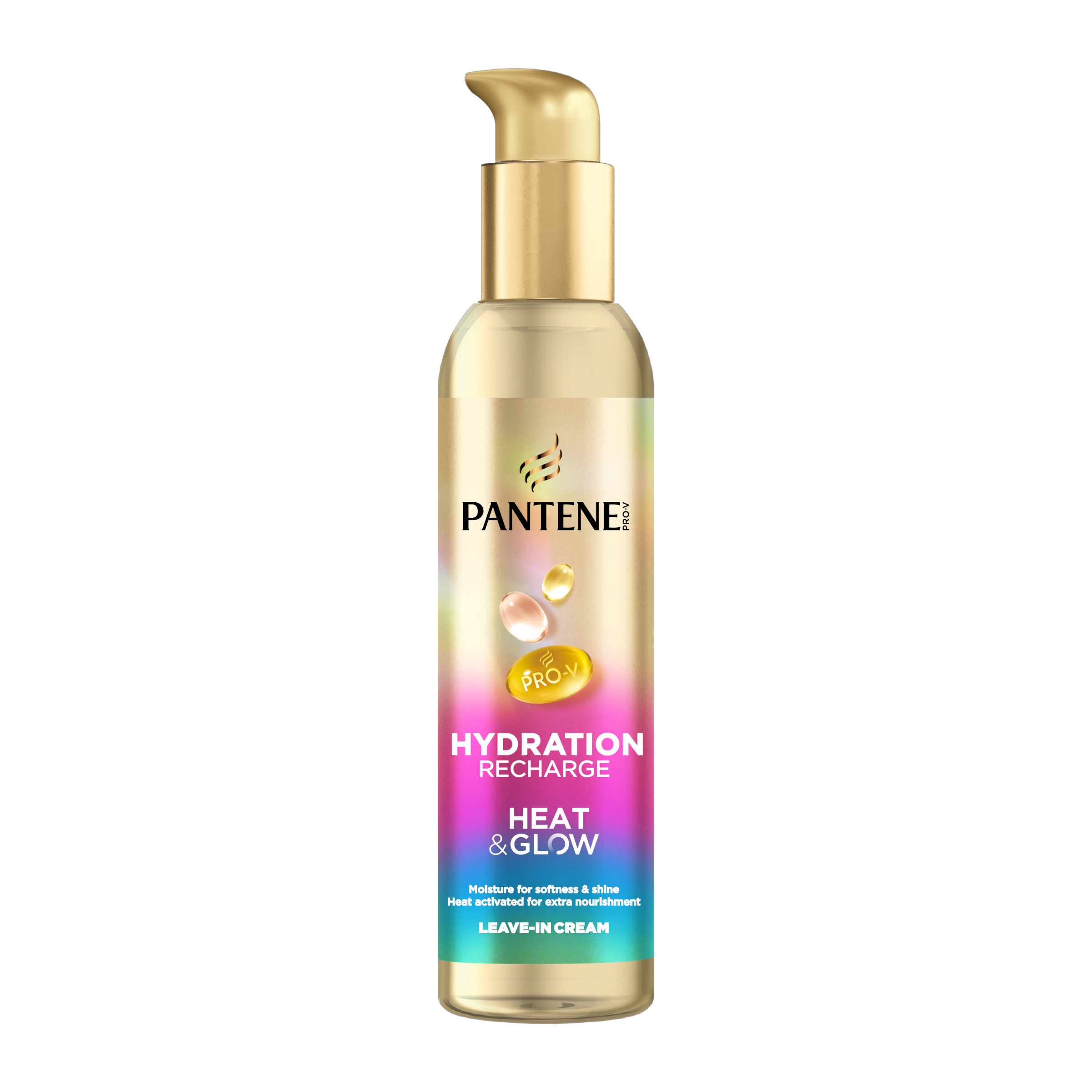 Objetve bezoplachový krém Pantene Pro-V Hydration Recharge Heat & Glow, nejlepší řešení pro suché a poškozené vlasy. Tento krém, který se používá při fénování, obsahuje náš teplem aktivovaný PRO-V, jenž při aktivaci teplem uvolní extra dávku hydratačních živin. Pomáhá chránit před vlhkostí, krepatěním a teplem až do 230 °C a zanechává vaše vlasy neustále hebké a lesklé, aniž by je zatížil. Lze jej použít i jako krém k vytvoření kadeří na suché vlasy mezi jednotlivými mytími. Pro dosažení optimálních výsledků ho používejte s ostatními produkty z řady Hydration Recharge.