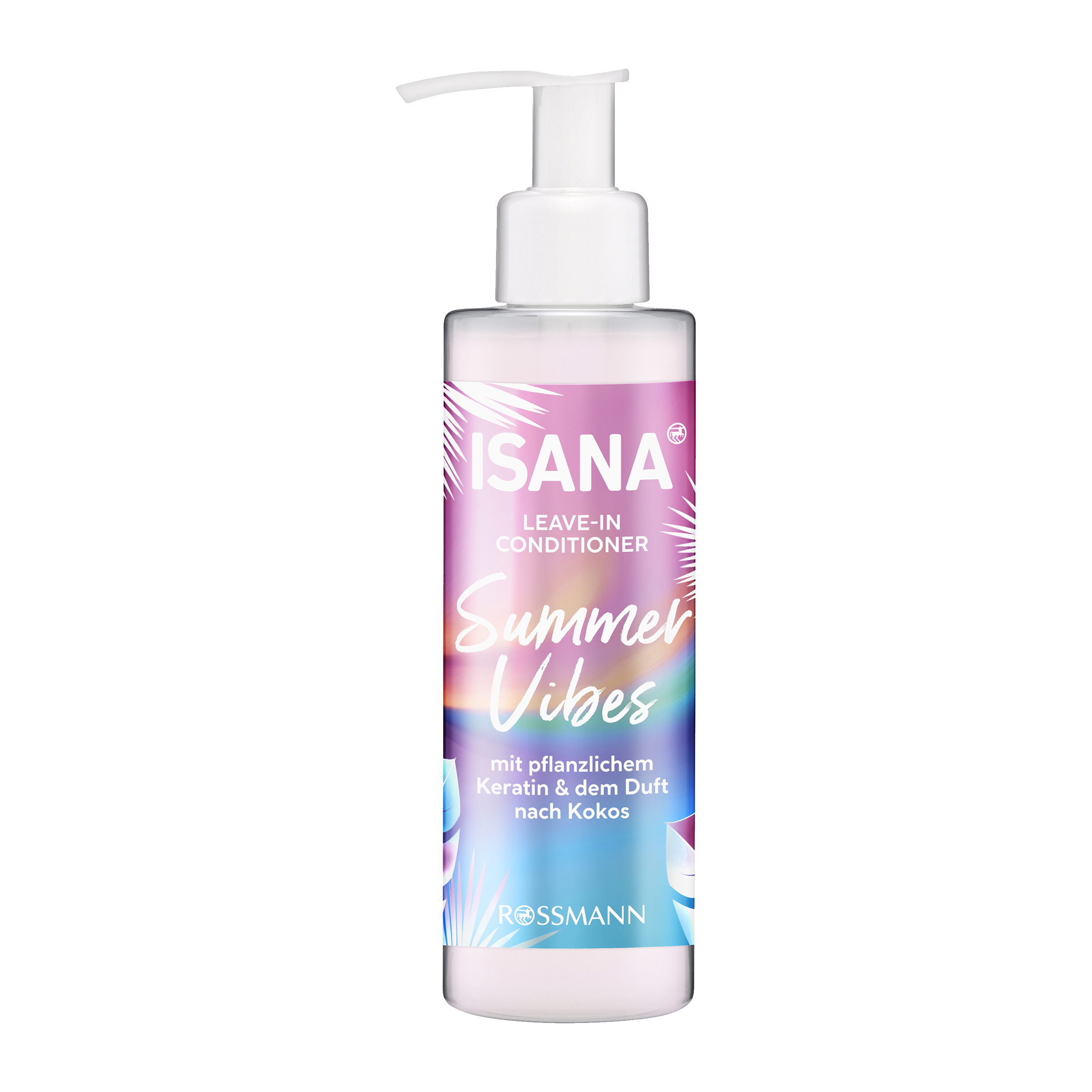 Bezoplachový kondicionér ISANA Summer Vibes s kokosovou vodou a rostlinným keratinem hydratuje poškozené vlasy a dodává jim nový lesk. Nabízí také tepelnou ochranu až do 230 stupňů a účinek proti krepatění, čímž zajišťuje pružnost a zdravý, jemný pocit pokožky, aniž by ji zatěžoval.