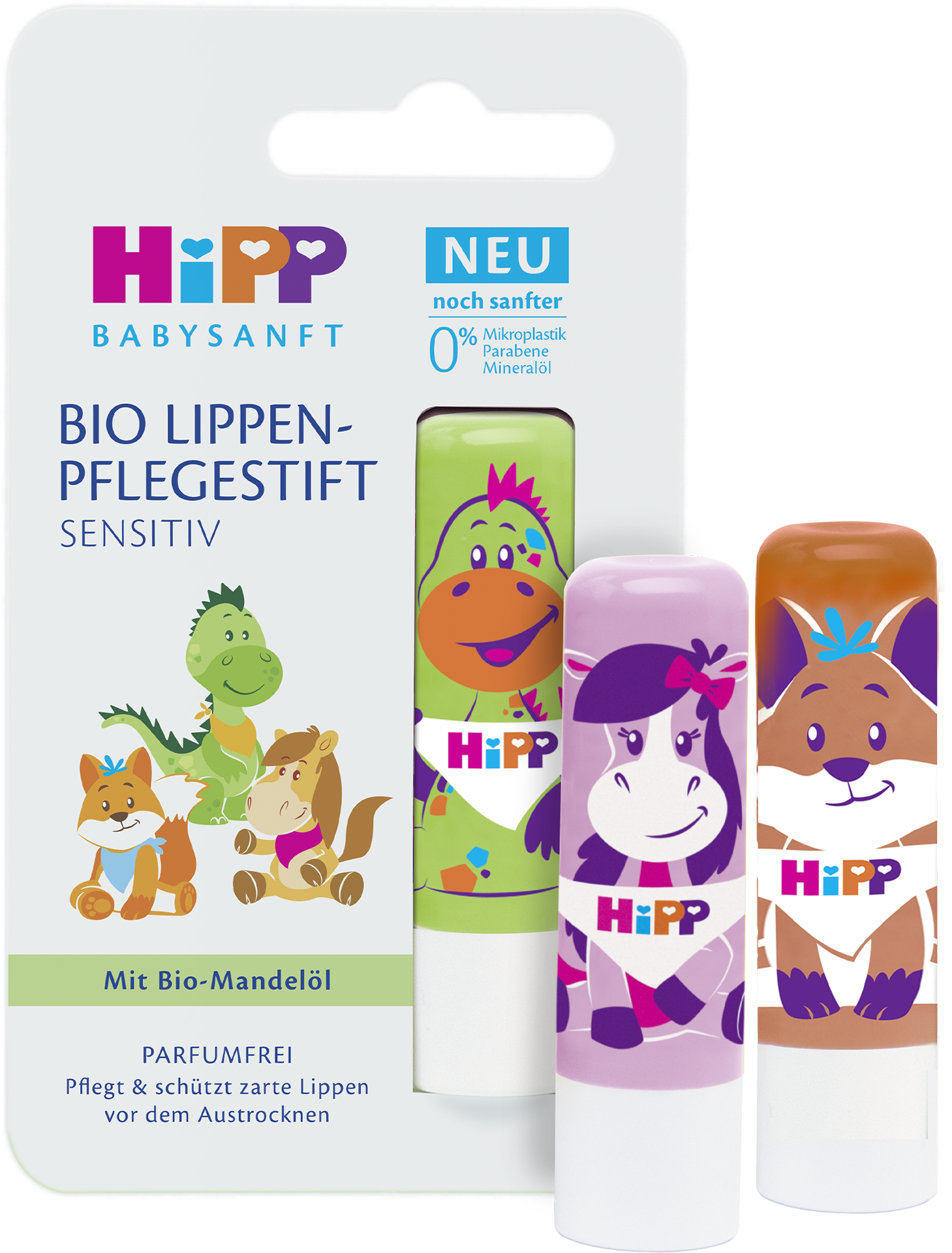 HiPP BIO Balzám na rty s vysoce kvalitními BIO oleji byl vyvinut speciálně pro potřeby malých rtů. Obsahuje včelí vosk. Ochrana rtů dítěte před vysycháním. Ve třech roztomilých zvířecích variantách pro zábavu malých i starších dětí!