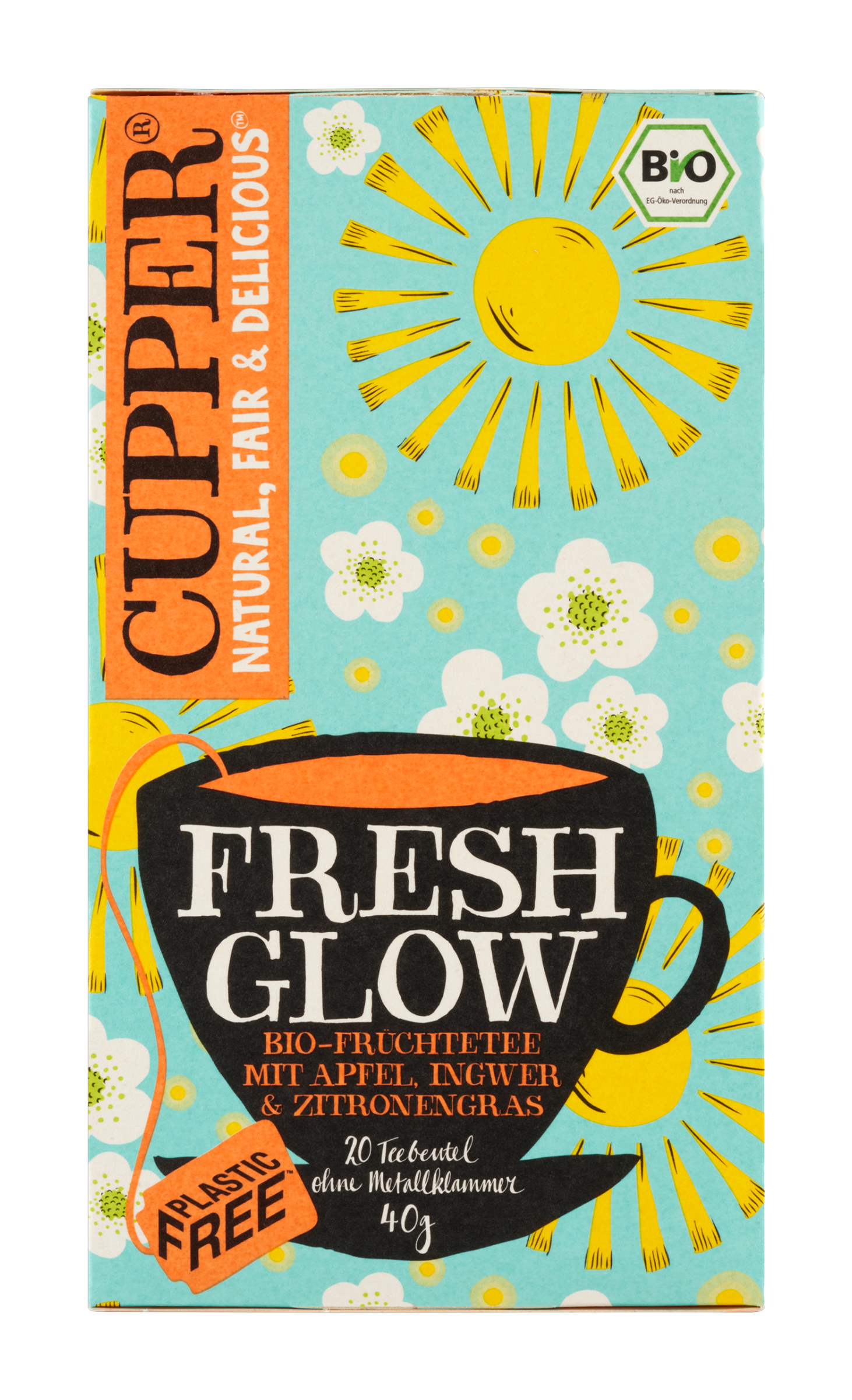 Cupper je světová značka kvalitních BIO FAIR TRADE bylinných a ovocných čajů, jejichž směsi byly vytvořeny přímo v Anglii ve městě Dorset. Cupper čajové sáčky jsou nebělené, bez sponky, bez plastu a plně rozložitelné. 100% recyklovatelný a rozložitelný jsou i jejich obaly, díky čemuž jsou tak Cupper čaje šetrné k životnímu prostředí.