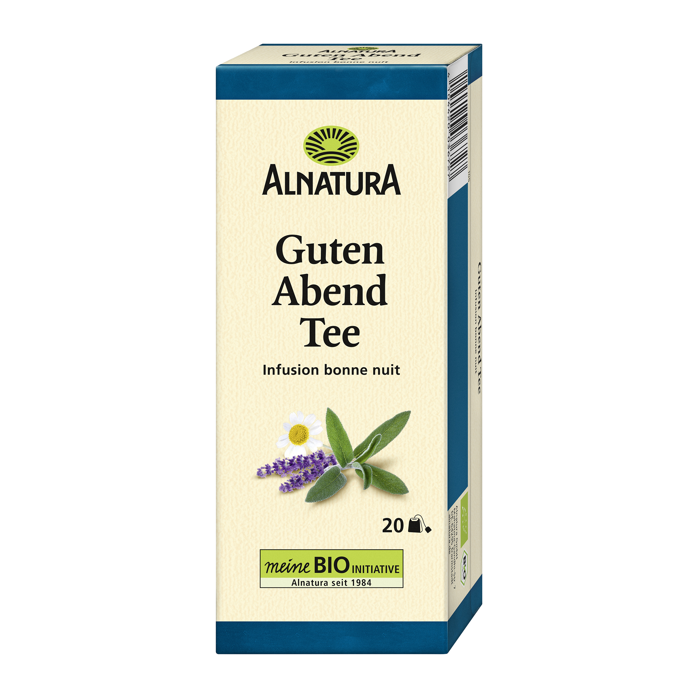Vyvážená organická bylinná čajová směs z meduňky, heřmánku, šalvěje, levandule a chmele - ideální způsob, jak zakončit den. Balení obsahuje 20 nálevových sáčků.