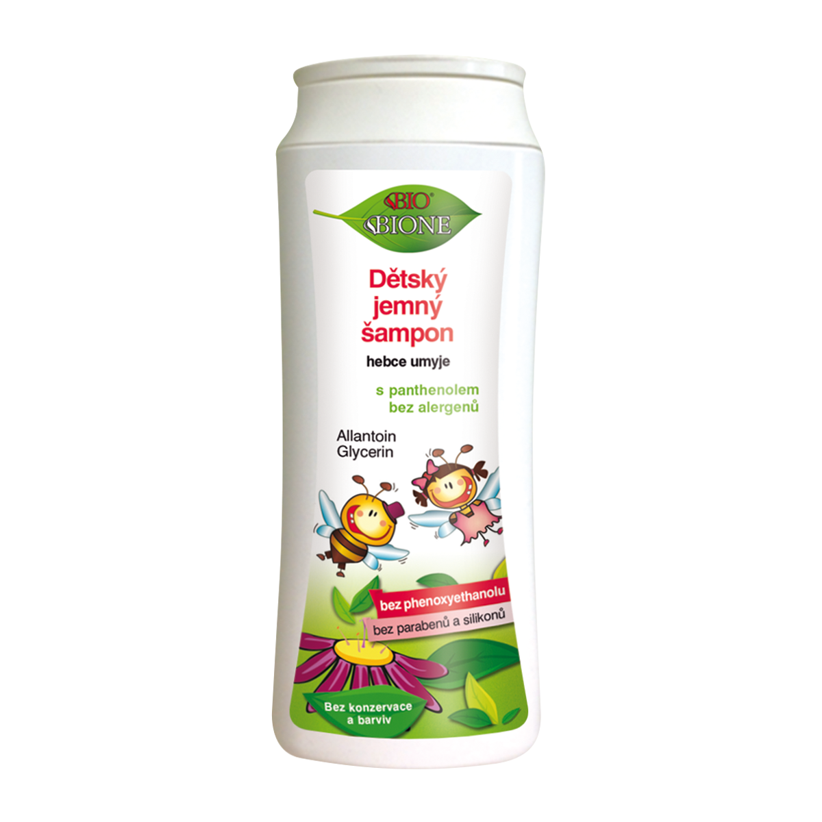 Po umytí celé tělo pečlivě a důkladně opláchněte teplou vodou a osušte. Následně můžete použít jemné dětské tělové mléko nebo vazelínu od Bione. Dětská pokožka má značnou samočisticí schopnost. U nejmenších dětí postačí koupání s použitím šamponu 1× týdně, ale i méně často. Méně časté mytí je šetrnější pro dětskou pokožku. Chraňte před vniknutím do očí. Pokud by došlo k nechtěnému vniknutí do očí a ke štípání v oku, oko vypláchněte čistou vlažnou vodou a osušte. Neobsahuje barviva, konzervační látky, s výhradně bez alergenní parfemací. V BIO formulaci, bez SLS, SLES, bez parabenů, bez silikonů. Není určeno pro děti do tří let.
