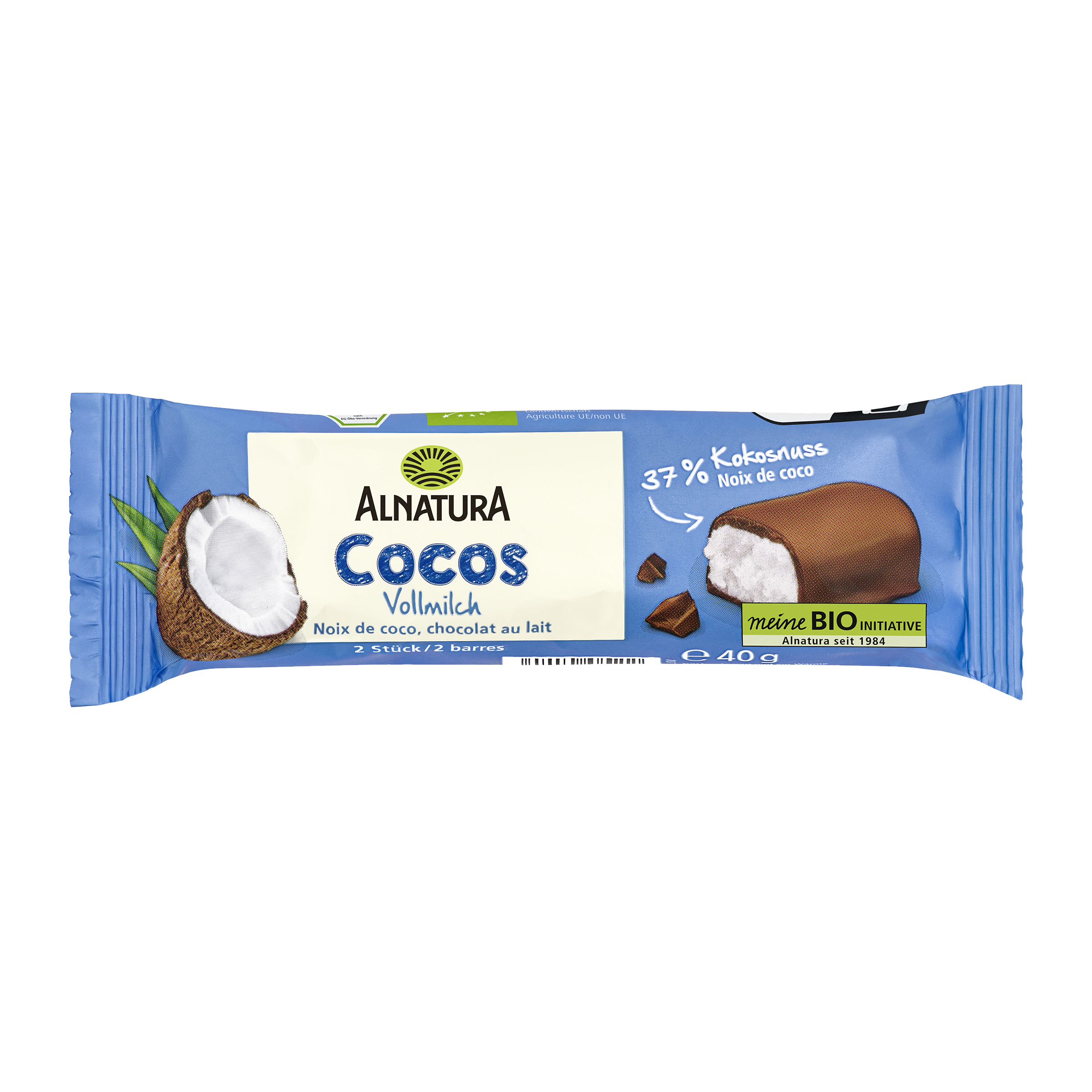 Pro milovníky kombinace kokosu a čokolády: V této čokoládové tyčince jsou šťavnaté kokosové hobliny obalené v jemně se rozpouštějící mléčné čokoládě. S 37 % kokosu je to přímo exotická pochoutka.