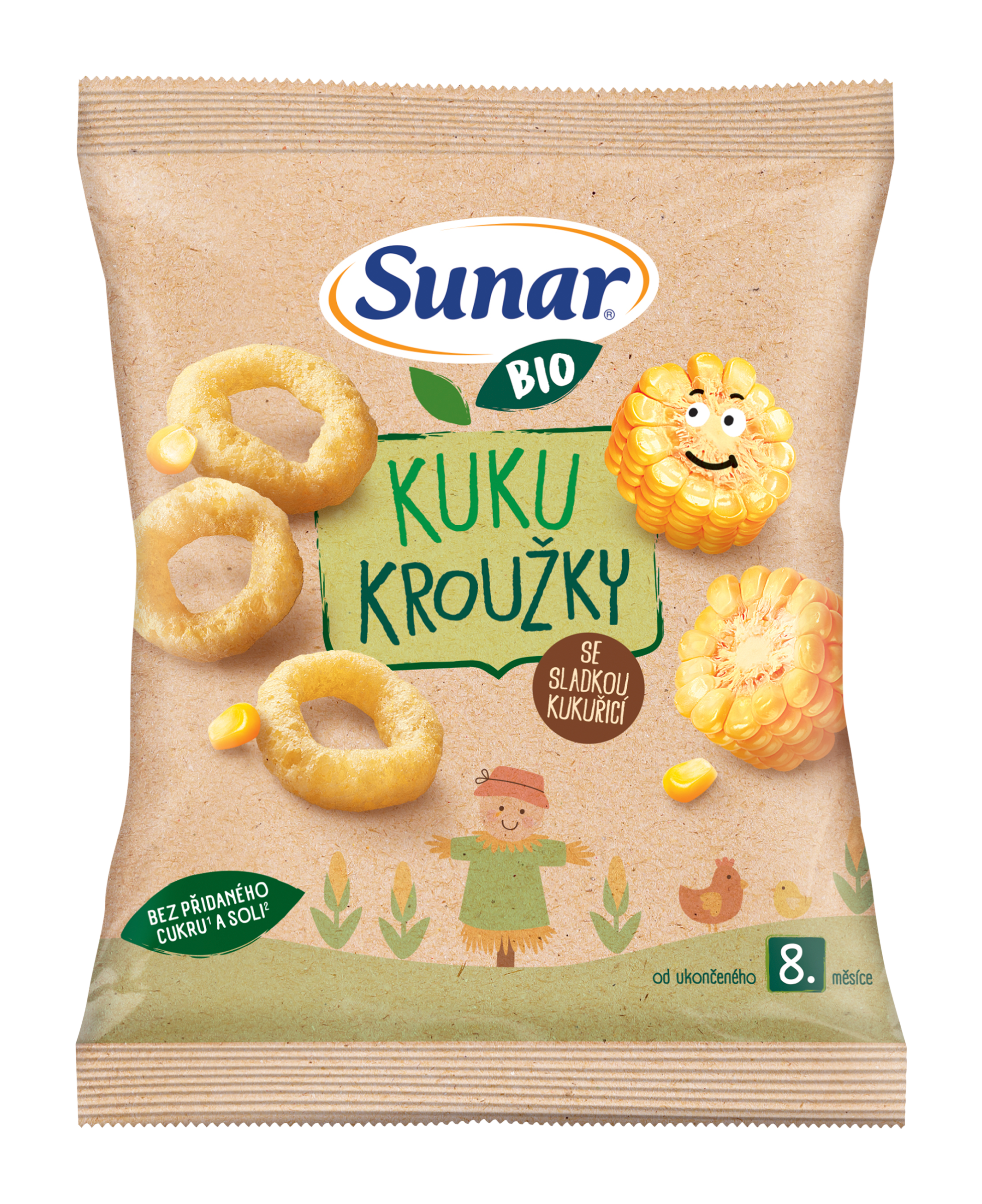 Sunar BIO Kuku kroužky, to je chutná svačinka pro děti od ukončeného 8. měsíce. Lahodné dětské křupky vyrobené z BIO kukuřičné mouky ochucené práškem ze sladké kukuřice. Bez přidaného cukru a soli*. Skvěle se hodí jako svačinka mezi jídly, jak doma, tak na cestách.