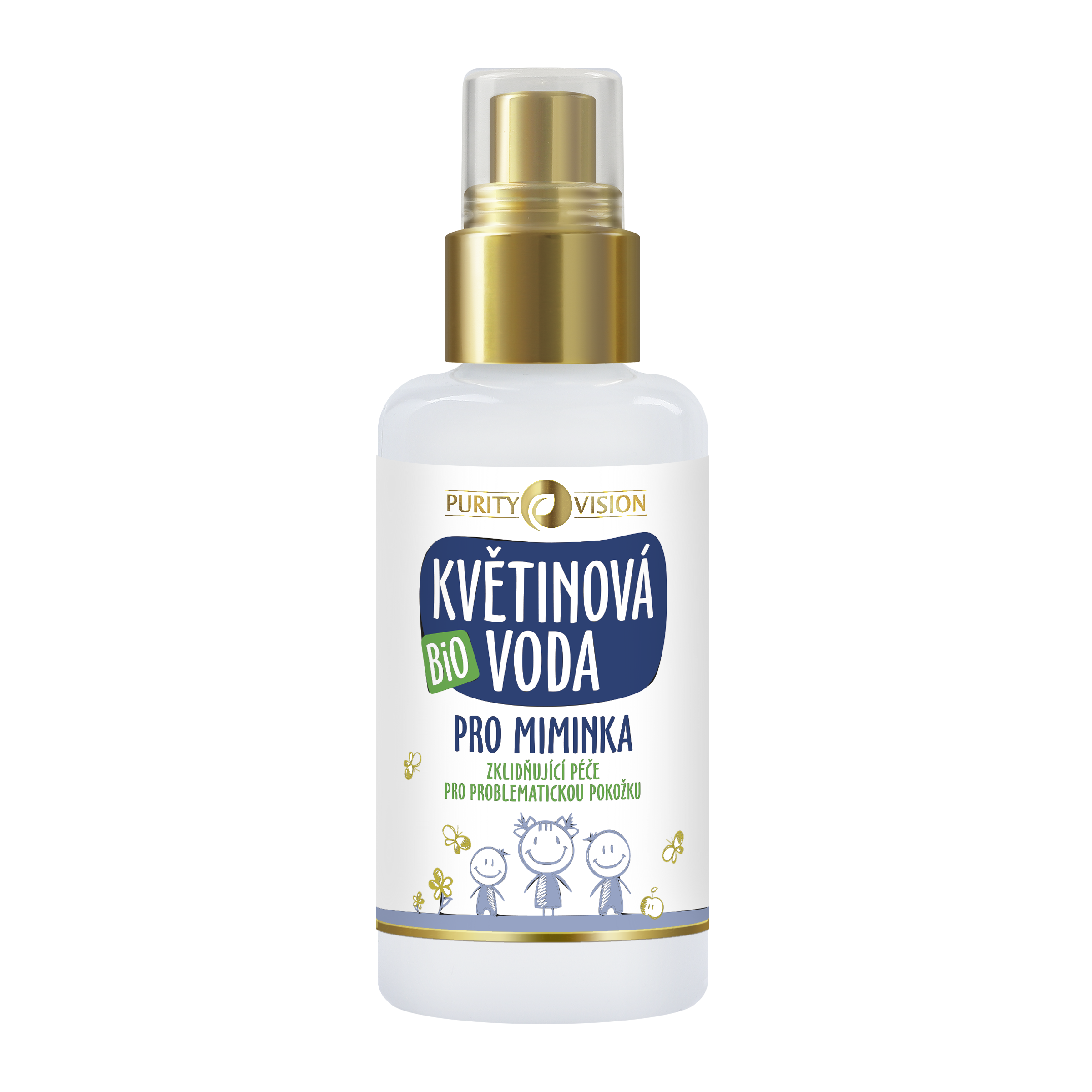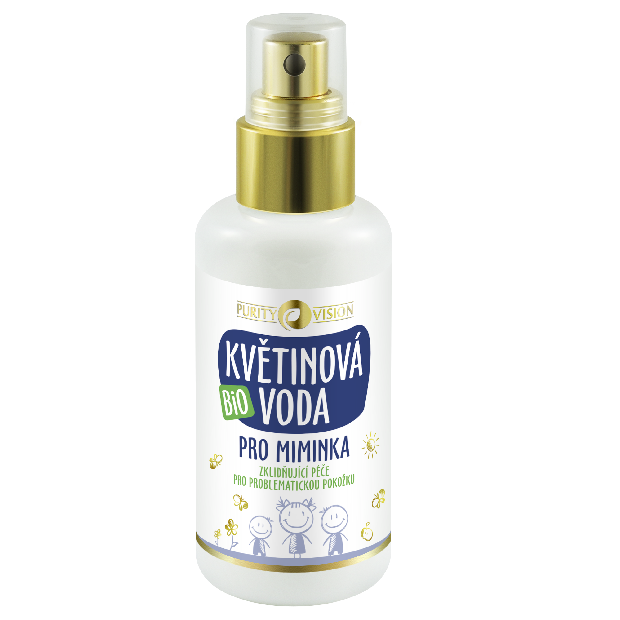 Jedinečná kombinace tří pečujících květinových vod v Bio kvalitě byla vytvořena pro potřeby té nejcitlivější dětské pokožky. Bio Květinová voda pro miminka se skvěle doplňuje s Bio Dětským tělovým máslem Purity Vision a tvoří tak dokonalou péči při přebalování a během dne. Květinovou vodu lze přidat i samostatně do koupele, nebo využít její uklidňující účinky a nastříkat malé množství do postýlky miminka.